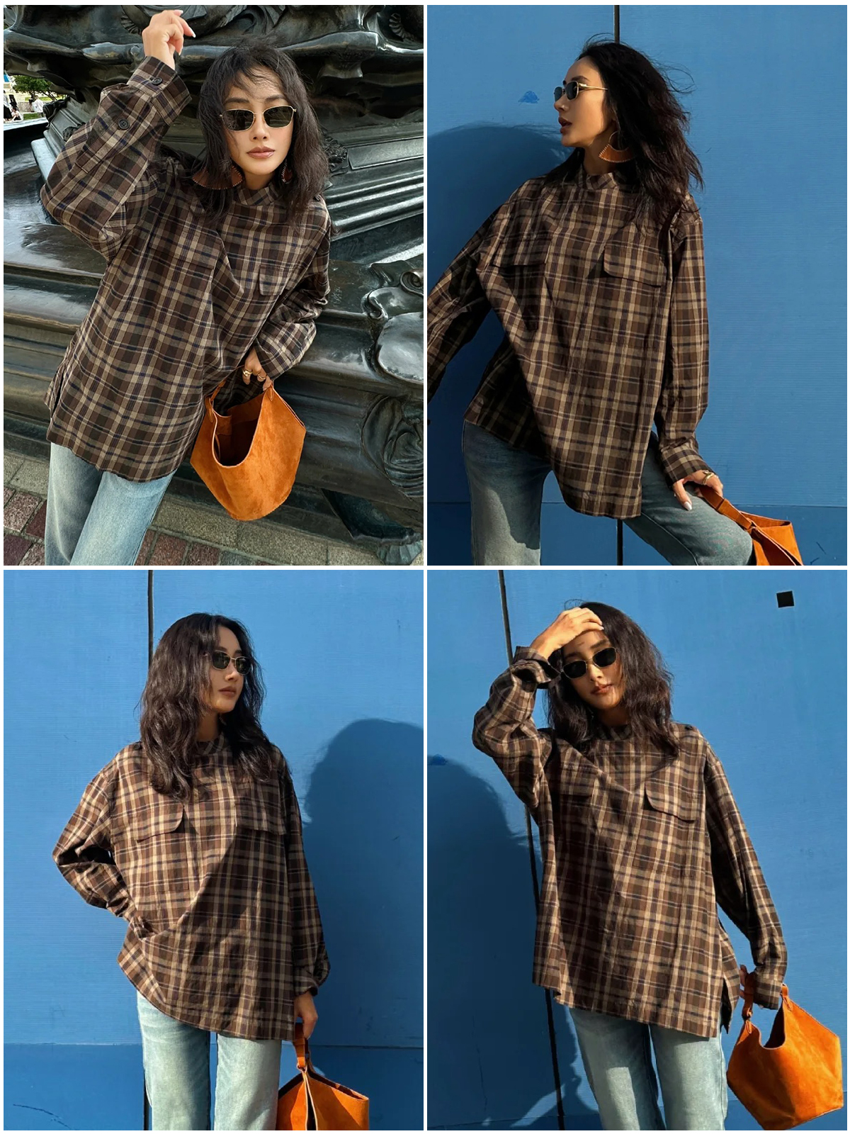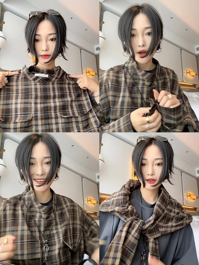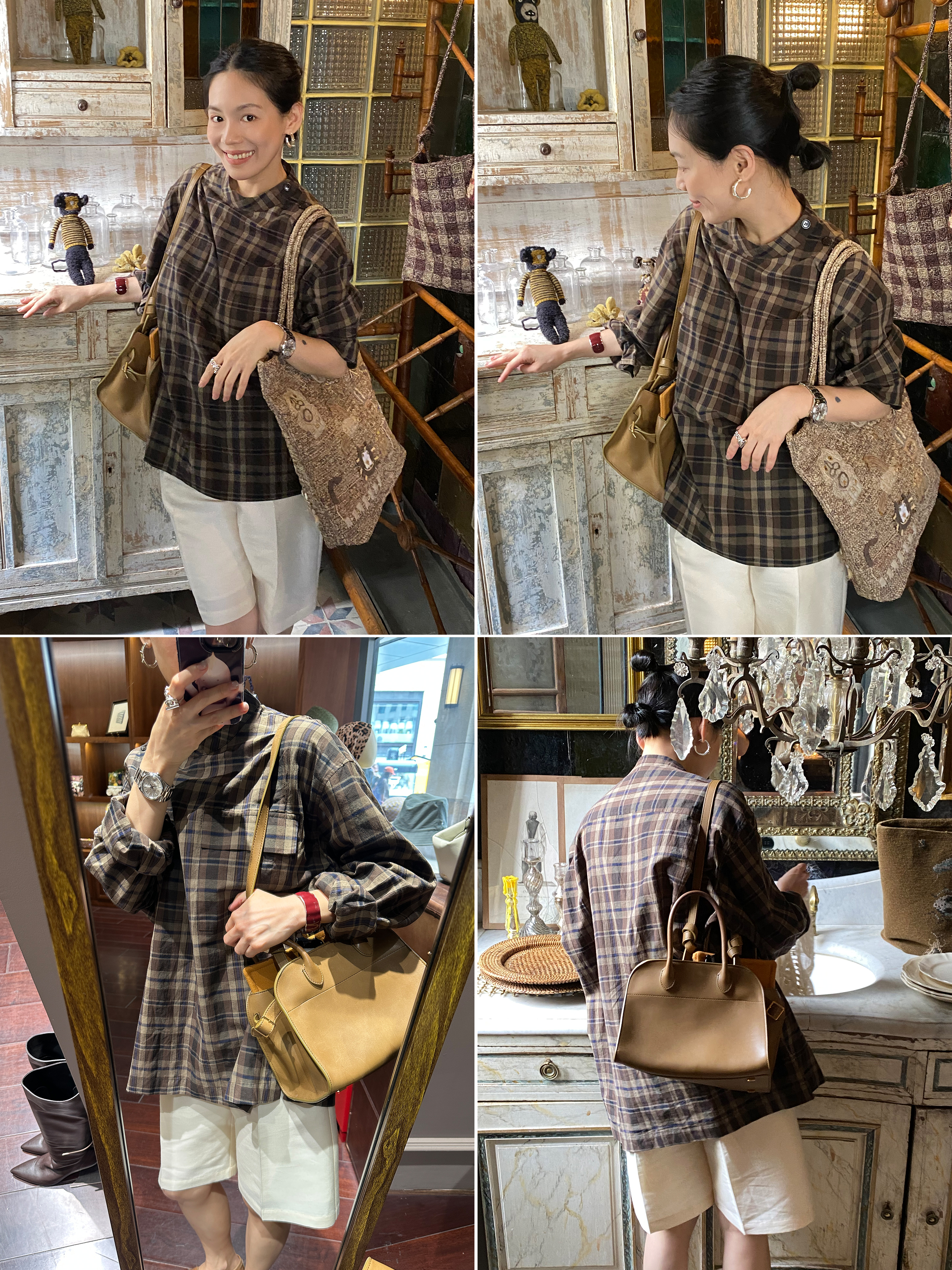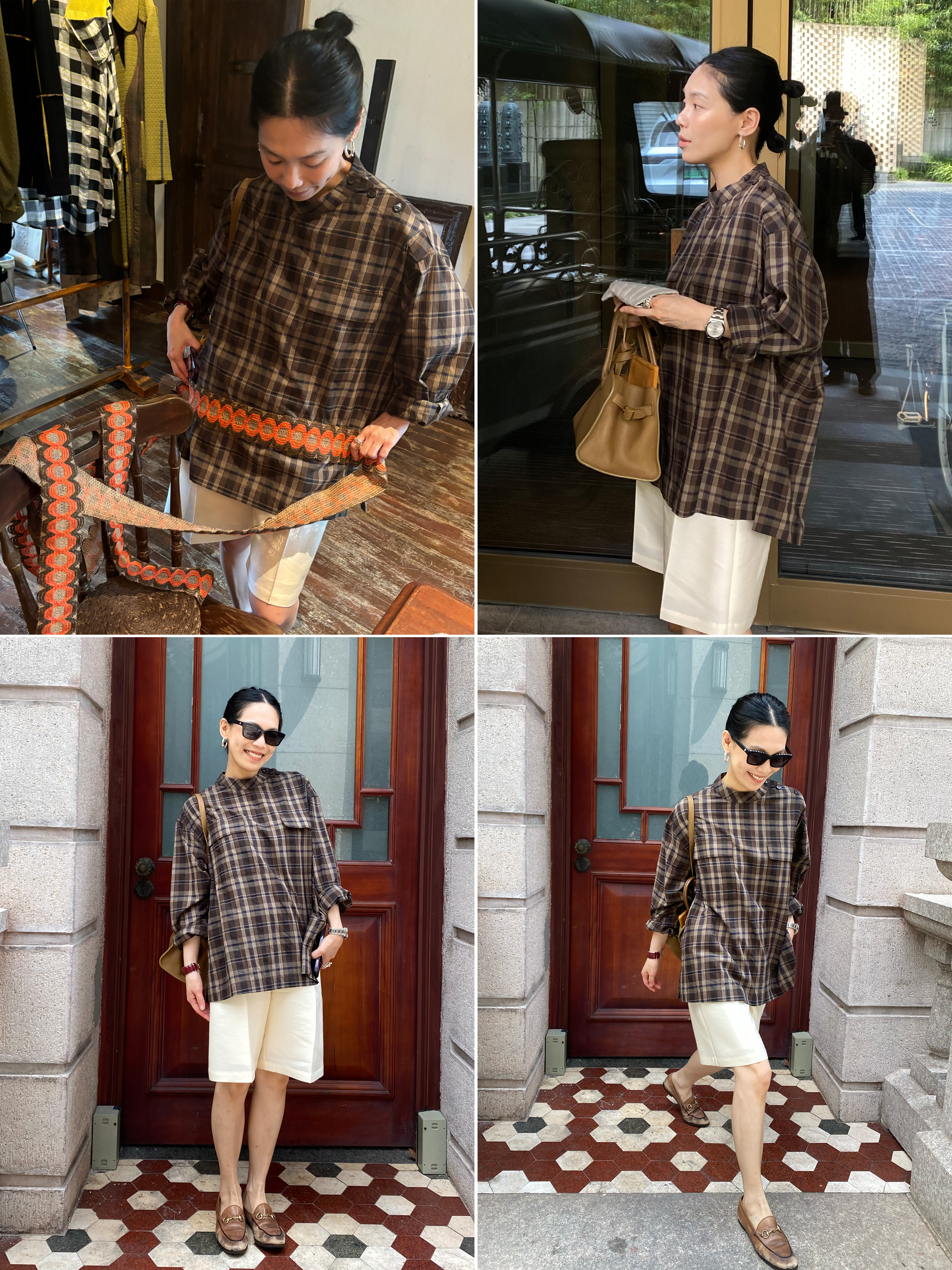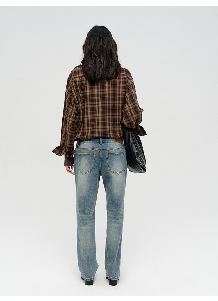 HIDEMI 限定色织格纹极简设计感口袋圆领宽松小男孩衬衫