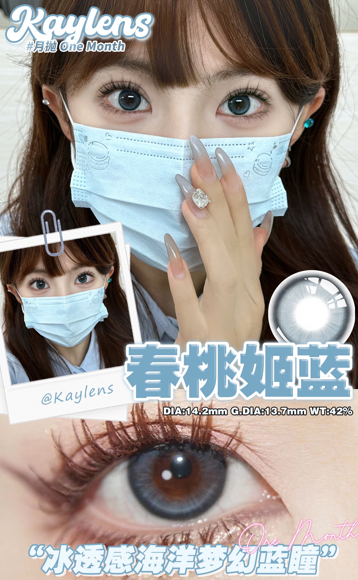 春桃姬蓝 直径14.2mm 着色13.7mm 基弧8.6mm 含水量42%