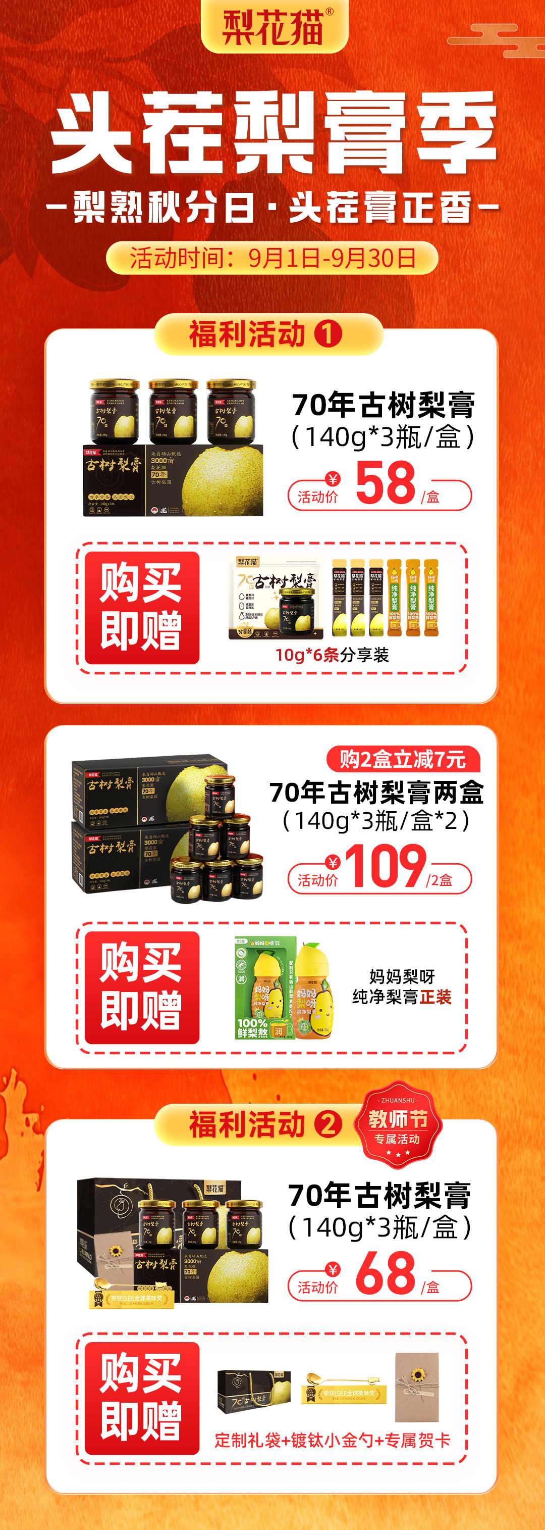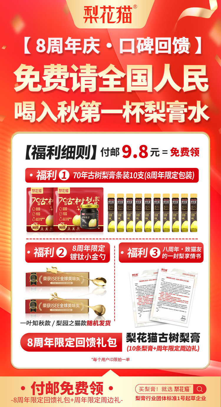 【梨花猫头茬梨膏季 70年古树加赠狂欢,教师节专属献礼!两盒最高减7元】