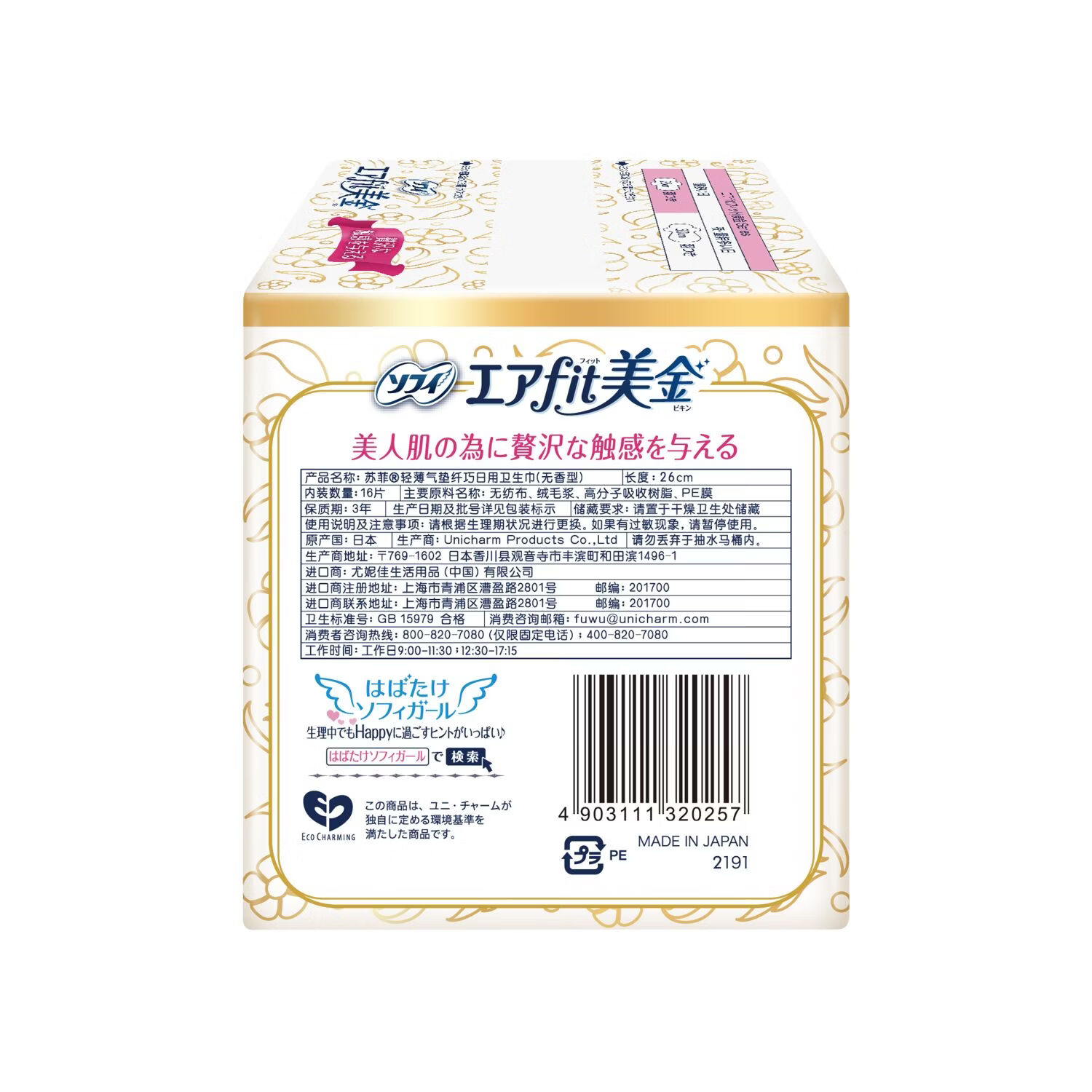 苏菲美金轻薄气垫超薄进口日用卫生巾260mm16片 无香型