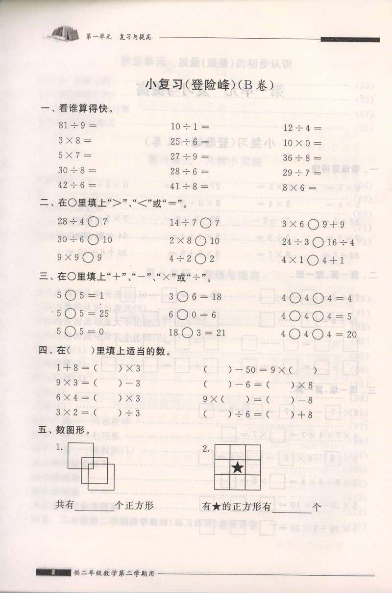 我能考第一 金牌一课一练 双色版 数学 试用本 二年级下/2年级下 数学 第二学期上海小学教辅 中西书局