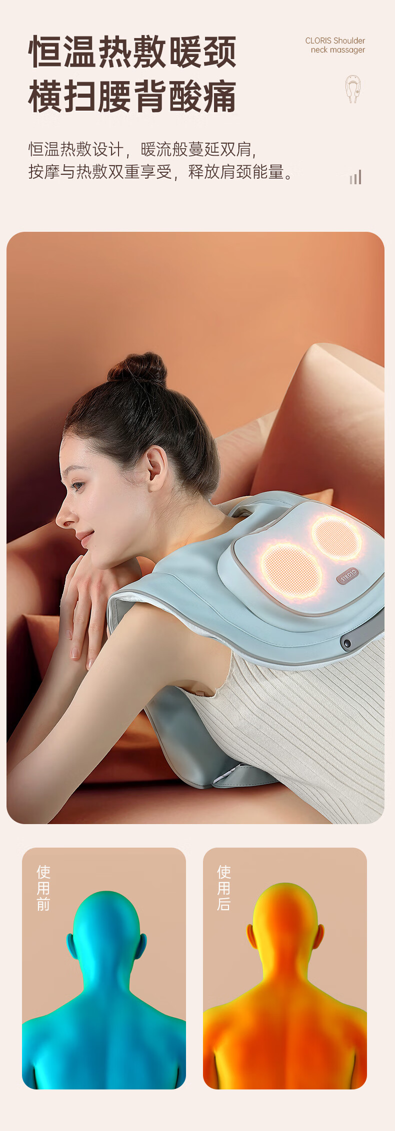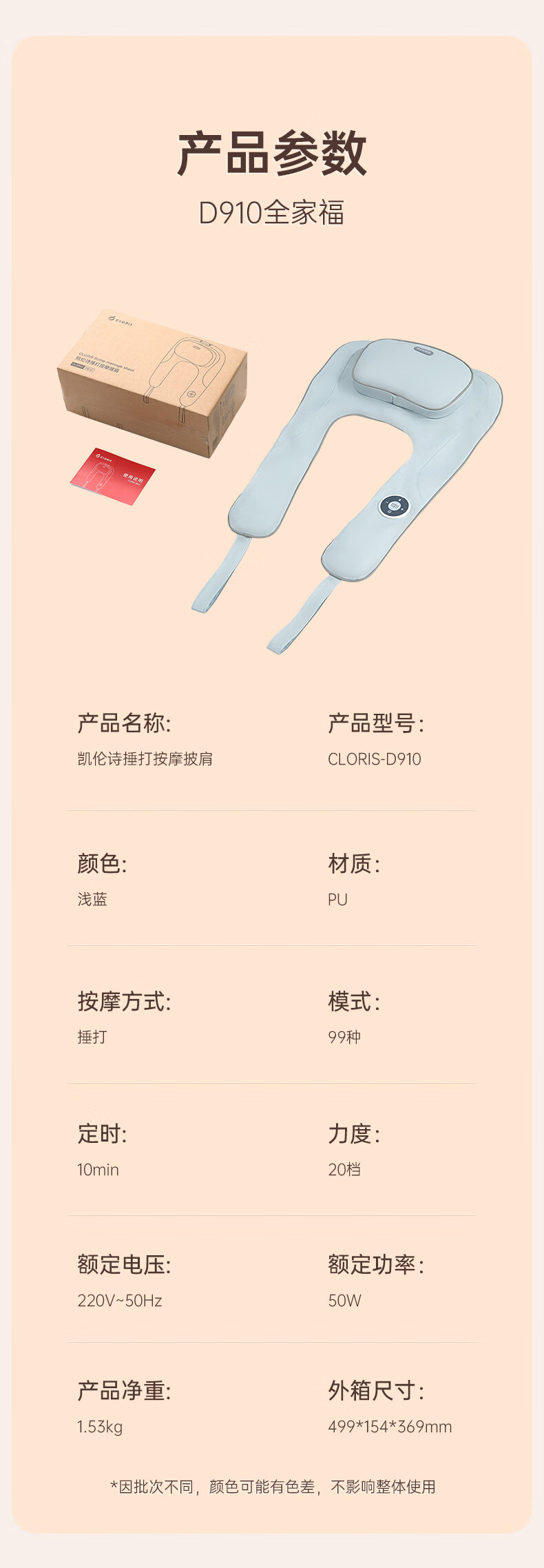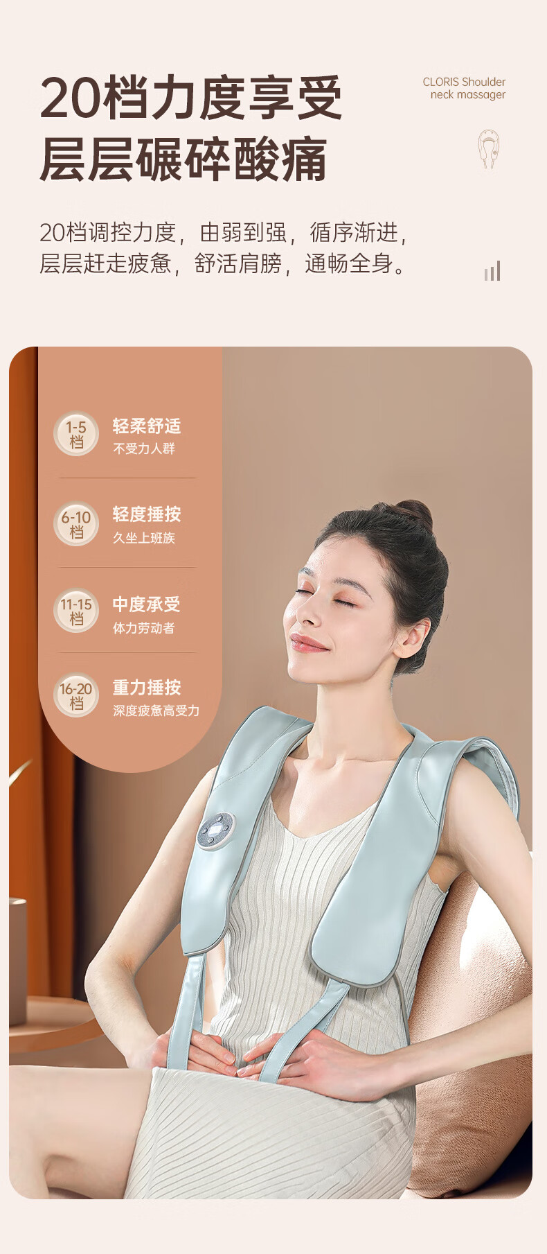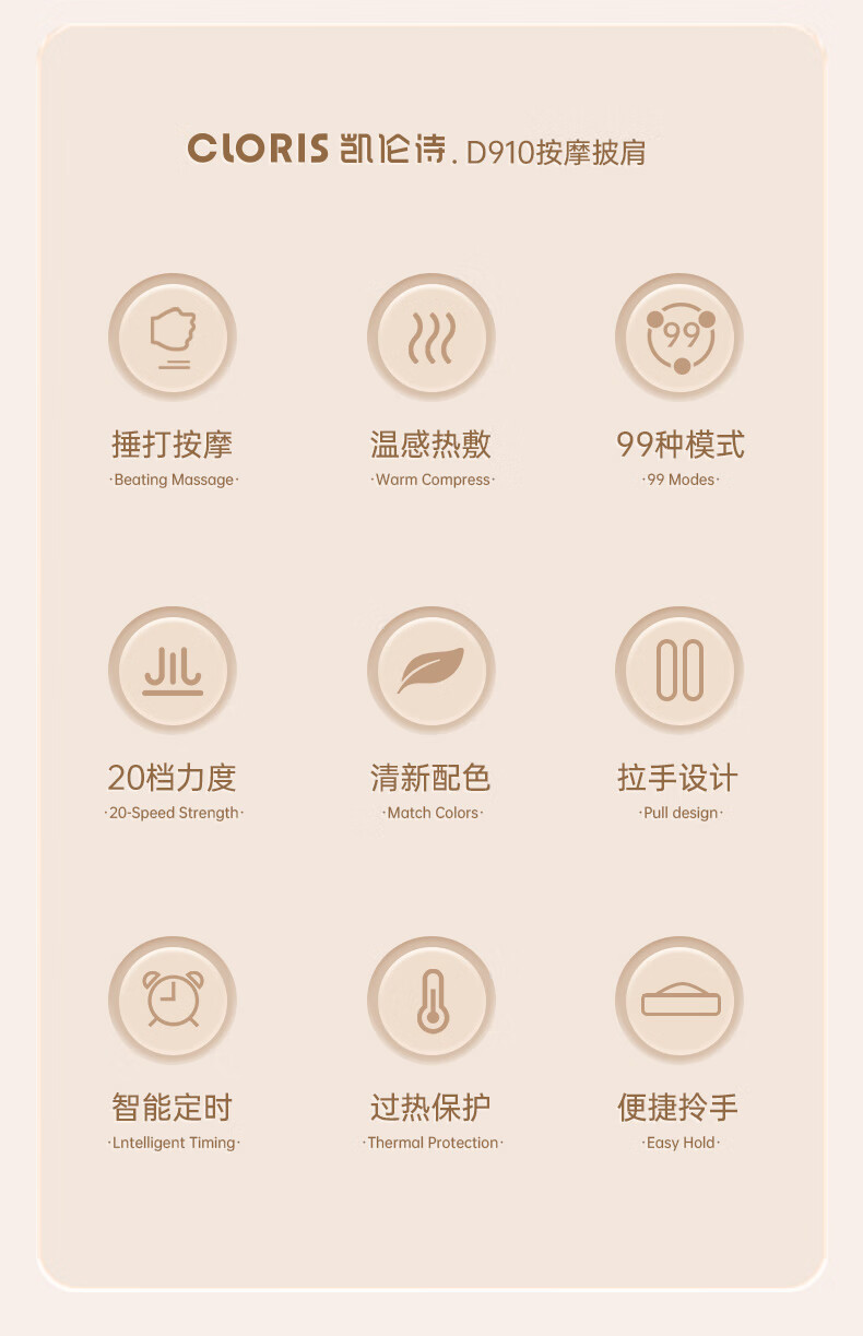 凯伦诗(CLORIS)颈椎按摩器颈部背部按摩披肩 肩颈敲打捶打按摩仪 送父母 生日礼物节日礼物 送老婆新年礼物 D910捶打按摩披肩