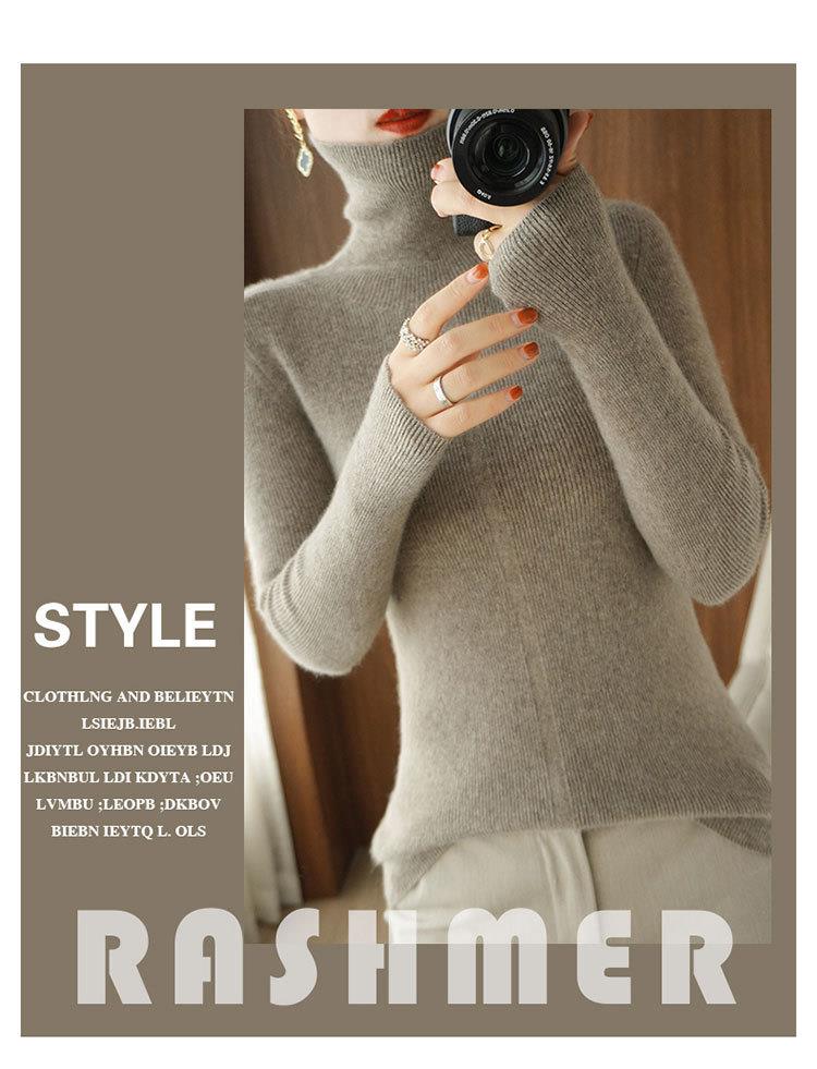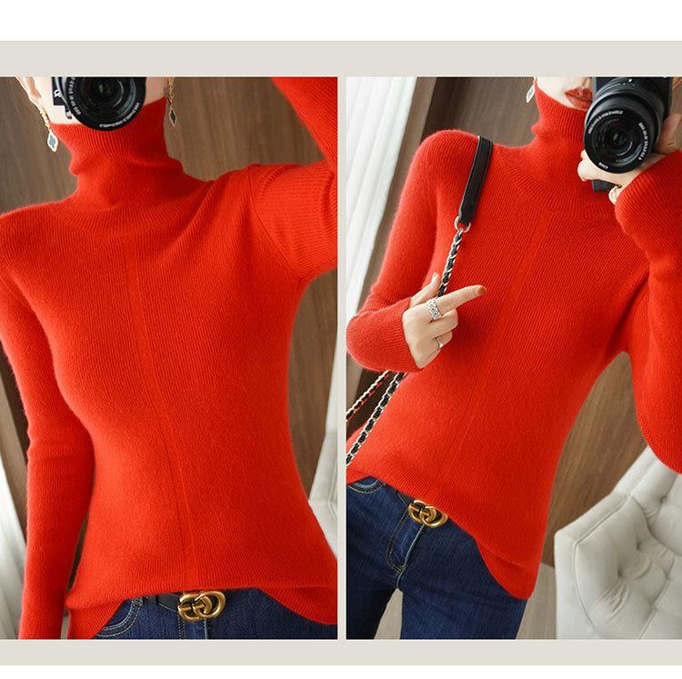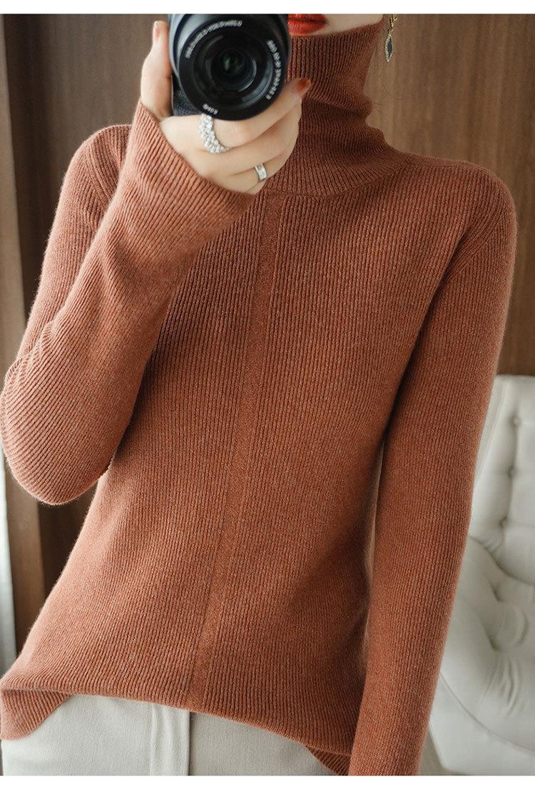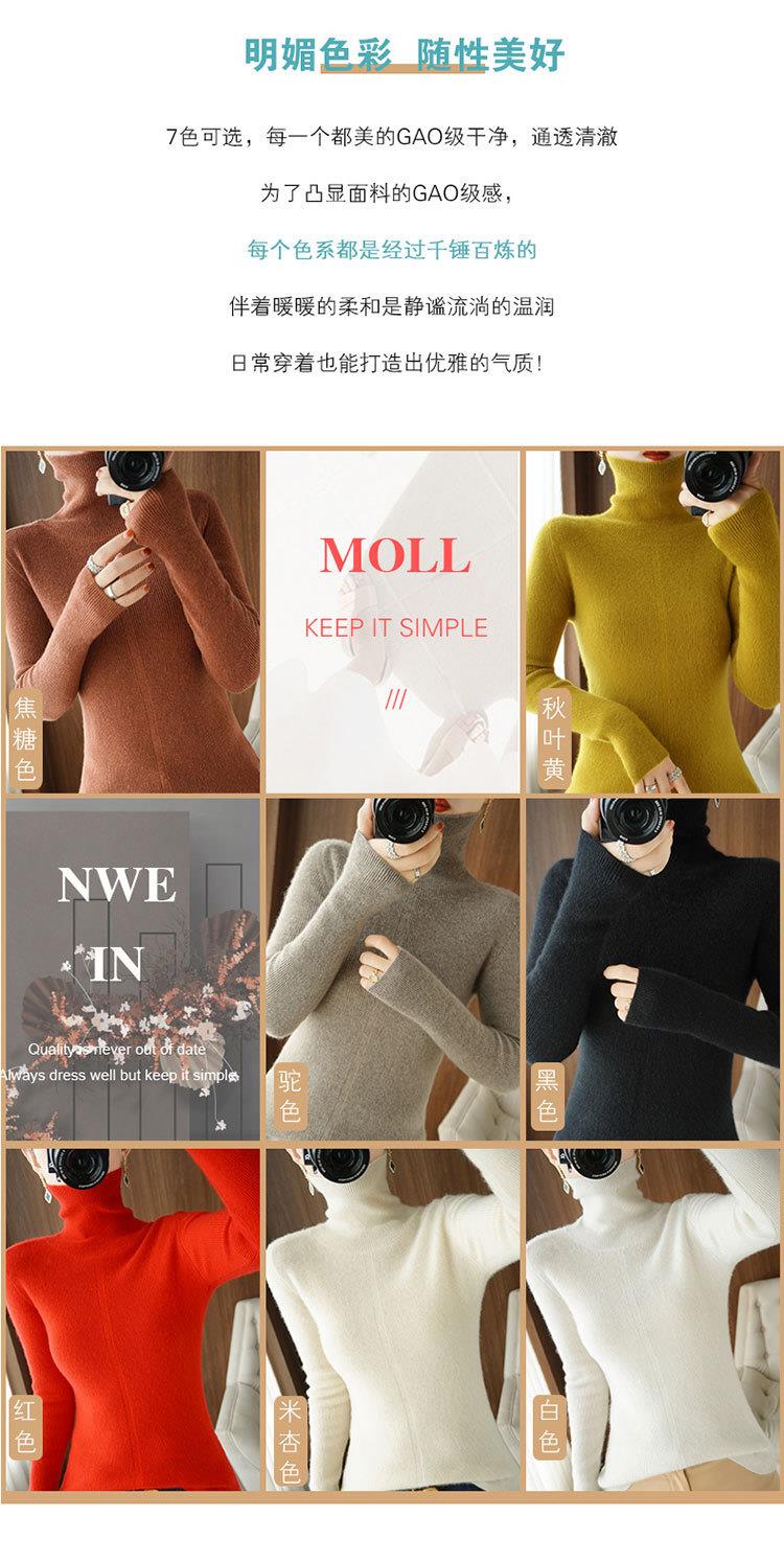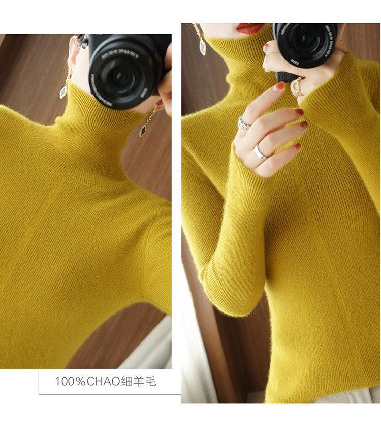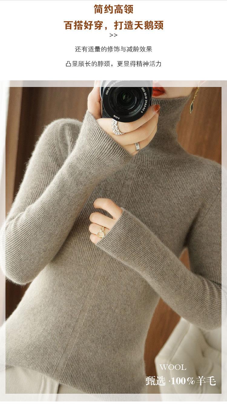 品牌2023秋季韩系风日韩休闲纯羊毛套头高领常规毛衣女式羊毛衫