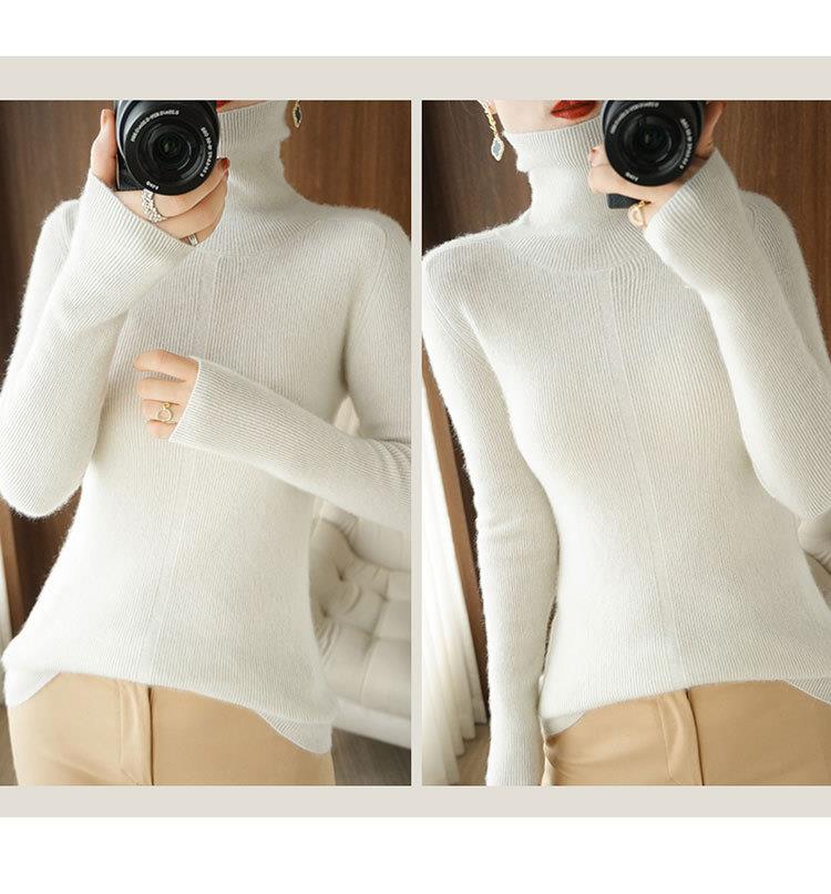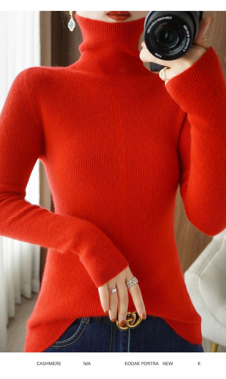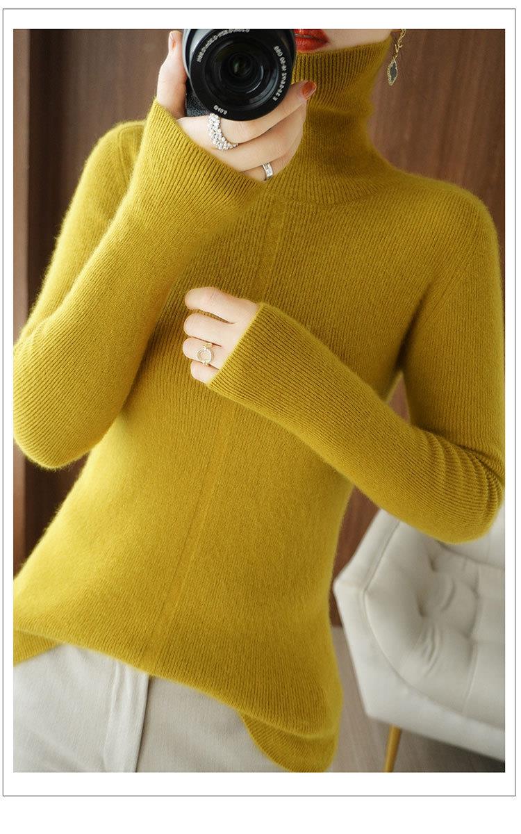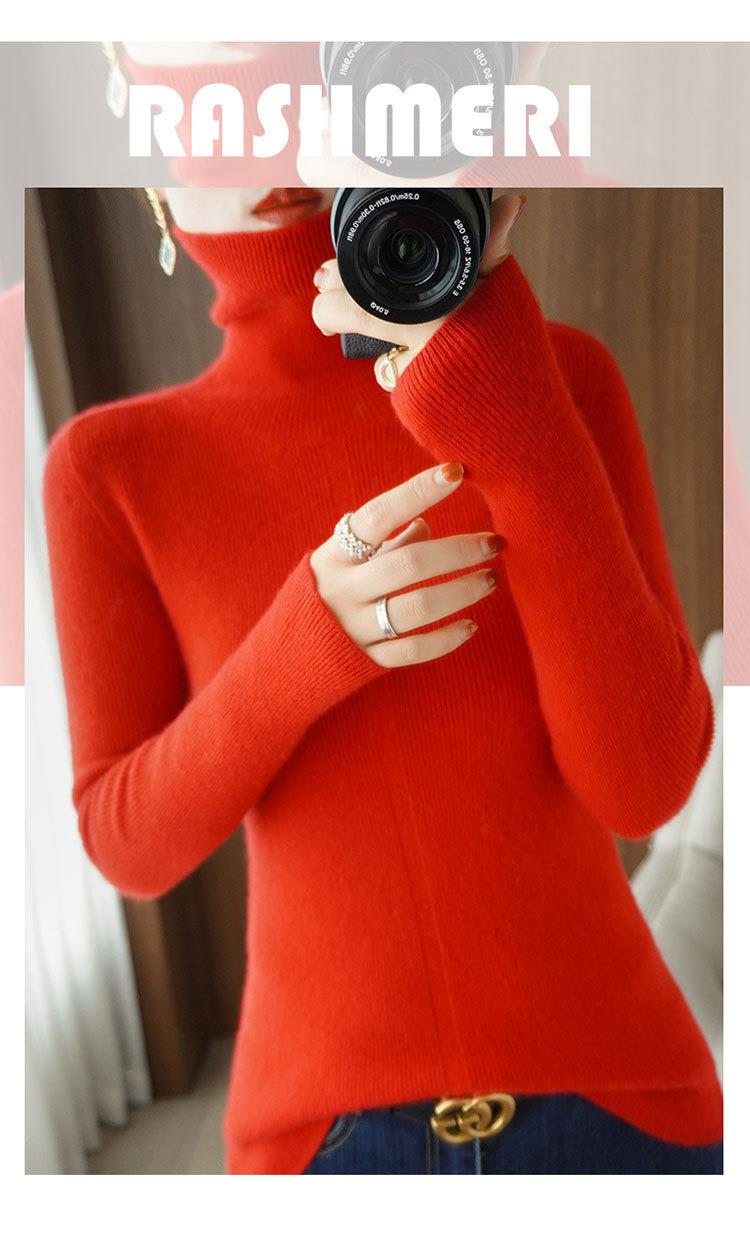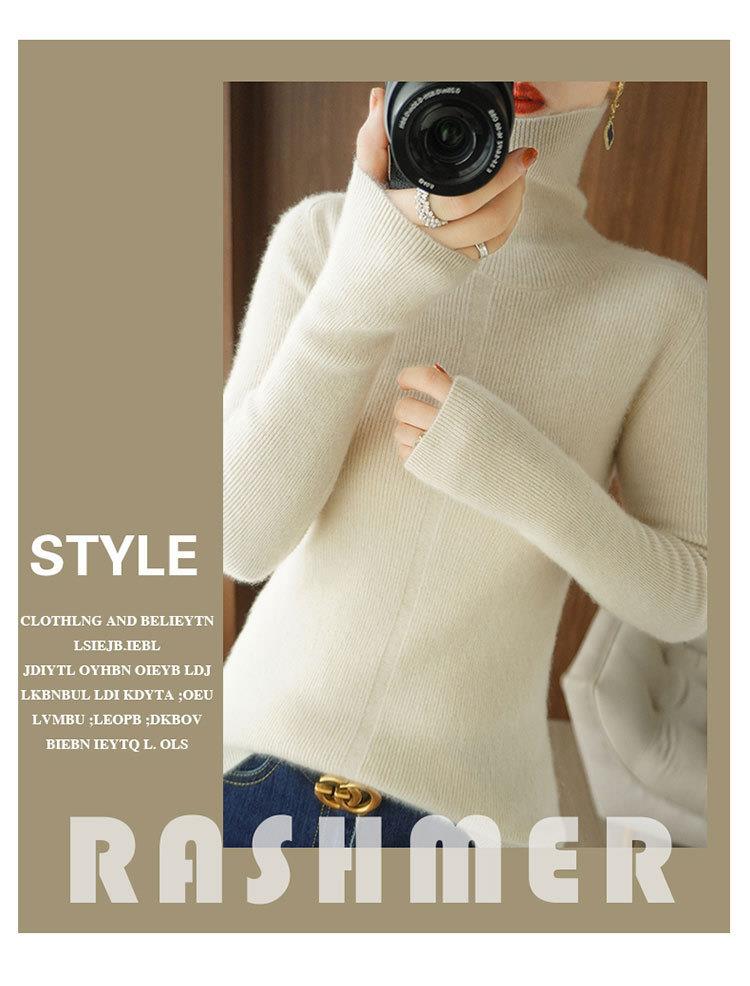 品牌2023秋季韩系风日韩休闲纯羊毛套头高领常规毛衣女式羊毛衫