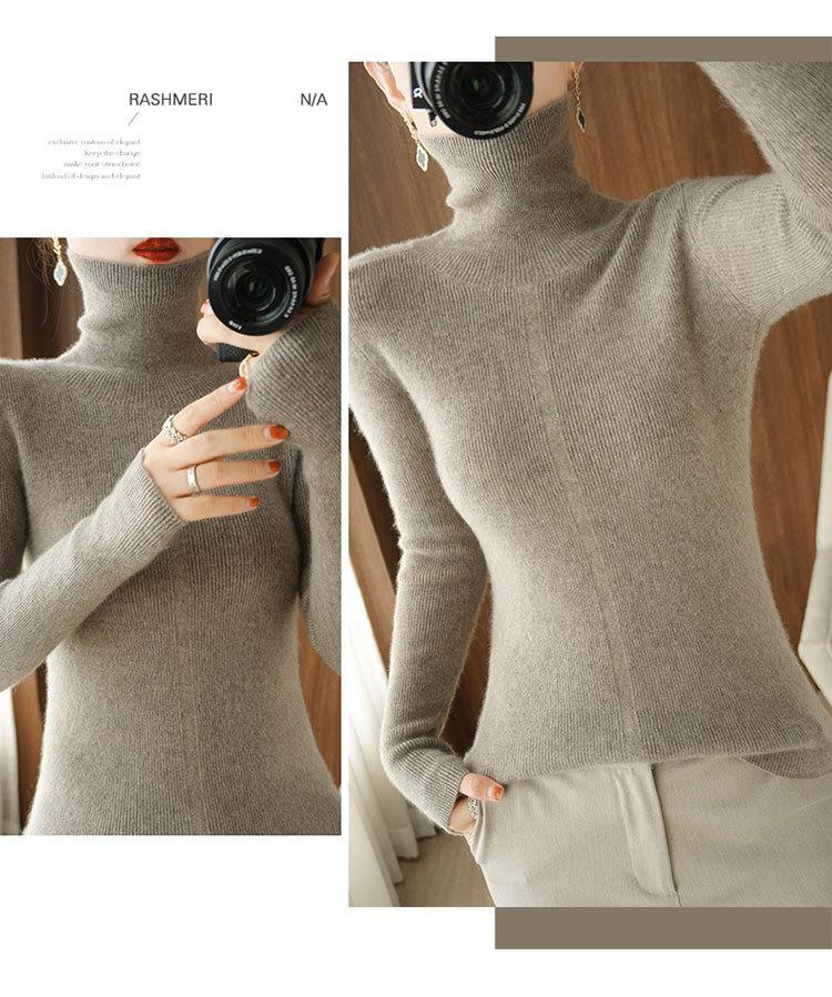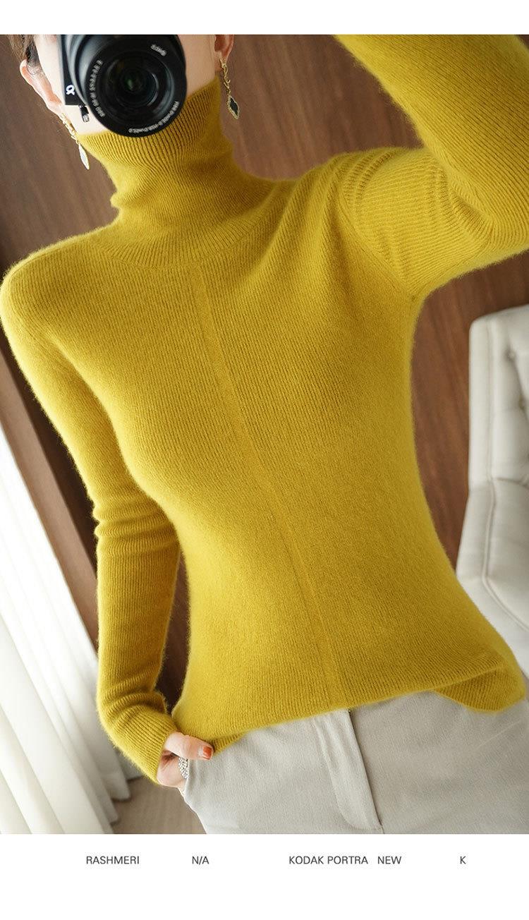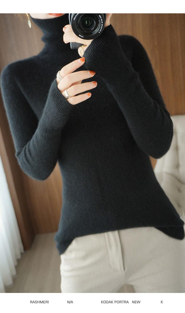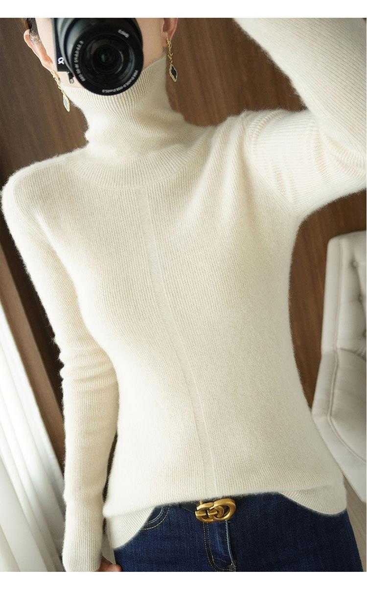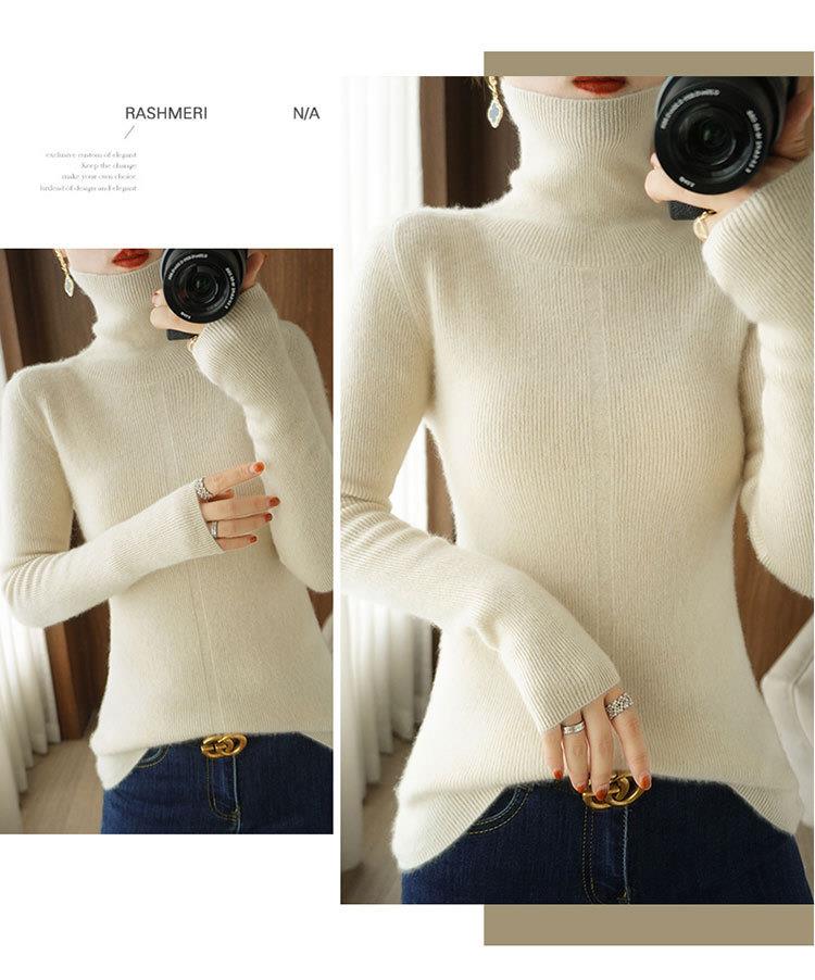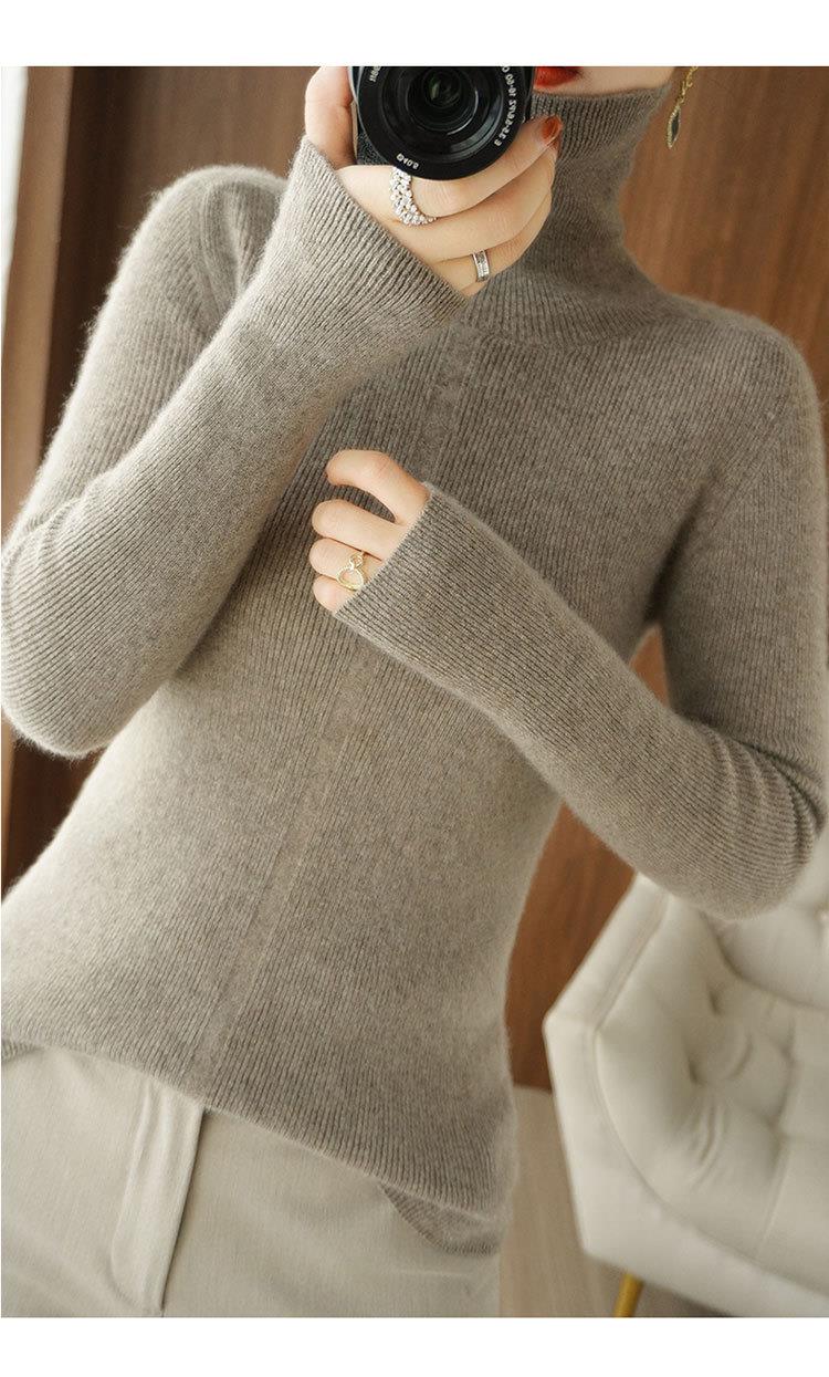 品牌2023秋季韩系风日韩休闲纯羊毛套头高领常规毛衣女式羊毛衫