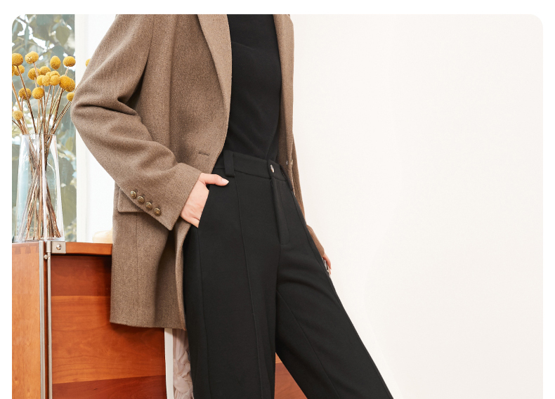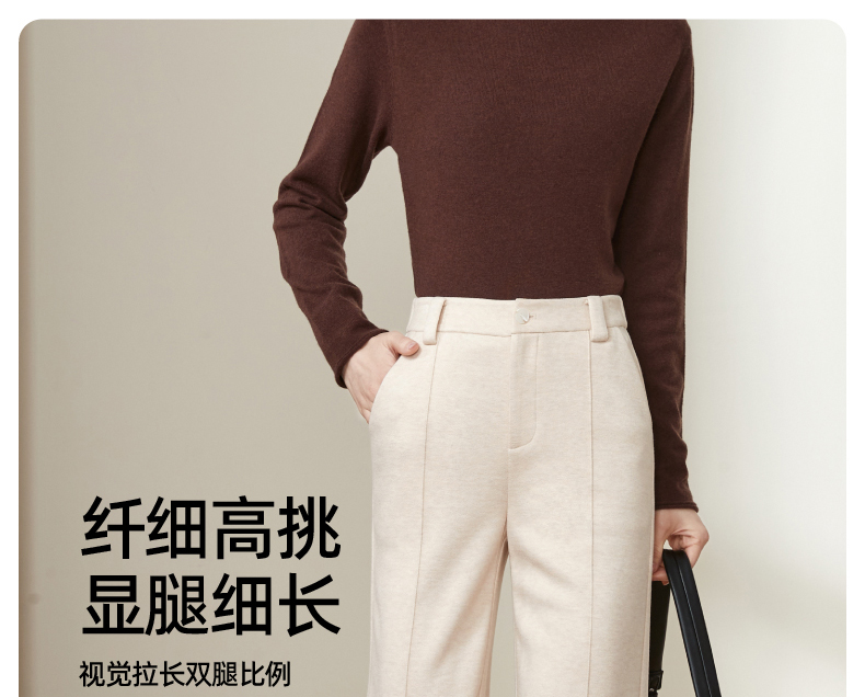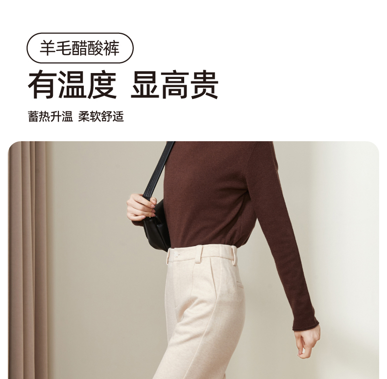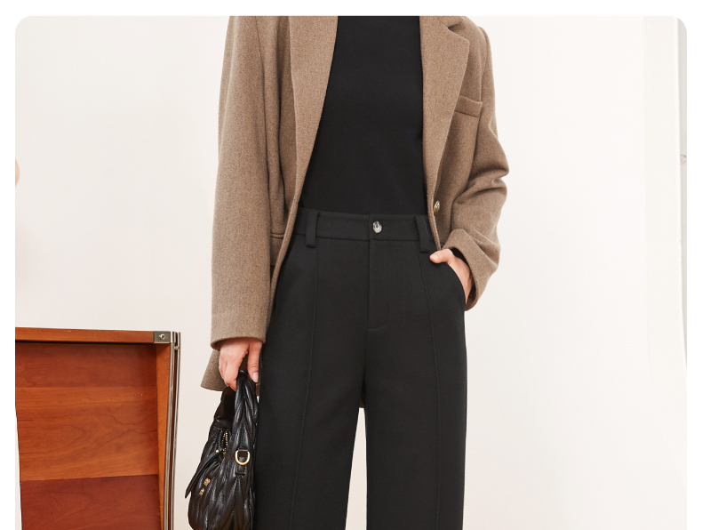 逸阳醋酸羊毛窄版阔腿裤女2024秋冬新款高腰垂感直筒休闲厚裤子0756