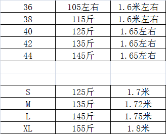 36-44为女款尺码表,S-XL为男士尺码表,冲锋衣尺寸偏大一个码。