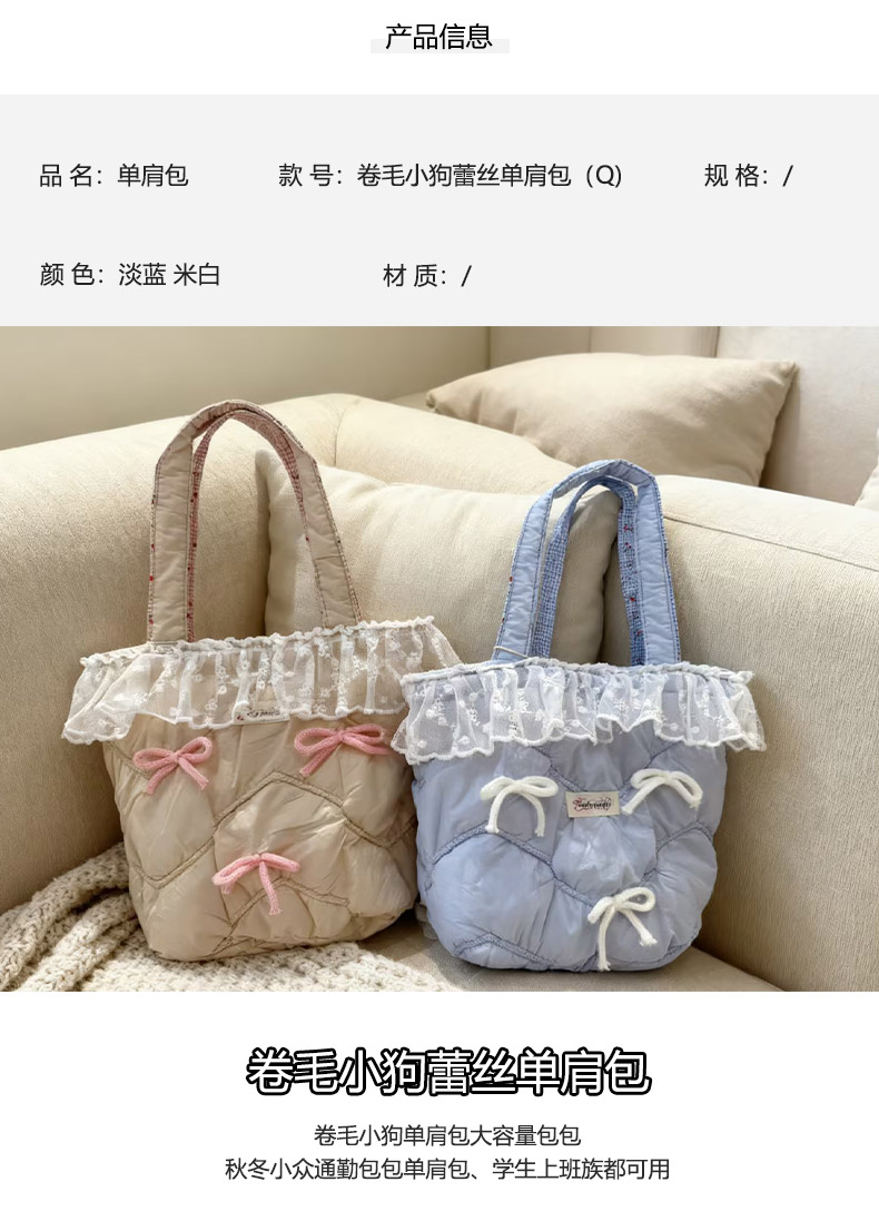 小众通勤卷毛小狗蕾丝单肩包-纪念日百货门店同款168194398