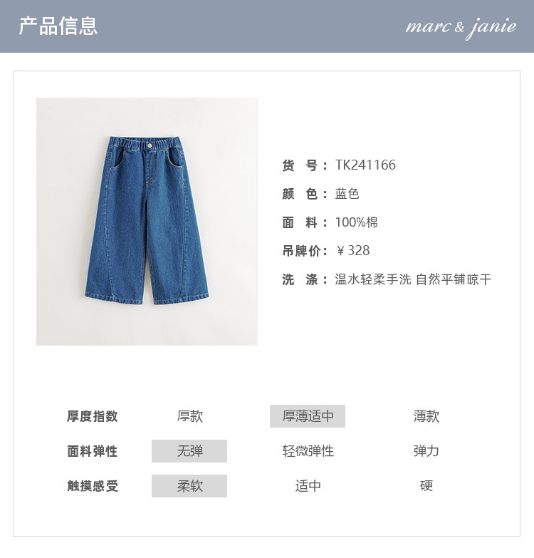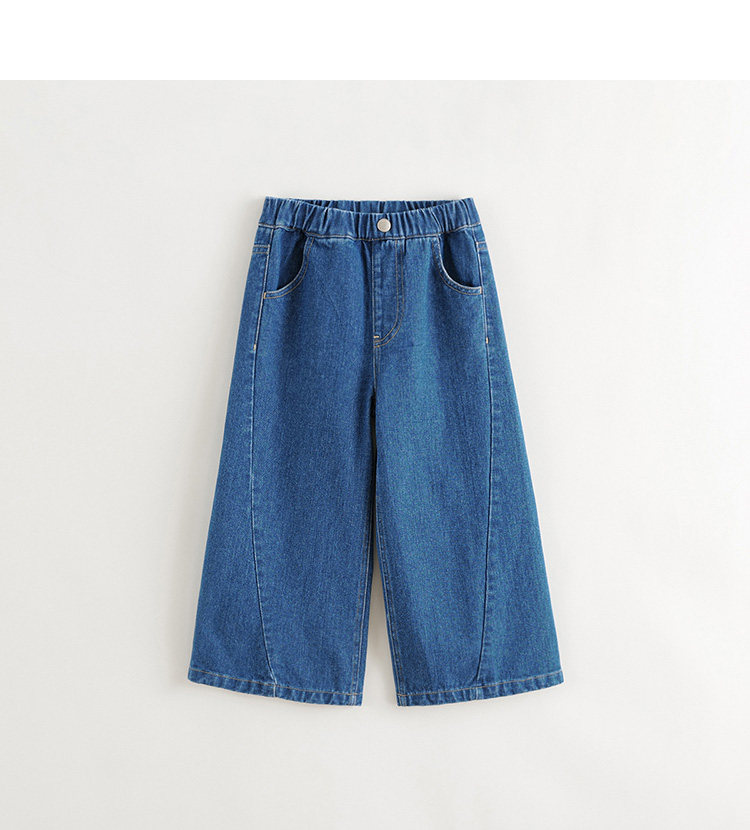 马克珍妮女童拼接全棉牛仔阔腿裤 儿童宽松裤子春秋款童装241166