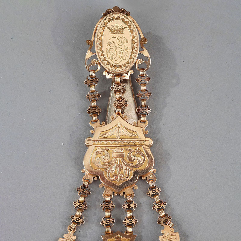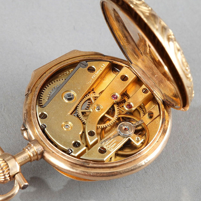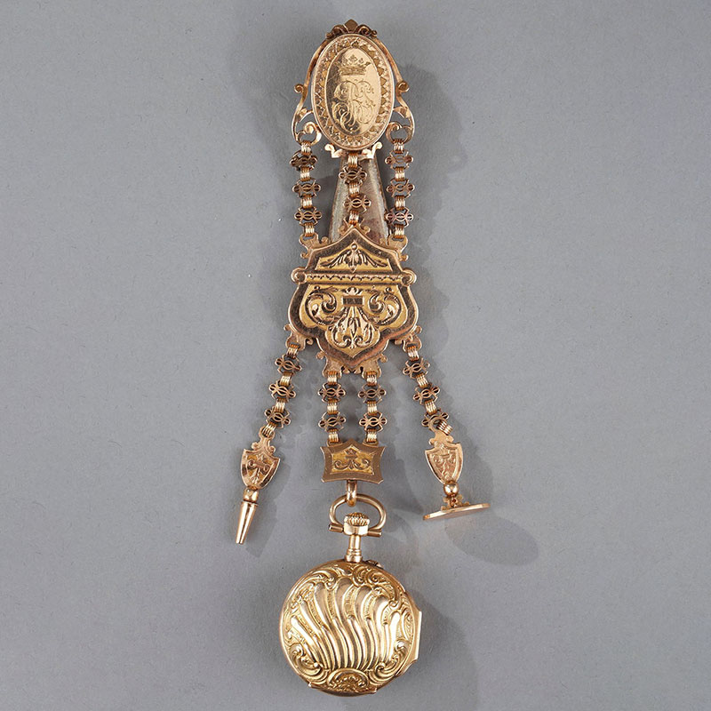 19世纪瑞士出品18K黄金雕饰贵族定制腰链怀表