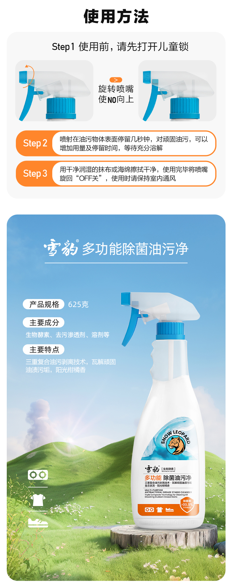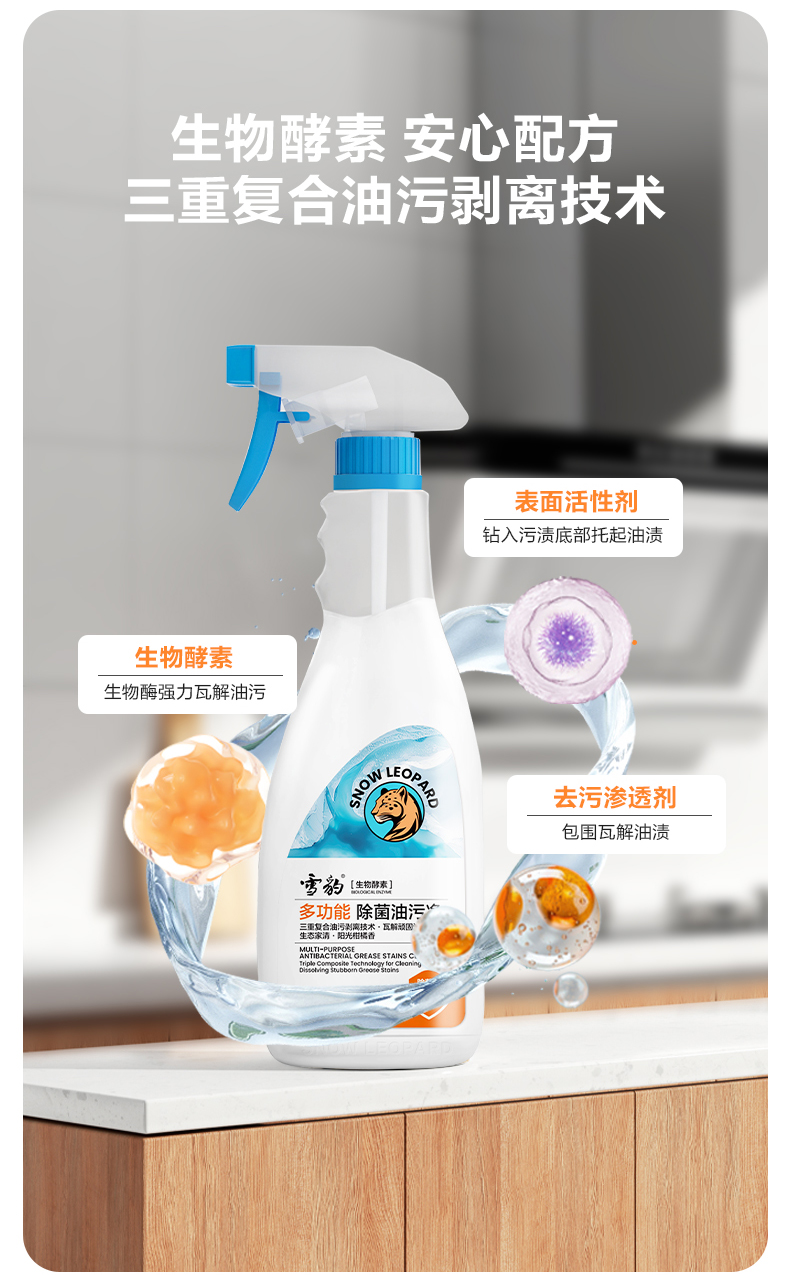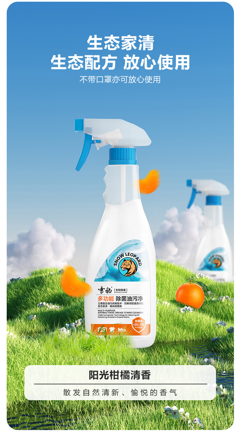 【双十二】雪豹生态家清 多功能除菌油污净(生物酵素)625g 59038-秒杀