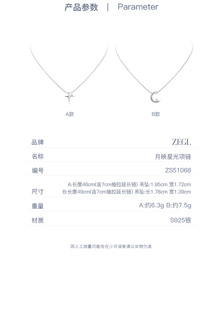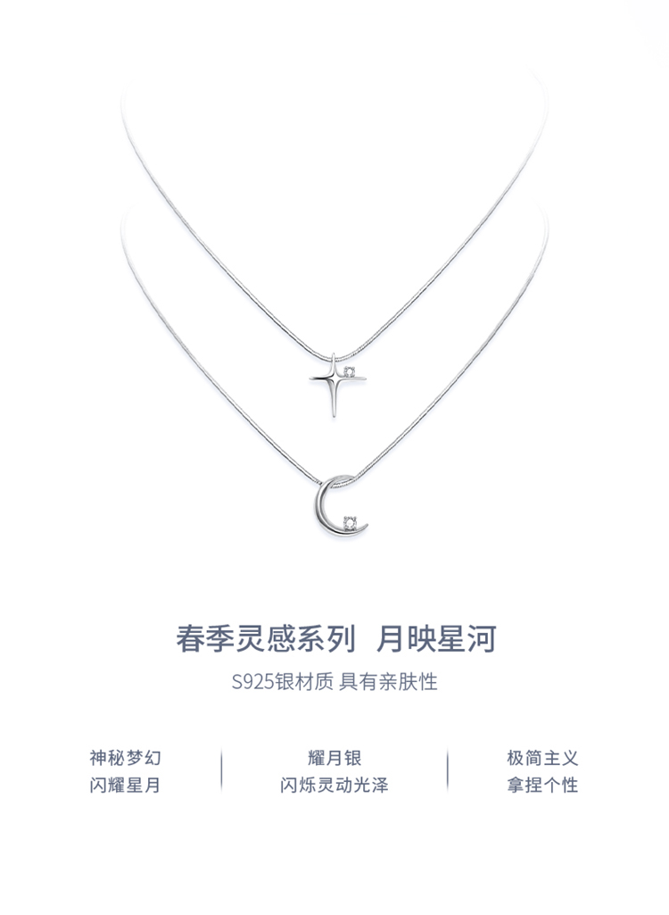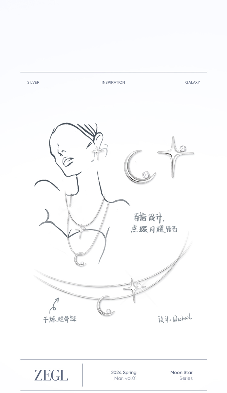 ZEGL设计师月映星河系列925银星星项链女2024新款月亮锁骨链饰品
