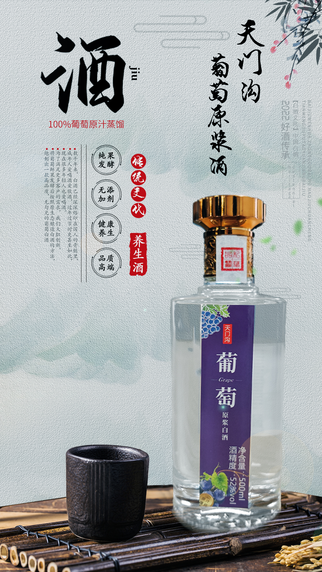 天门沟葡萄原浆白酒500ml*1瓶/2瓶/6瓶