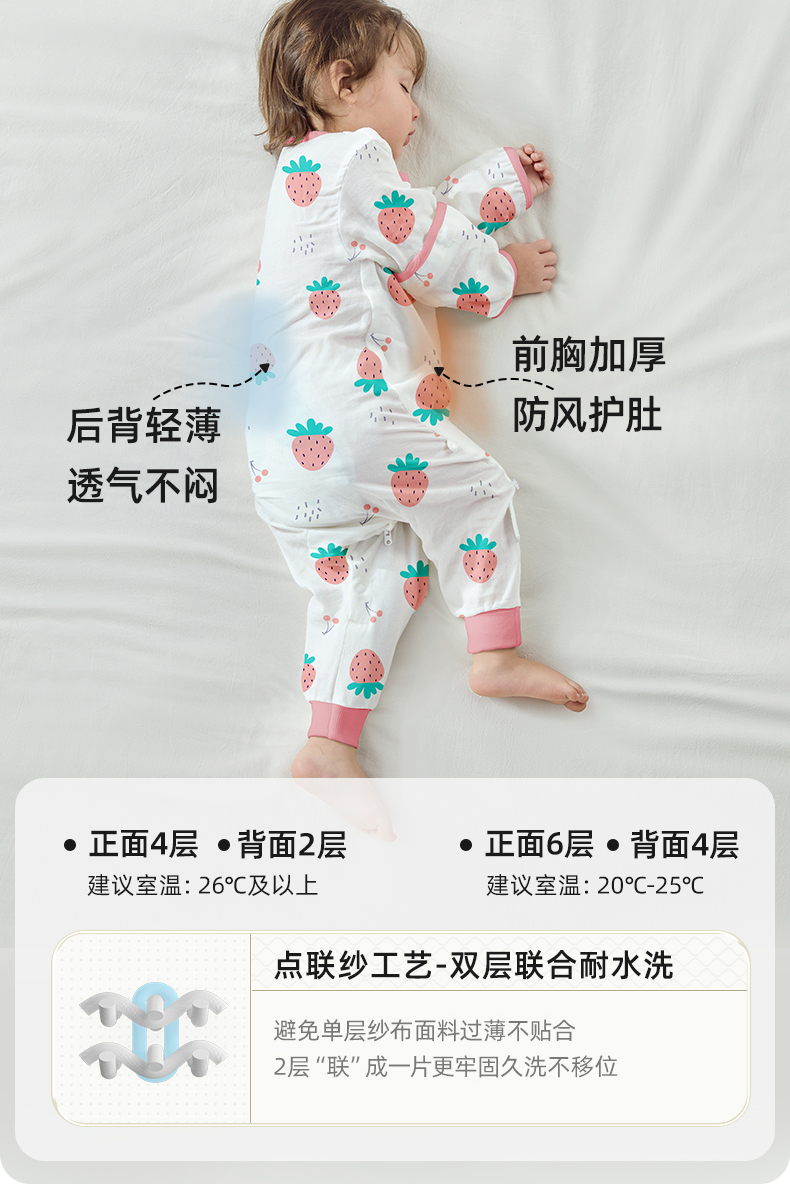 贝肽斯婴儿睡袋春秋夏季薄款纱布睡袋宝宝防踢被儿童分腿四季通用