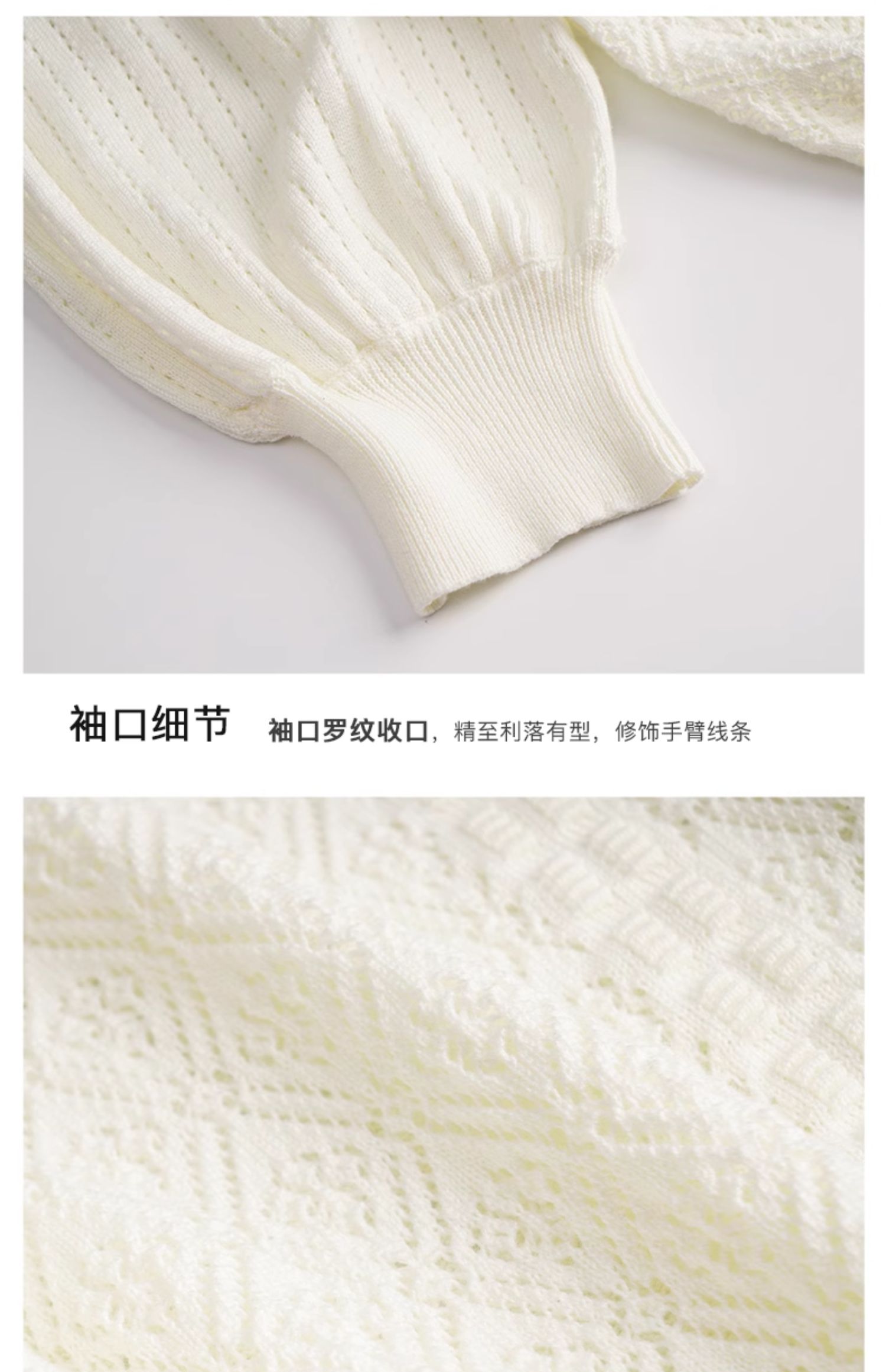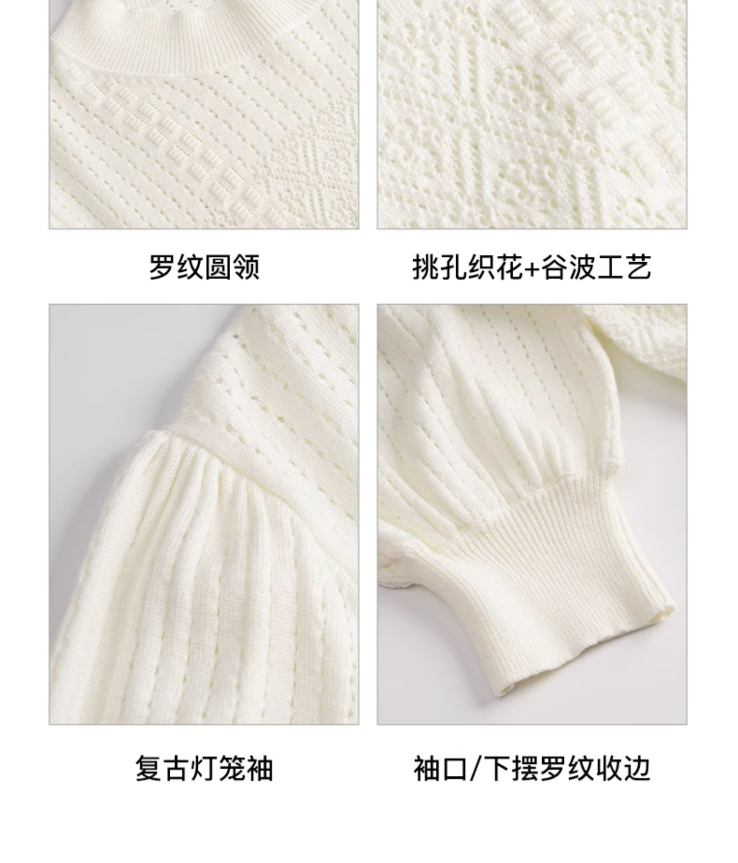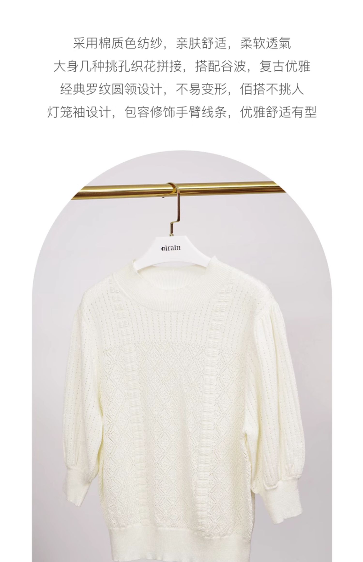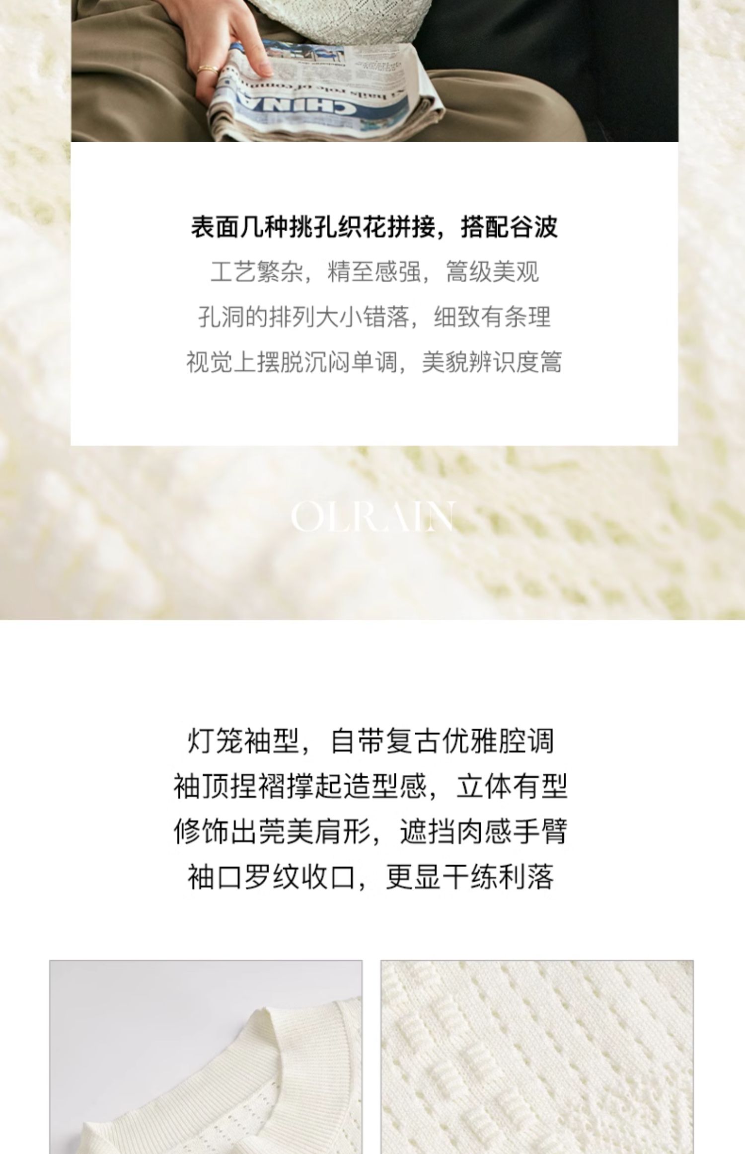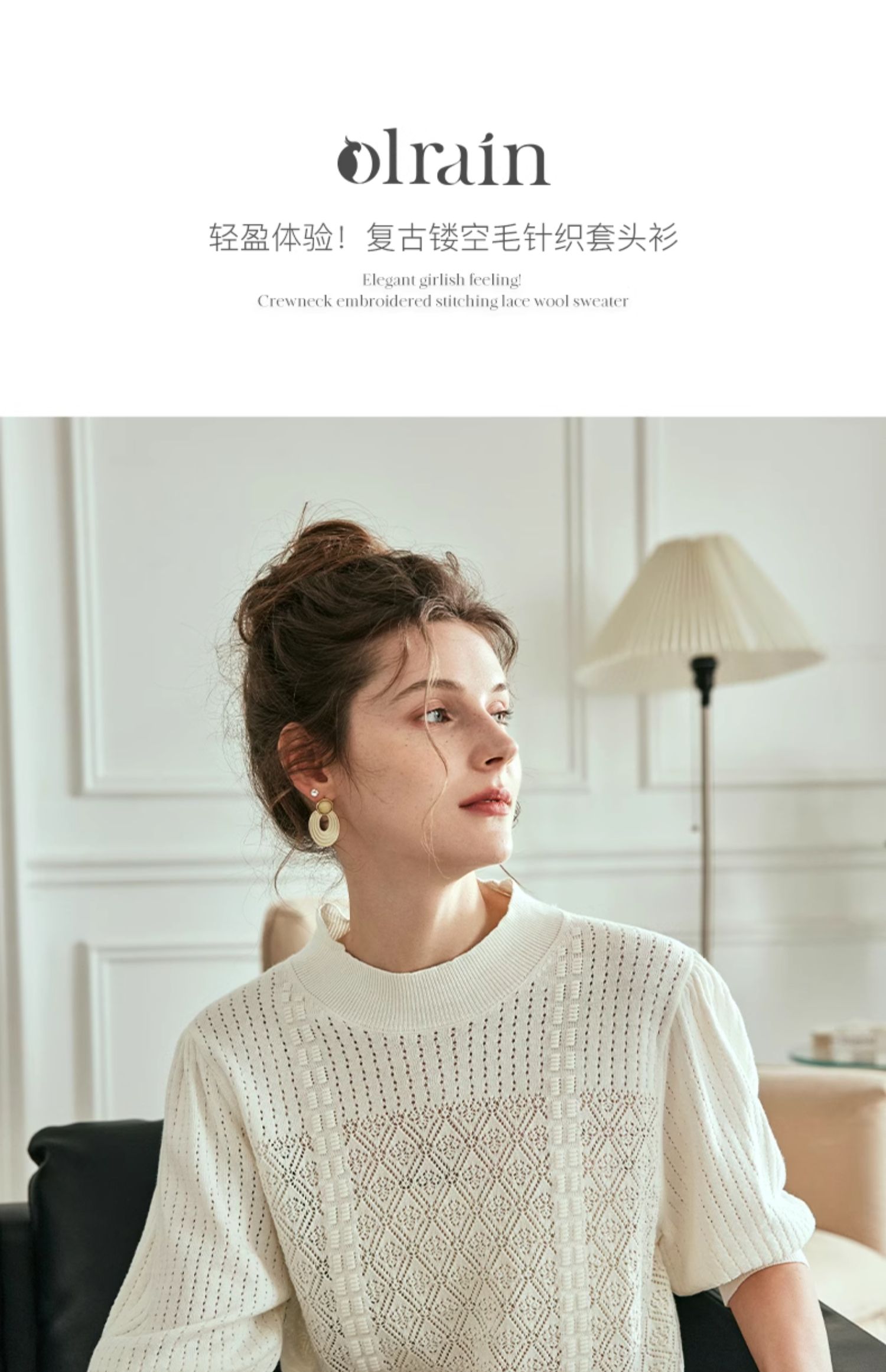 OLrain欧芮儿法式米白色针织衫女春夏2024新款宽松复古镂空套头衫