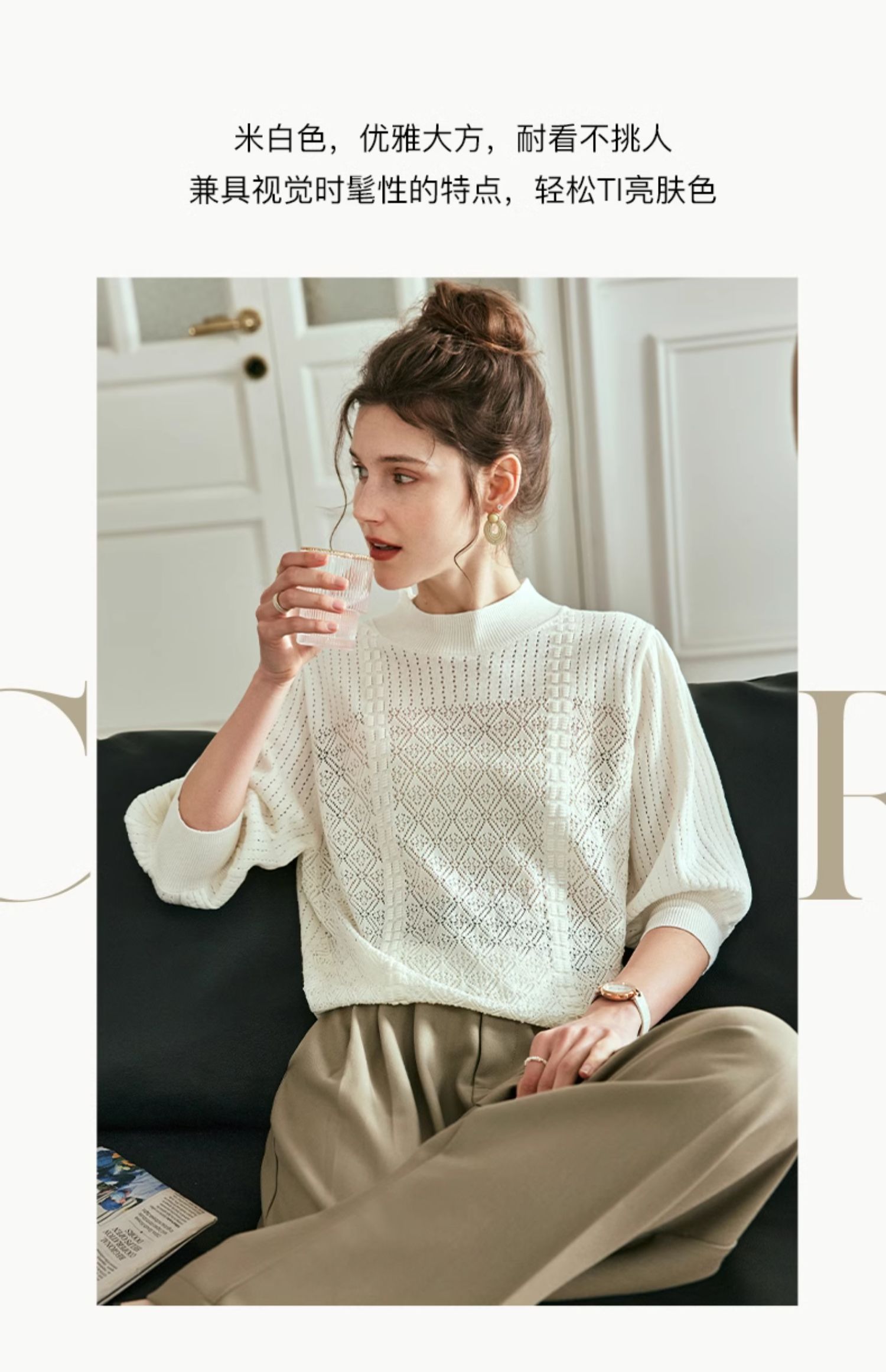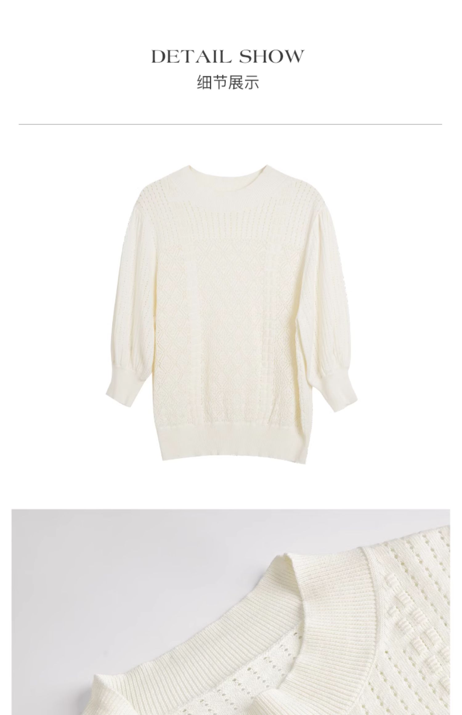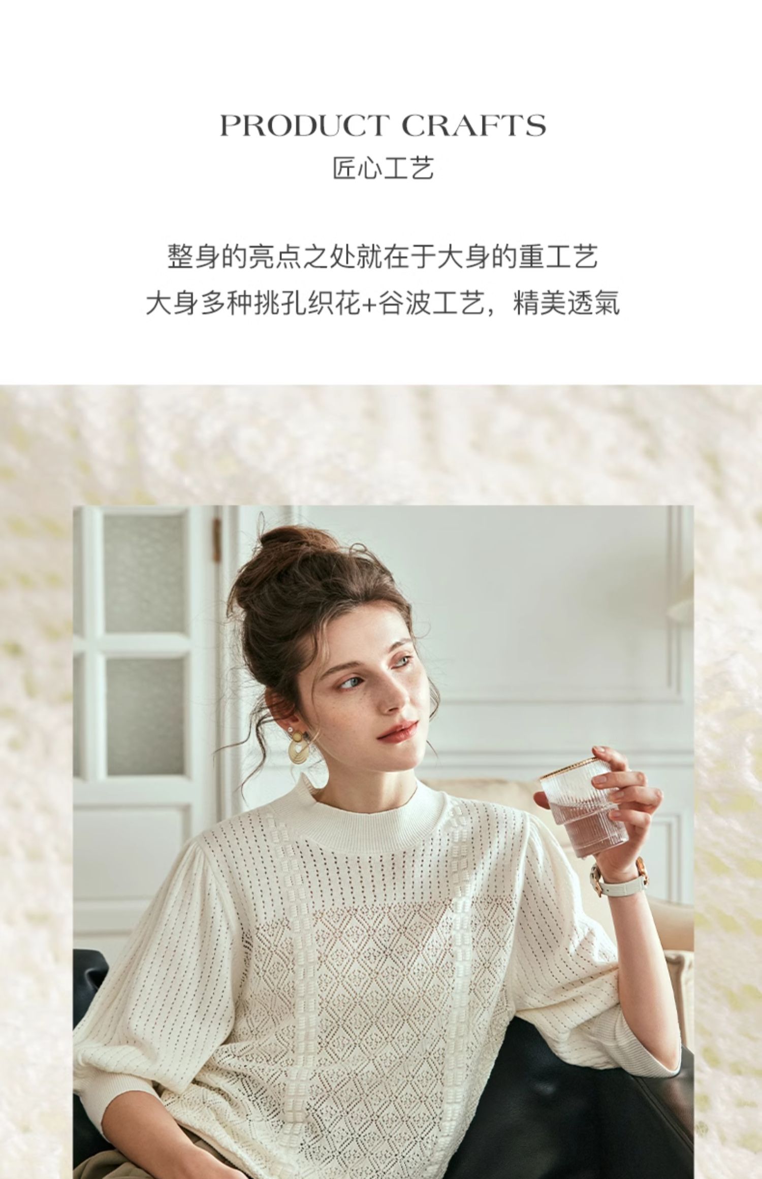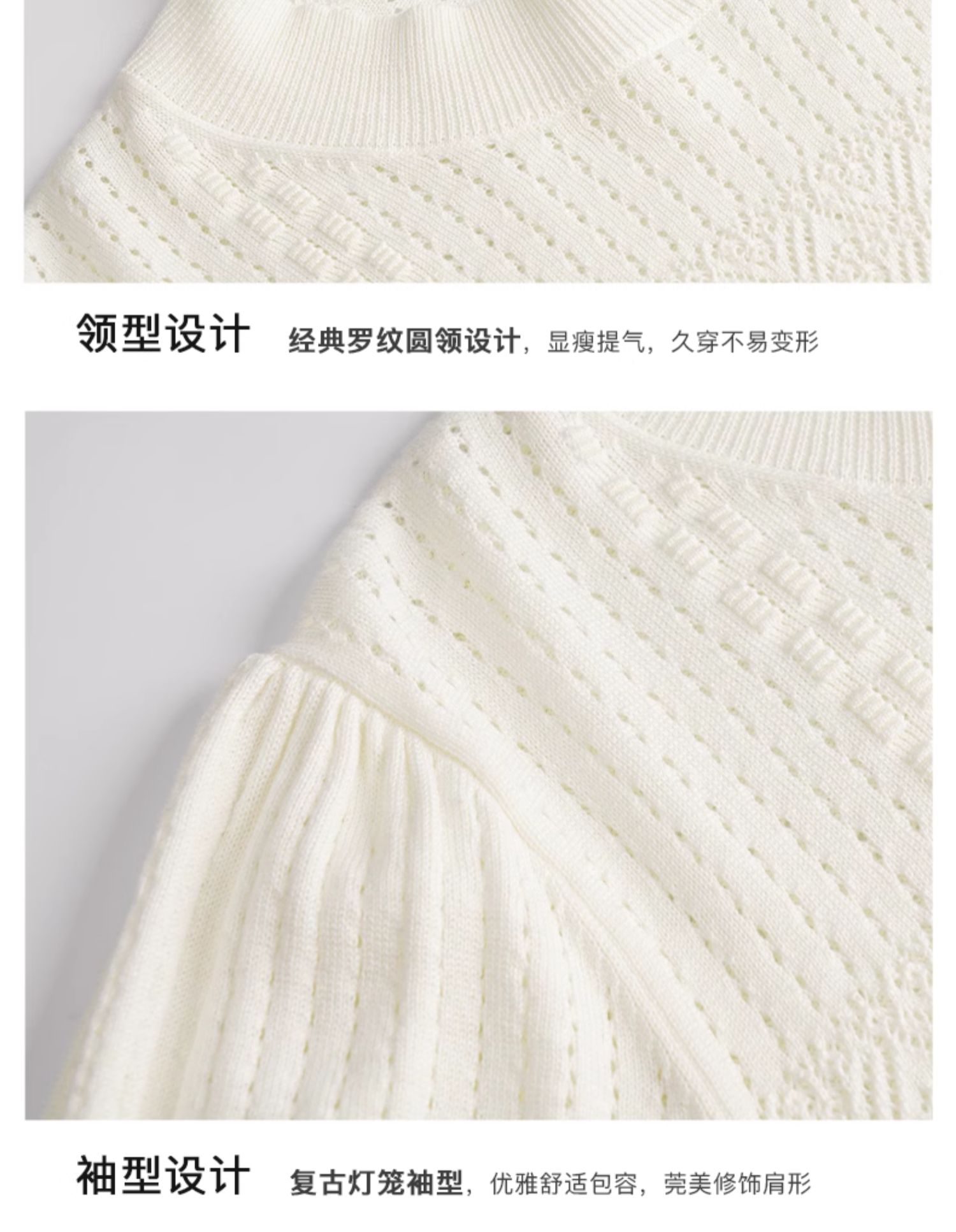 OLrain欧芮儿法式米白色针织衫女春夏2024新款宽松复古镂空套头衫