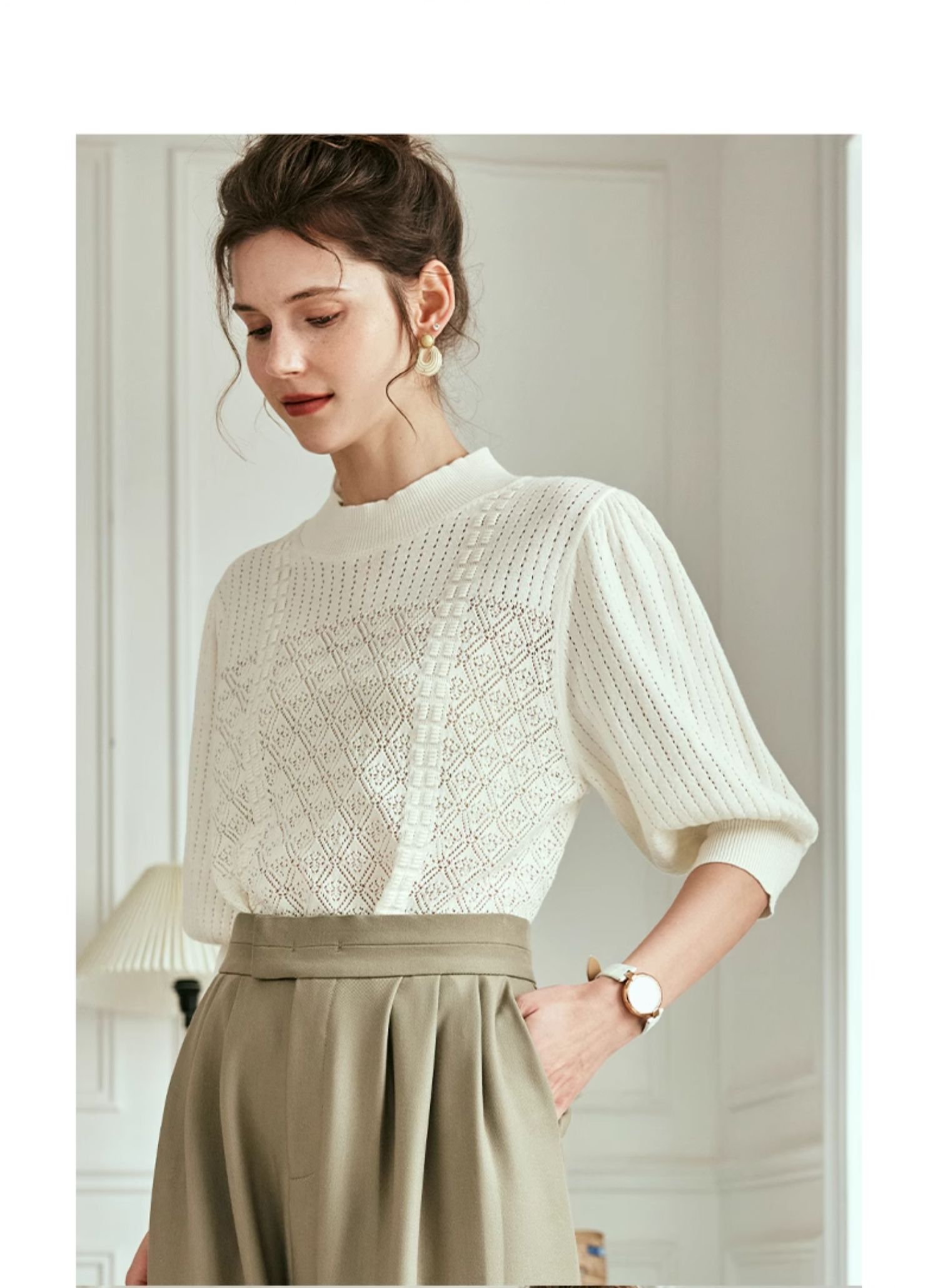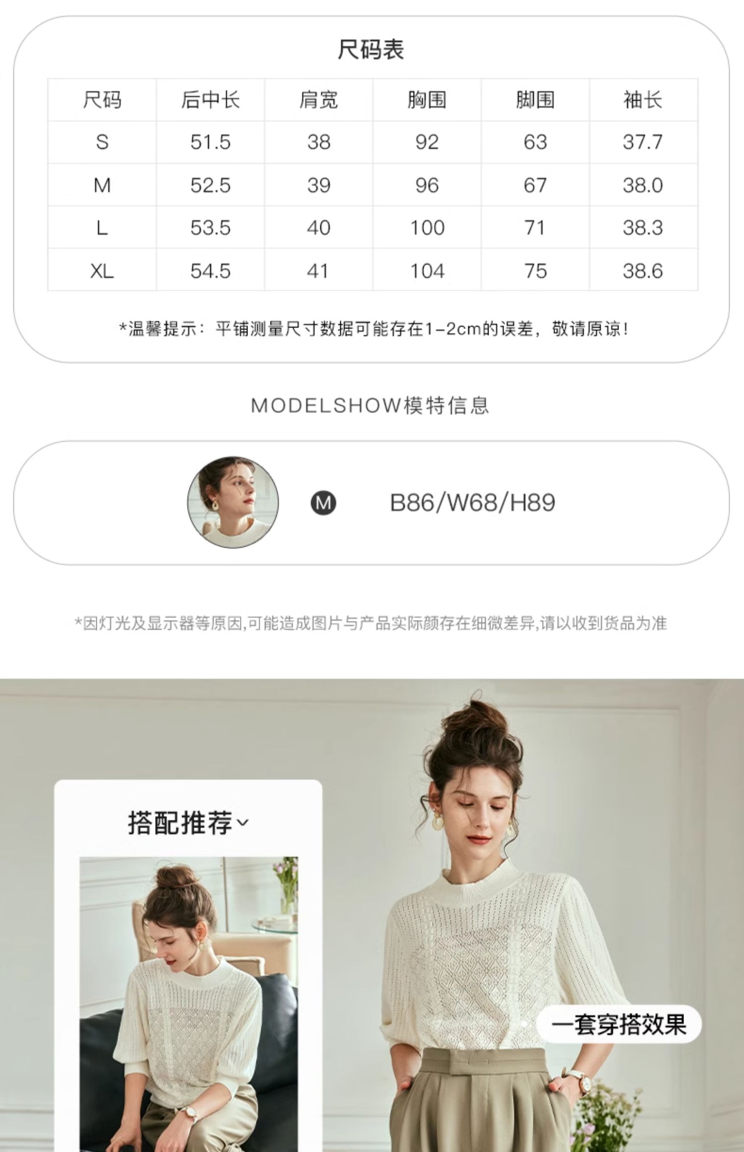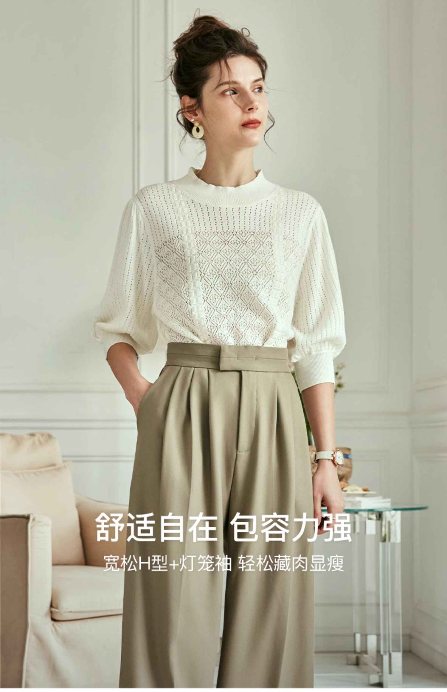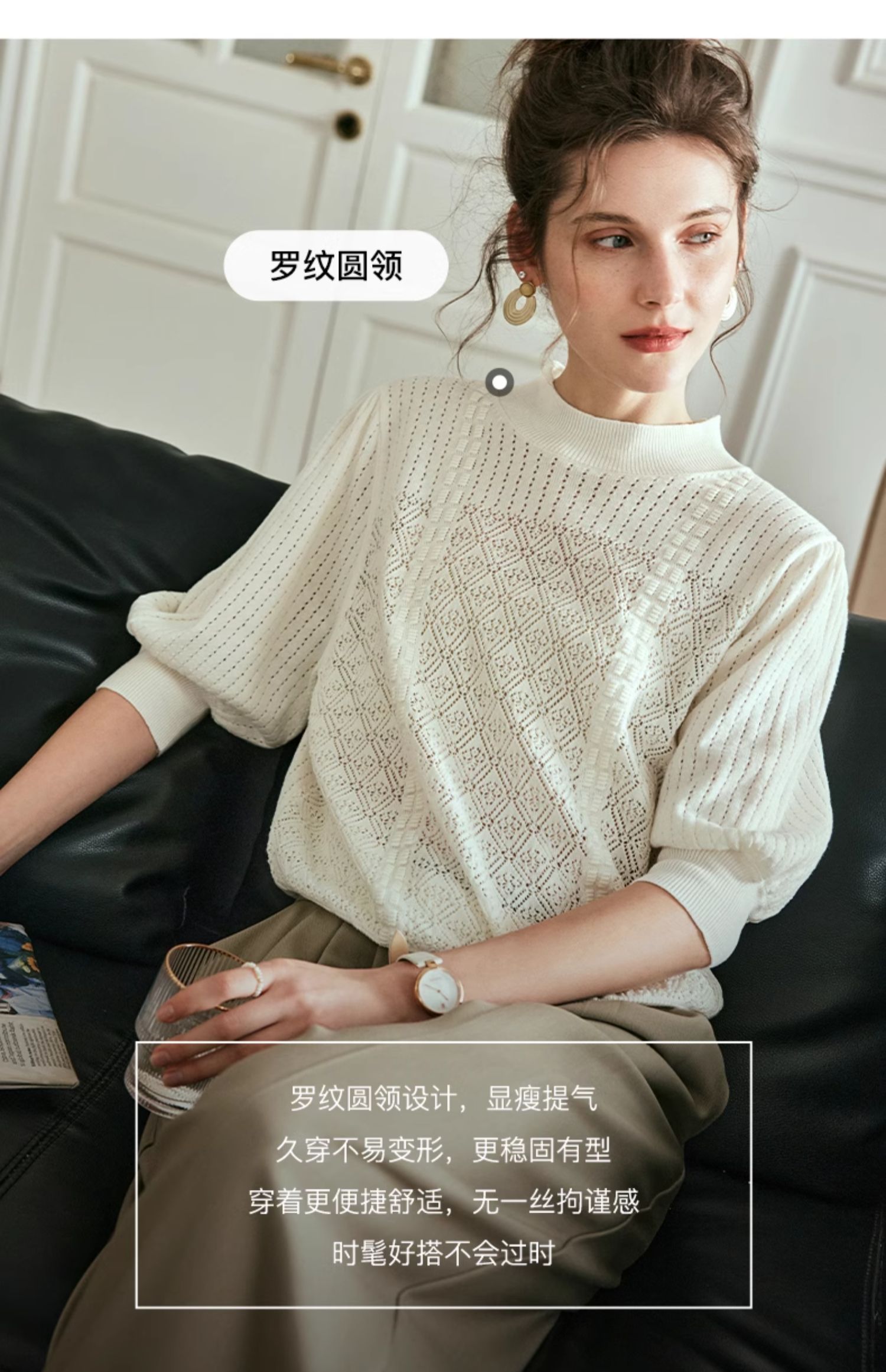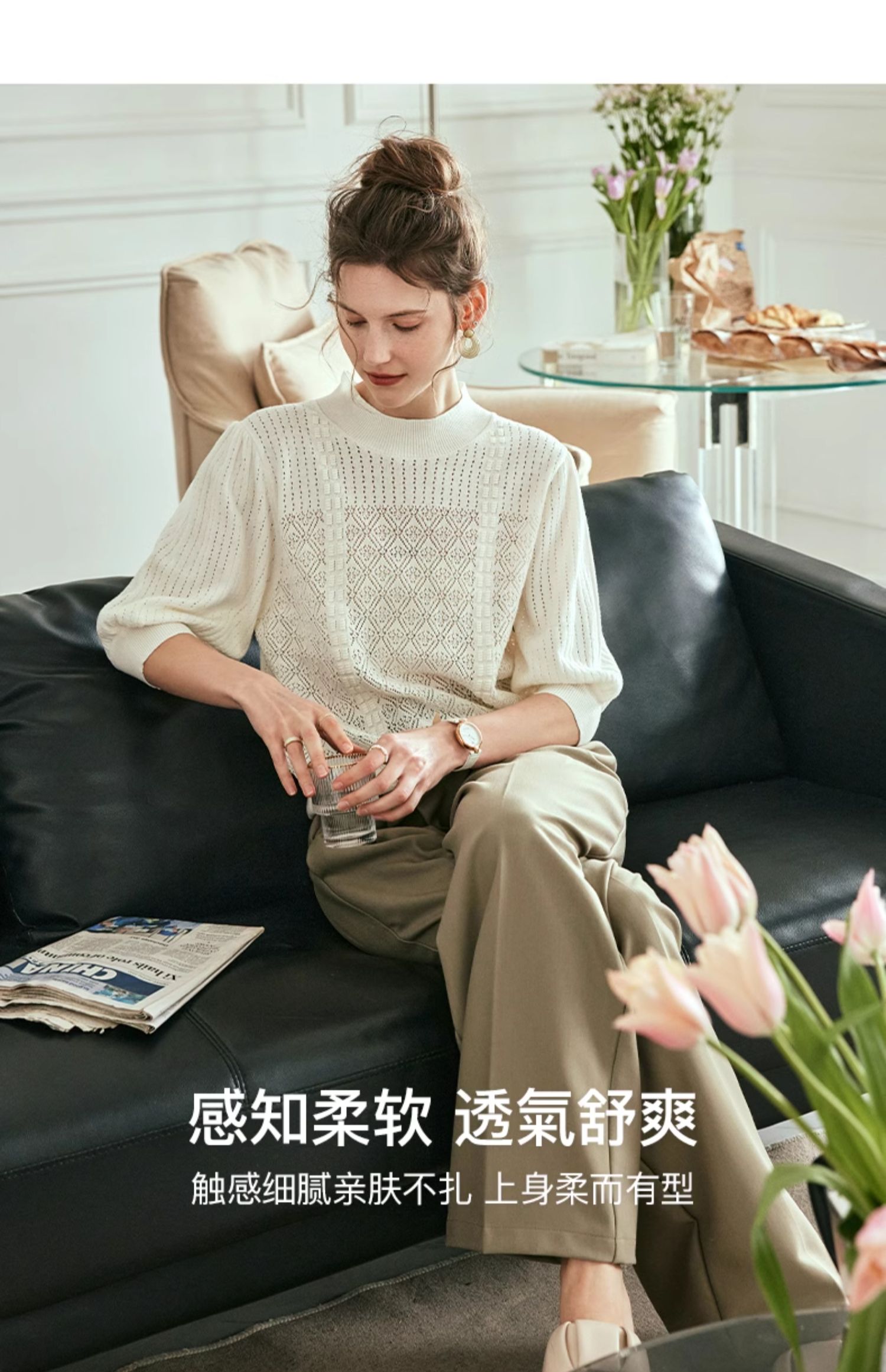 OLrain欧芮儿法式米白色针织衫女春夏2024新款宽松复古镂空套头衫