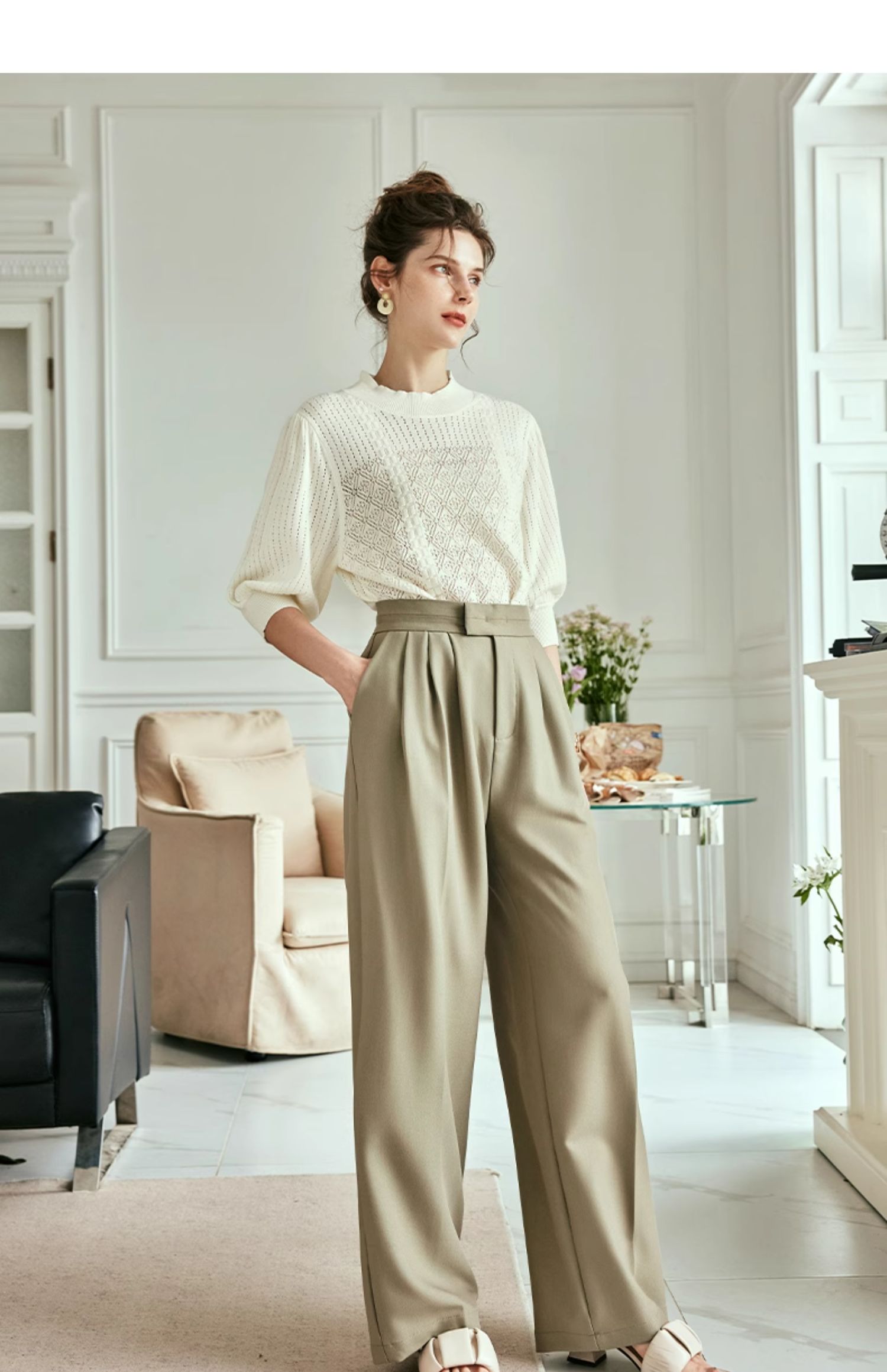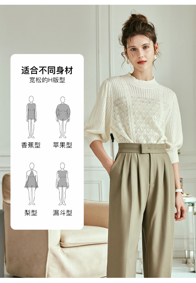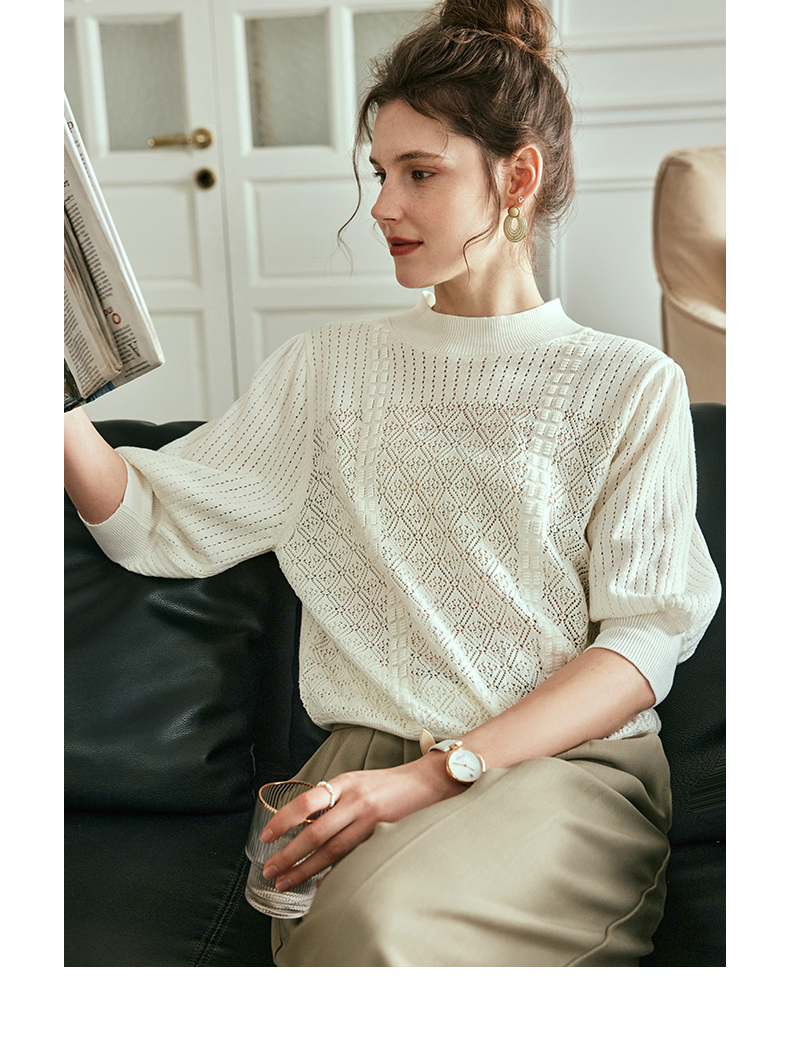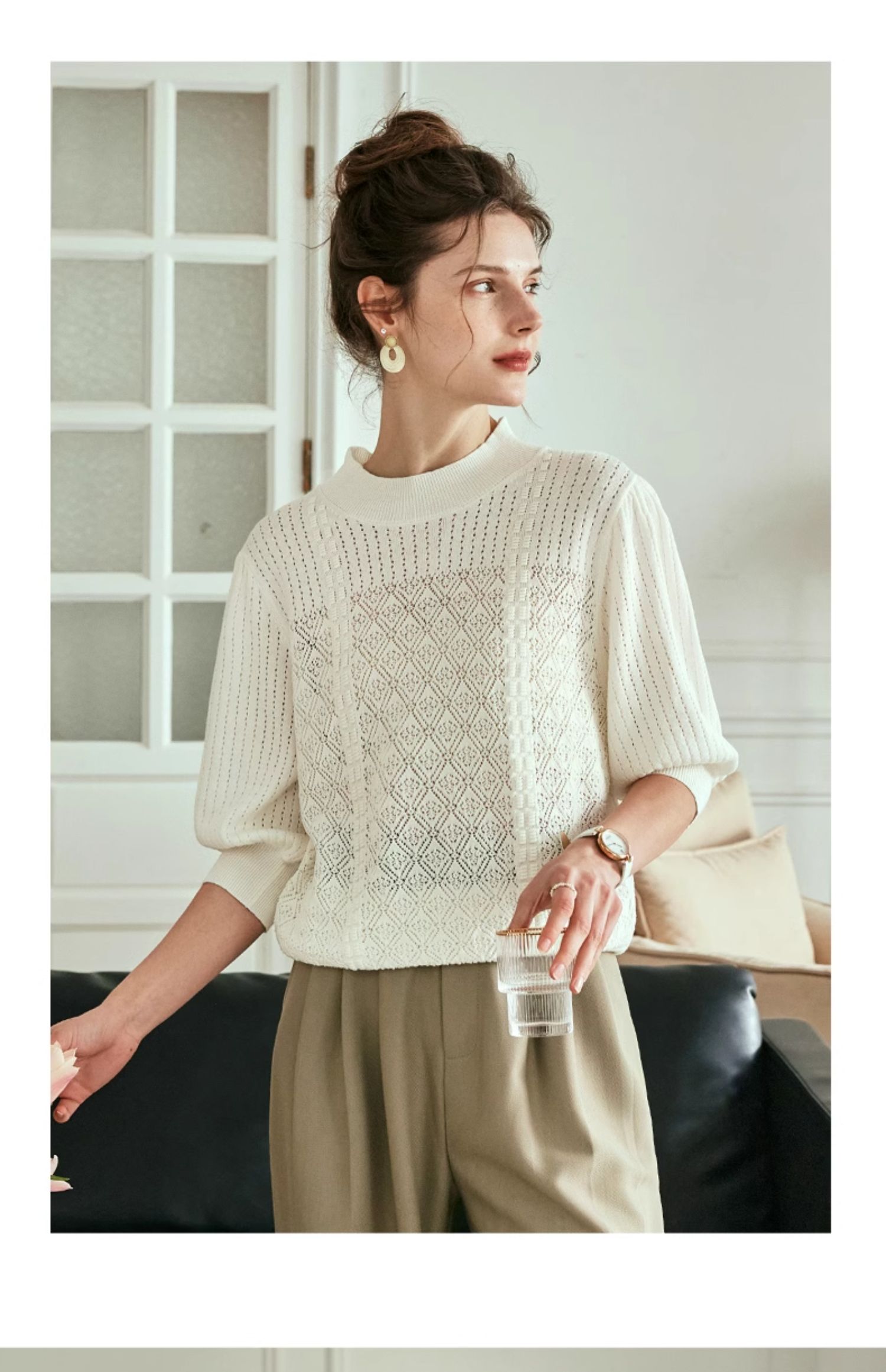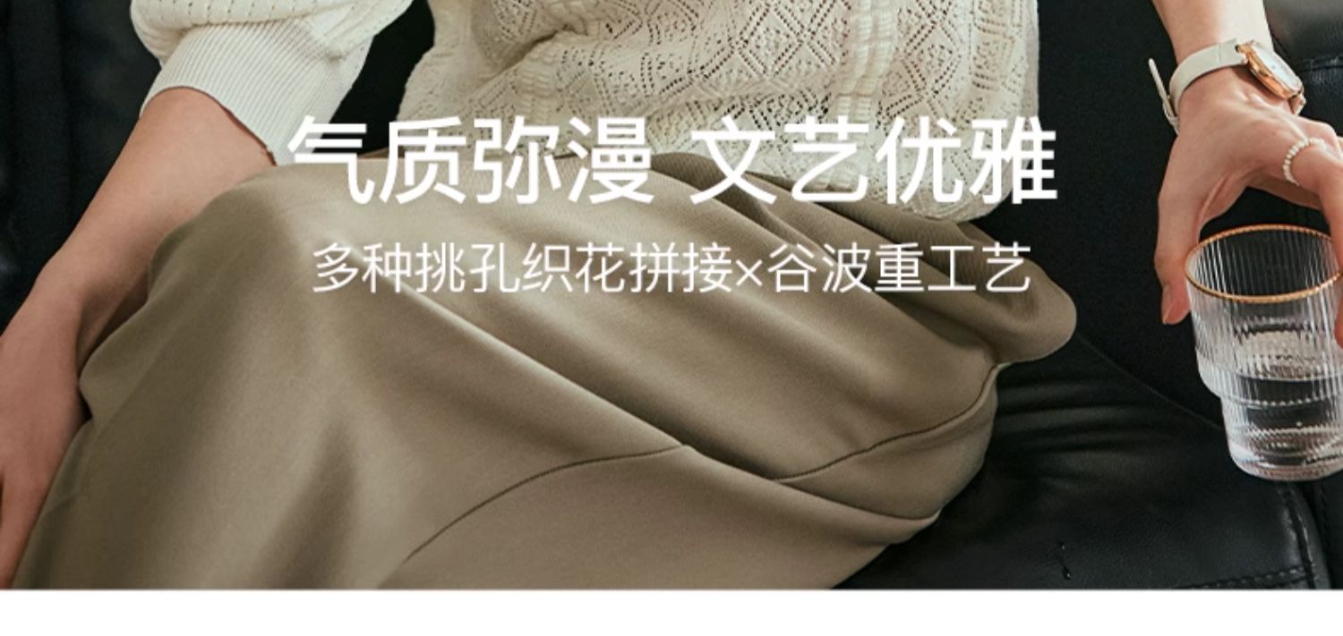 OLrain欧芮儿法式米白色针织衫女春夏2024新款宽松复古镂空套头衫