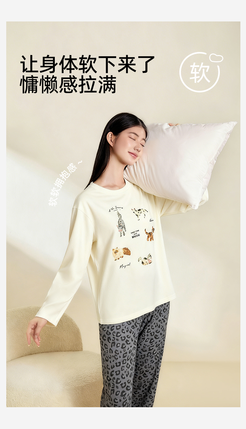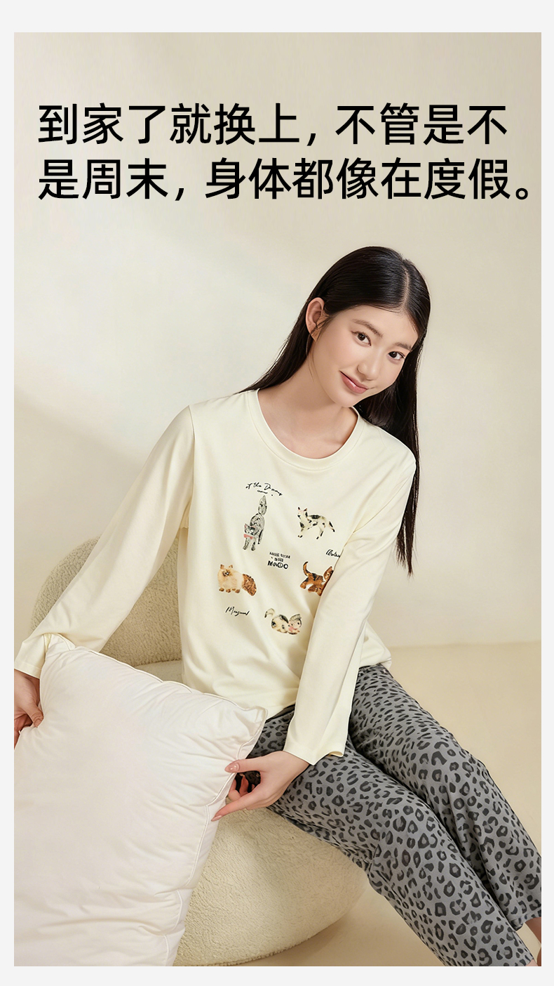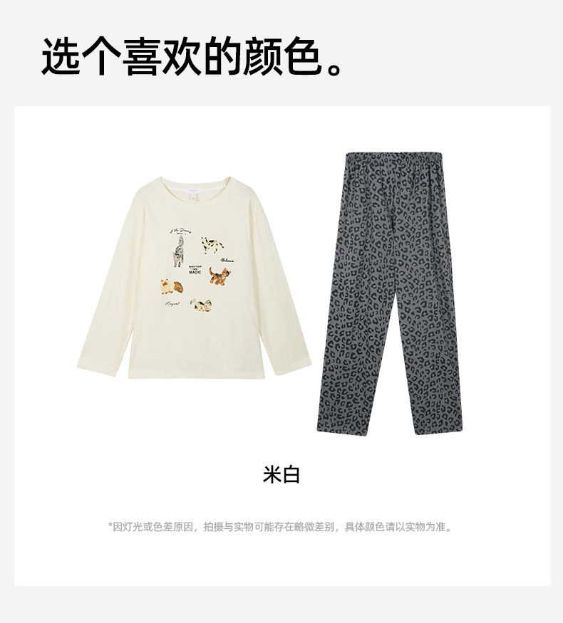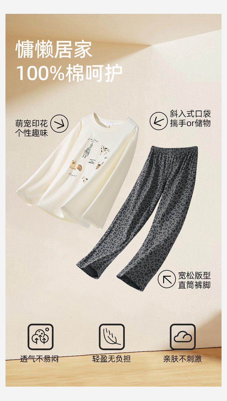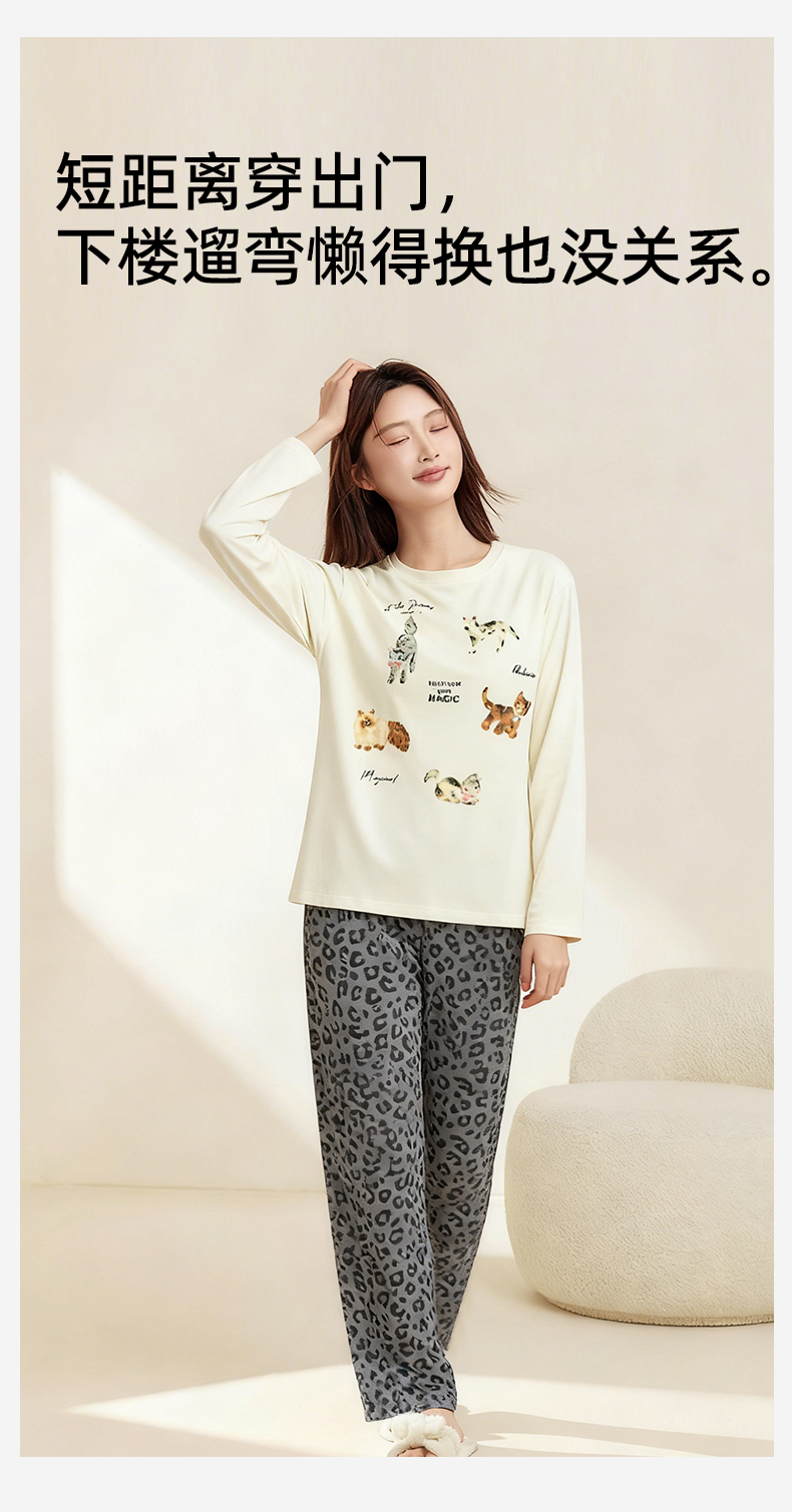熳洁儿 纯棉家居服秋冬新款卡通豹纹长袖长裤套装25763207