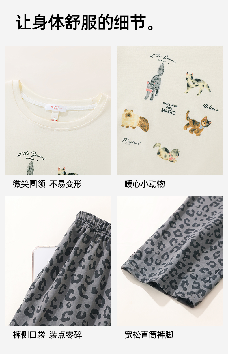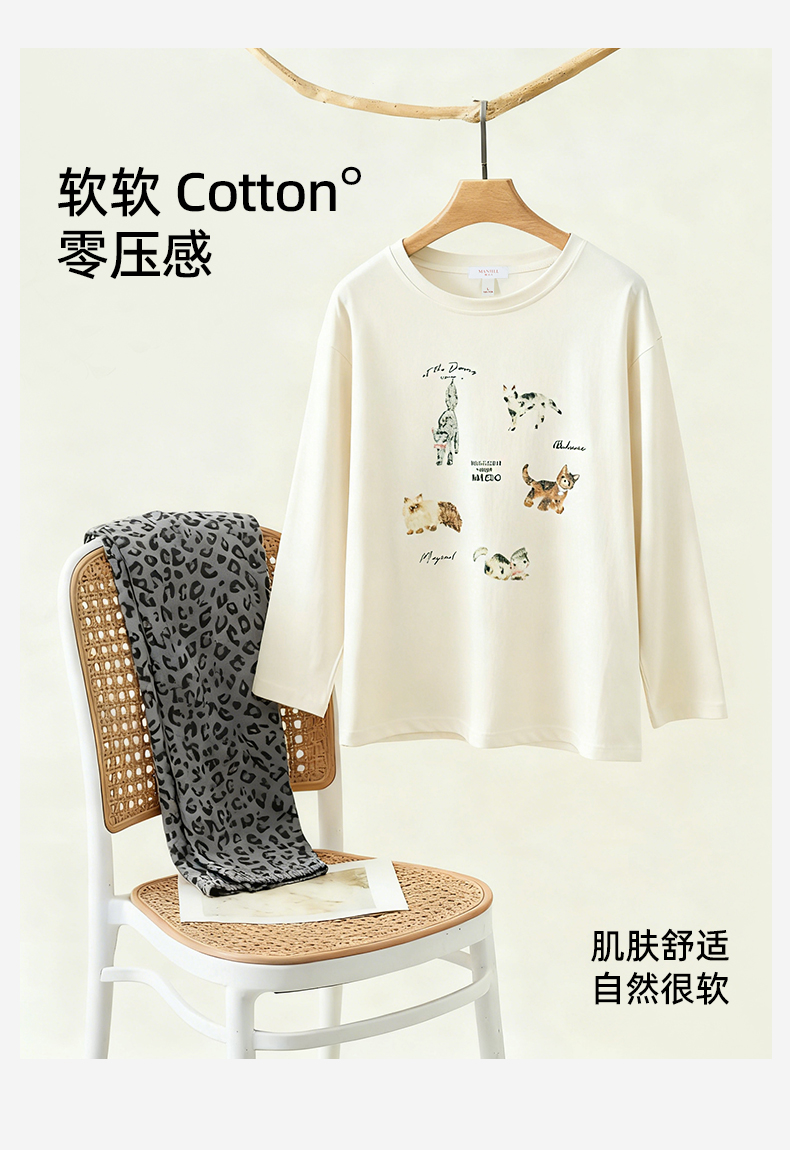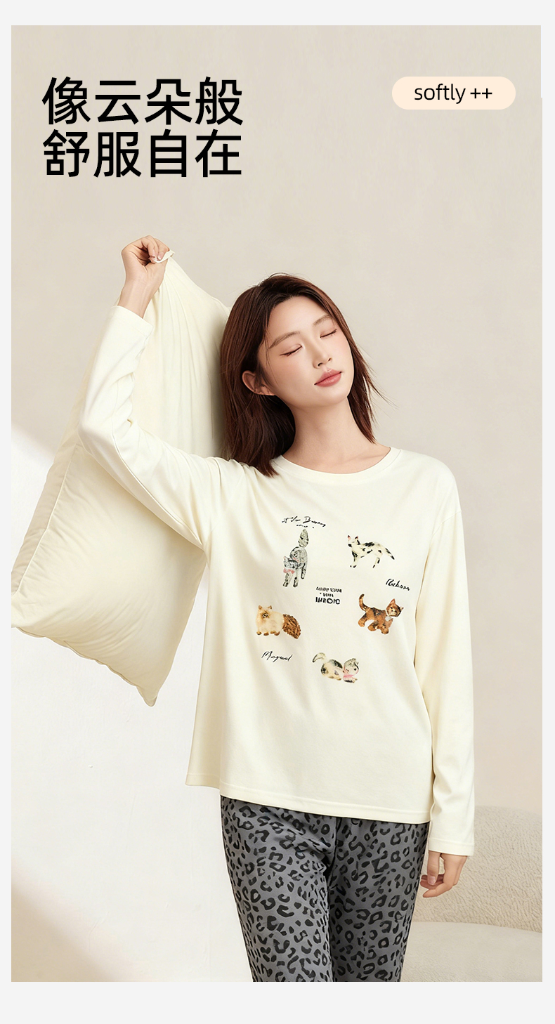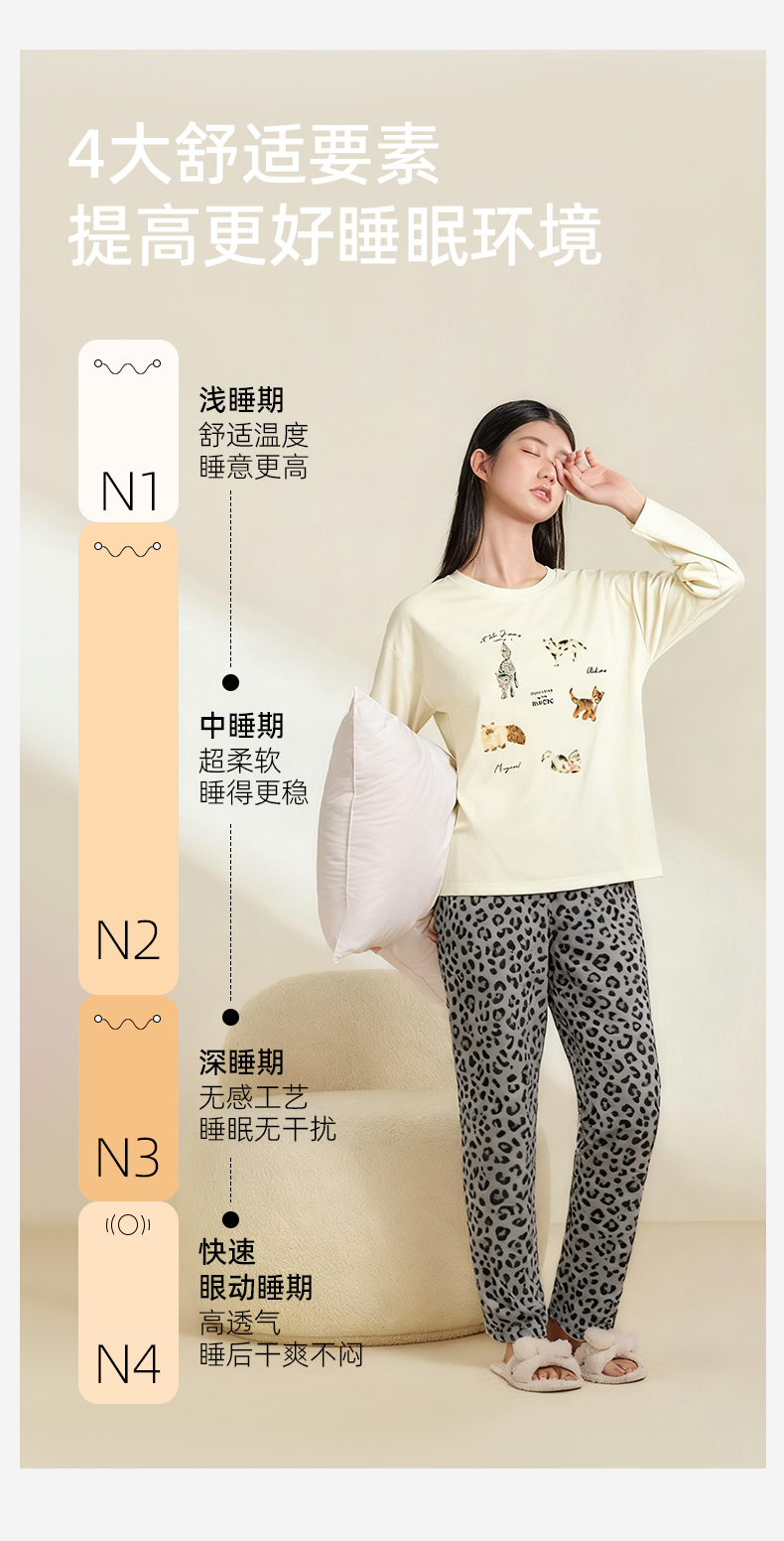 熳洁儿 纯棉家居服秋冬新款卡通豹纹长袖长裤套装25763207