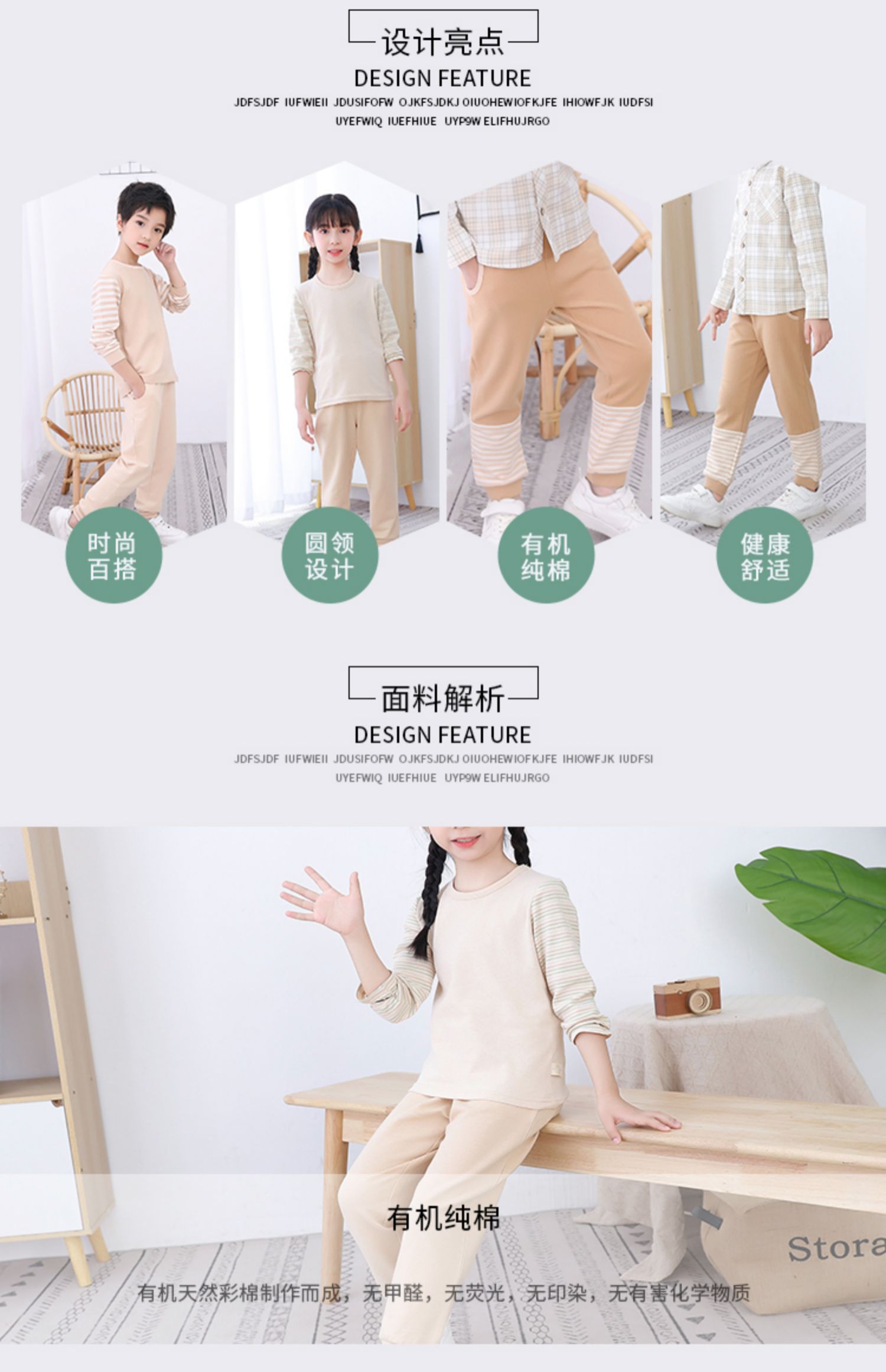 丨有机丨素道彩棉儿童长袖T恤 长裤 裤子 男女通用款 纯棉
