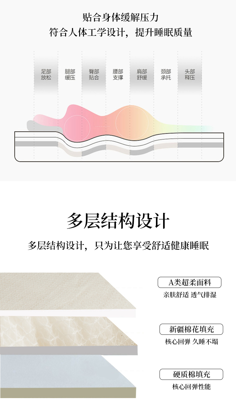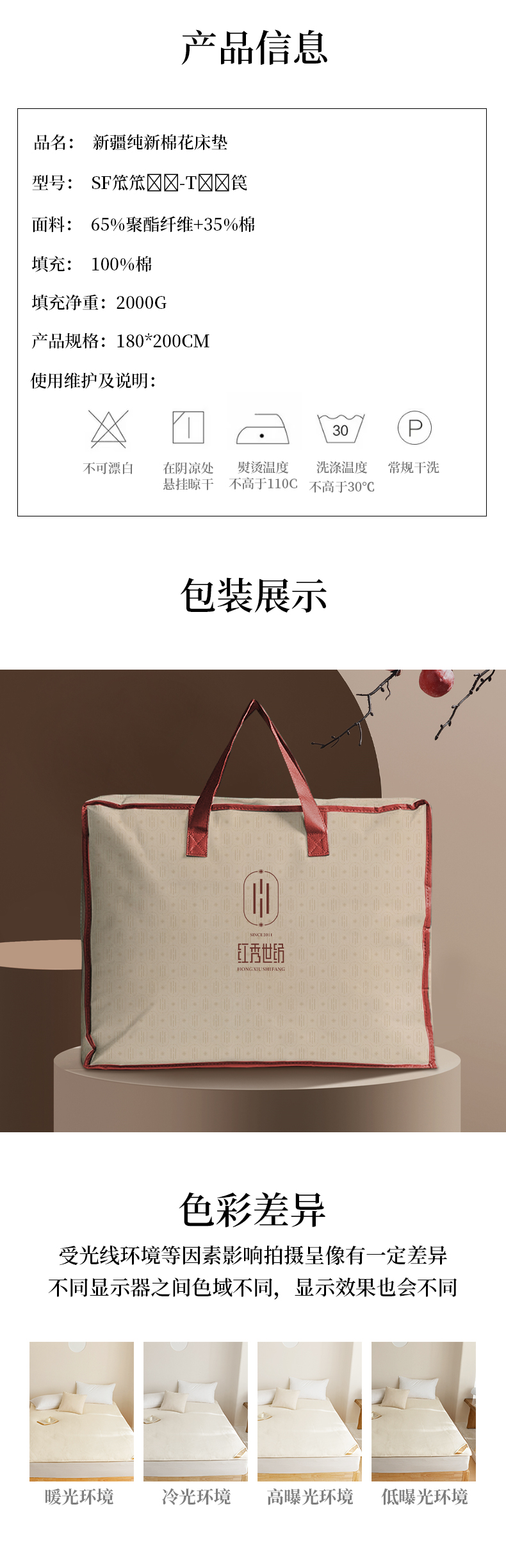 红秀世纺新疆纯新棉花床垫SF2211-T008