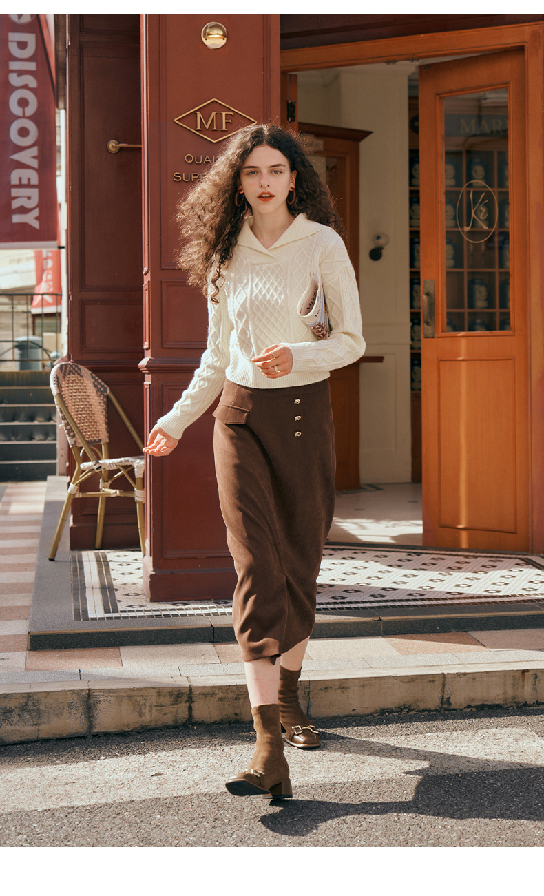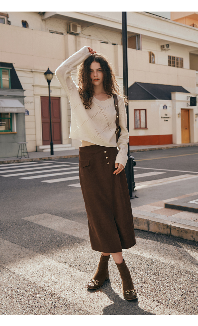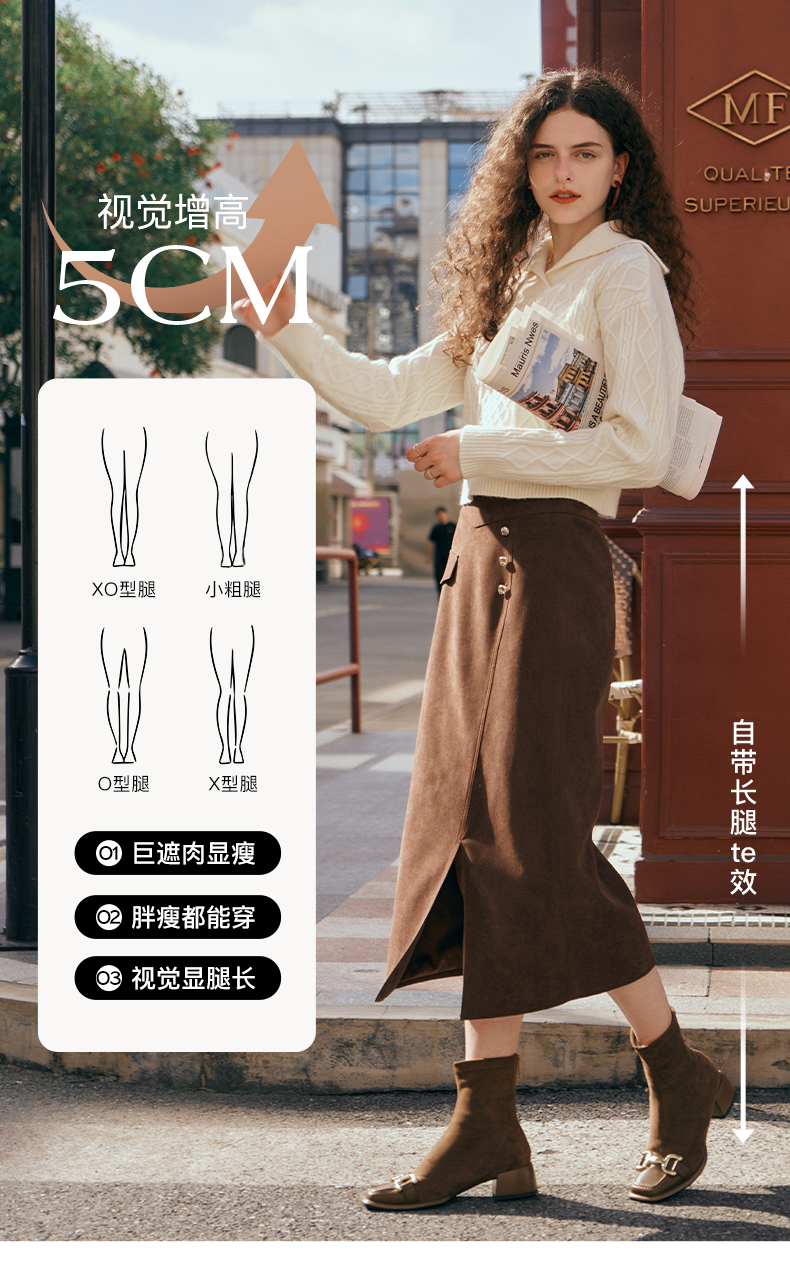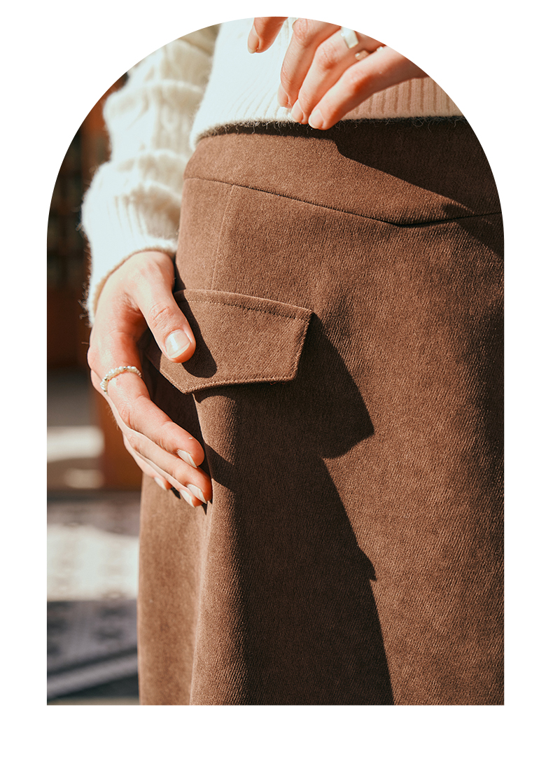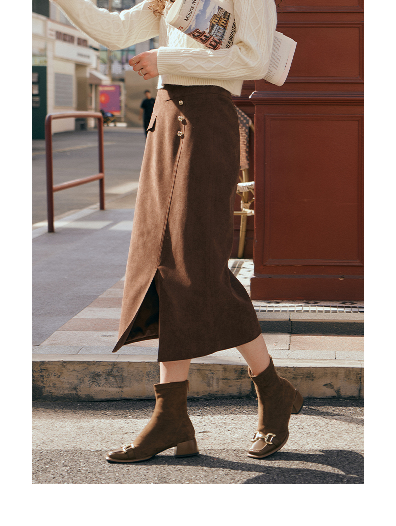 OLrain欧芮儿深咖啡色半身裙女初秋2023年新款高腰直筒百搭中长裙