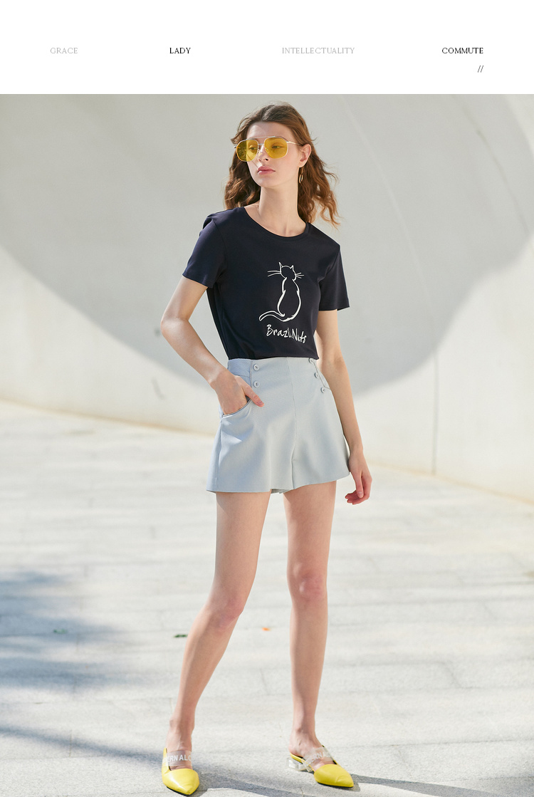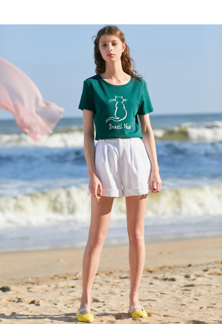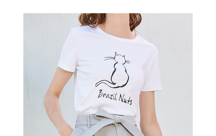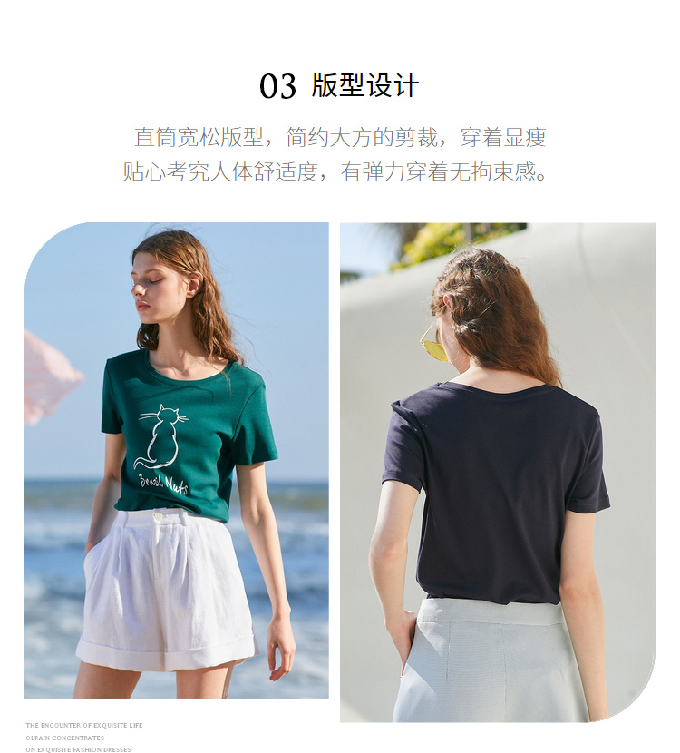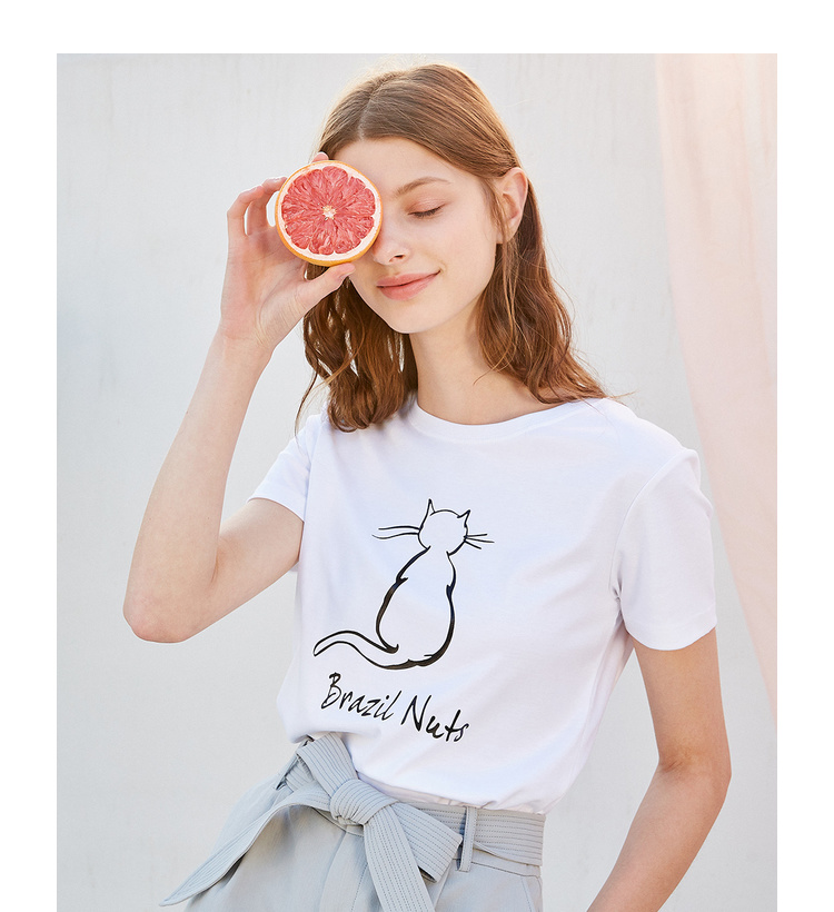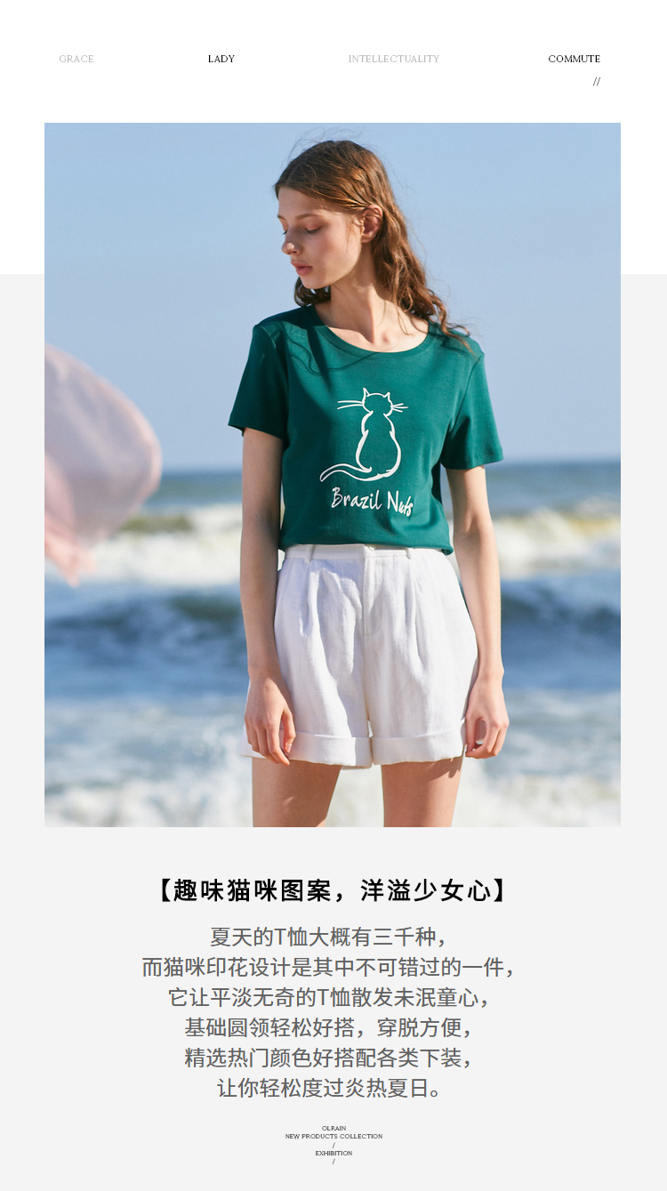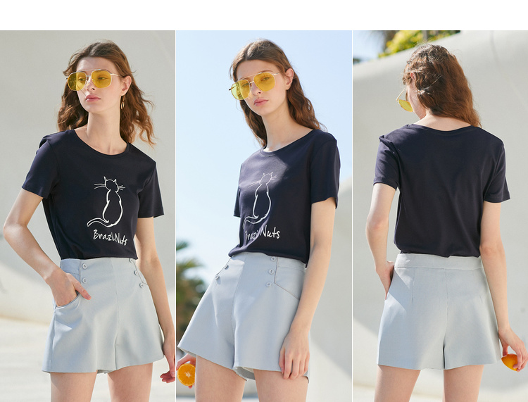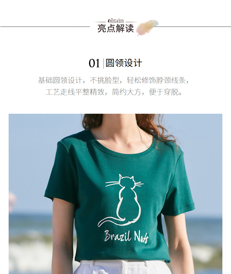 欧芮儿2021新款女装夏装黑色T恤女宽松猫咪字母印花短袖t恤女上衣