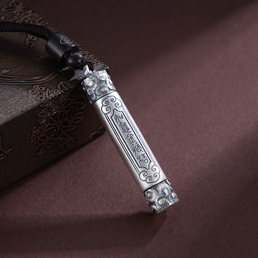 【寓意】:作品以金箍棒为灵感设计,通过仿古与抛光工艺,吊坠呈现出明暗交替的质感。整体充满力量感,寓意智慧与勇气。