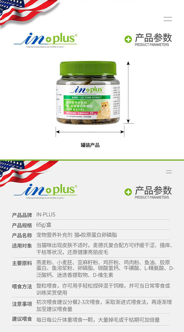 麦德氏猫用护毛卵磷脂宠物猫咪美毛掉毛胶原蛋白软磷脂亮毛50g