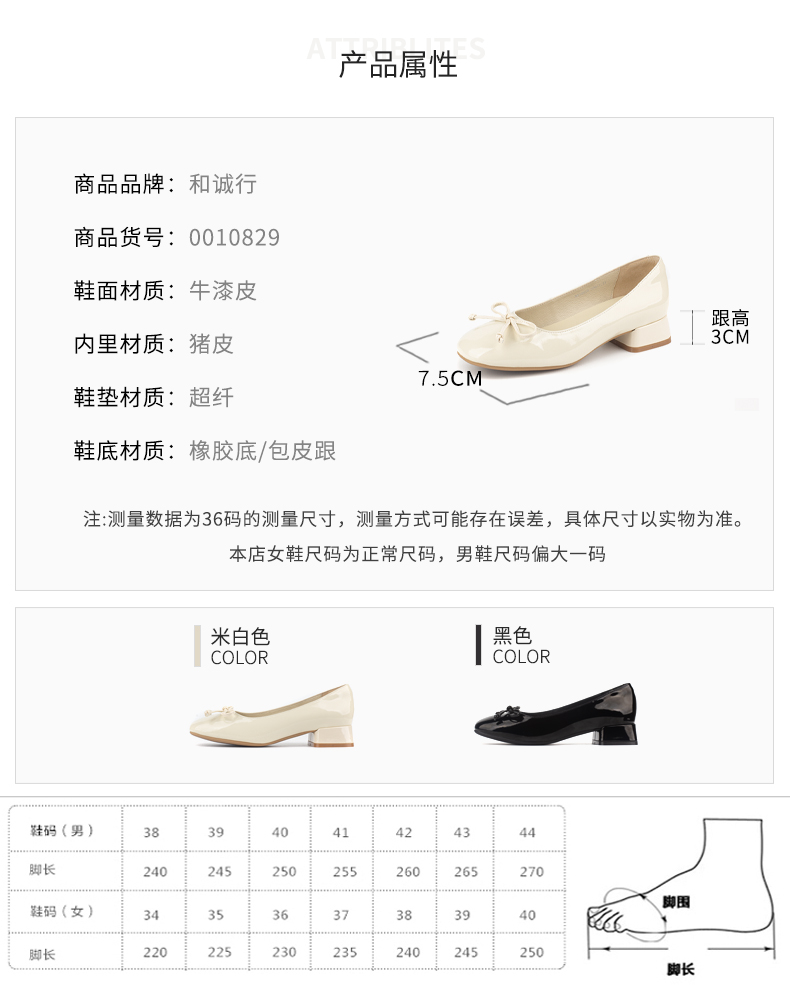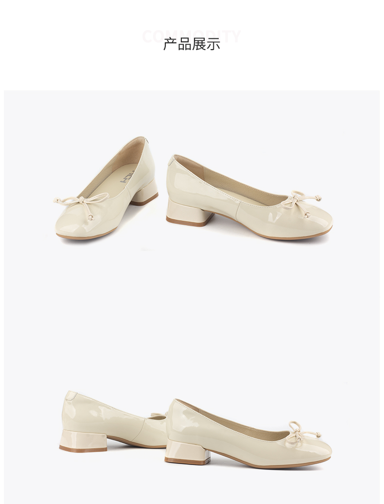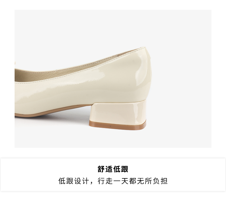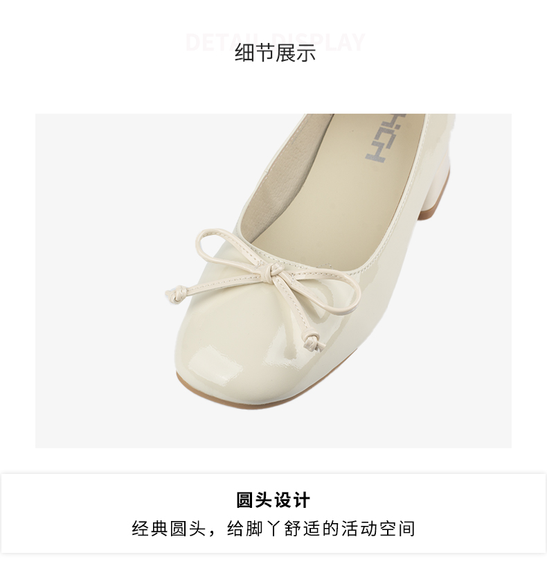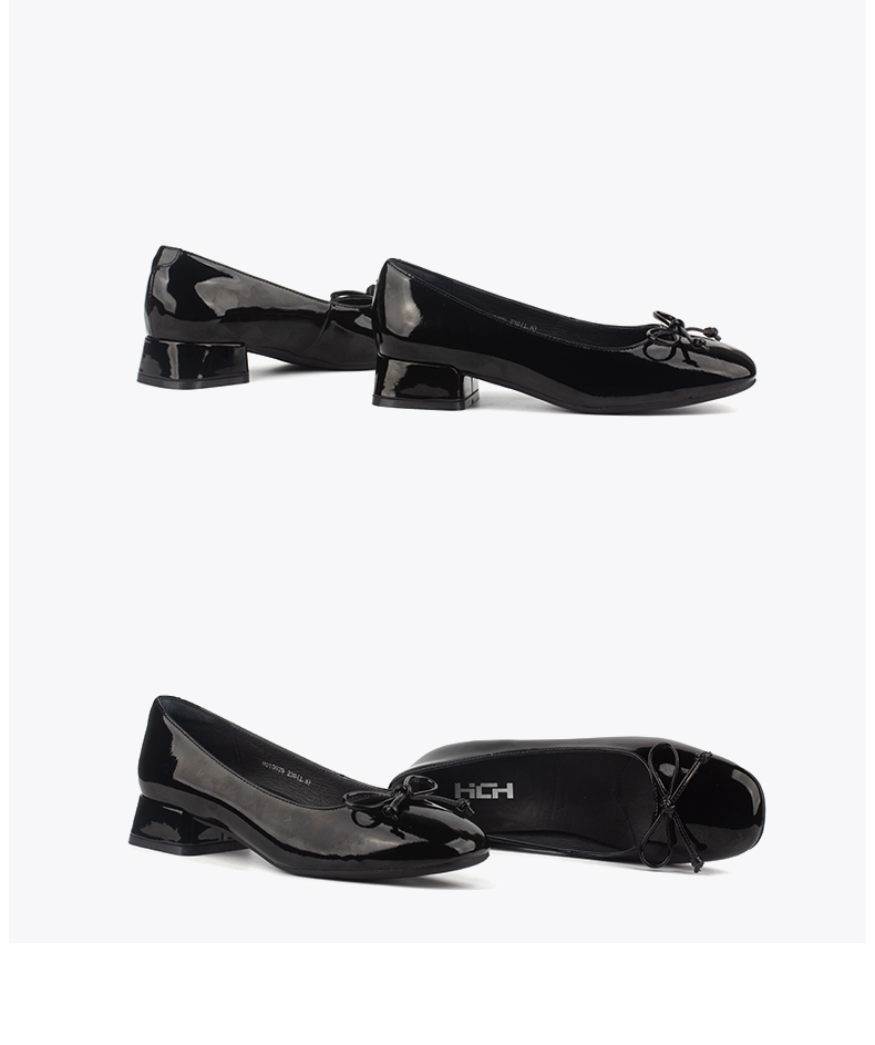 和诚行 2024秋冬新款漆皮蝴蝶结温柔气质女鞋低跟浅口单鞋0010829