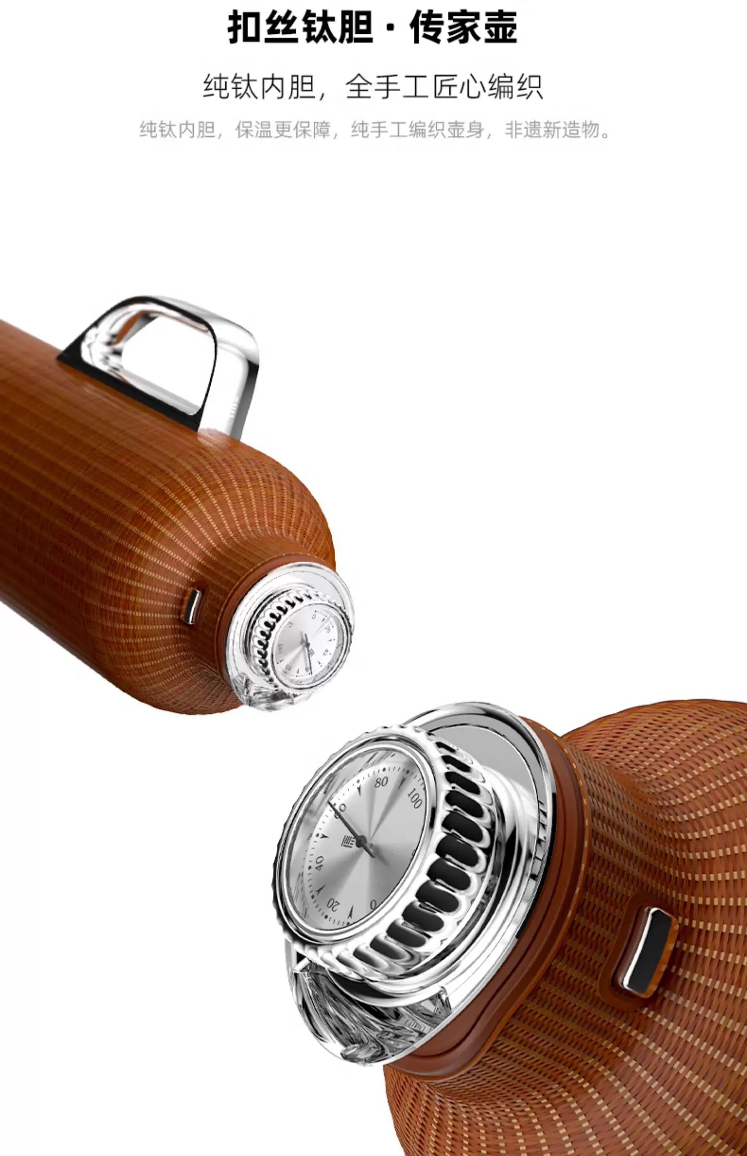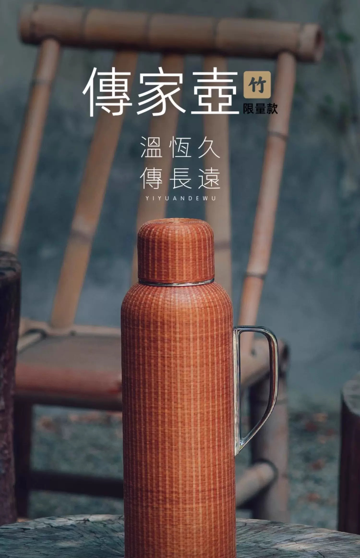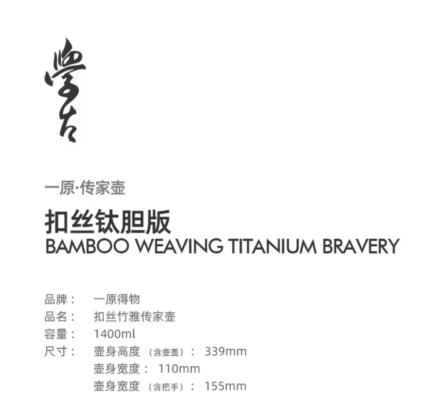学古|一原传家壶竹雅 非遗扣丝竹编纯钛限量收藏保温壶真皮袋1.4L