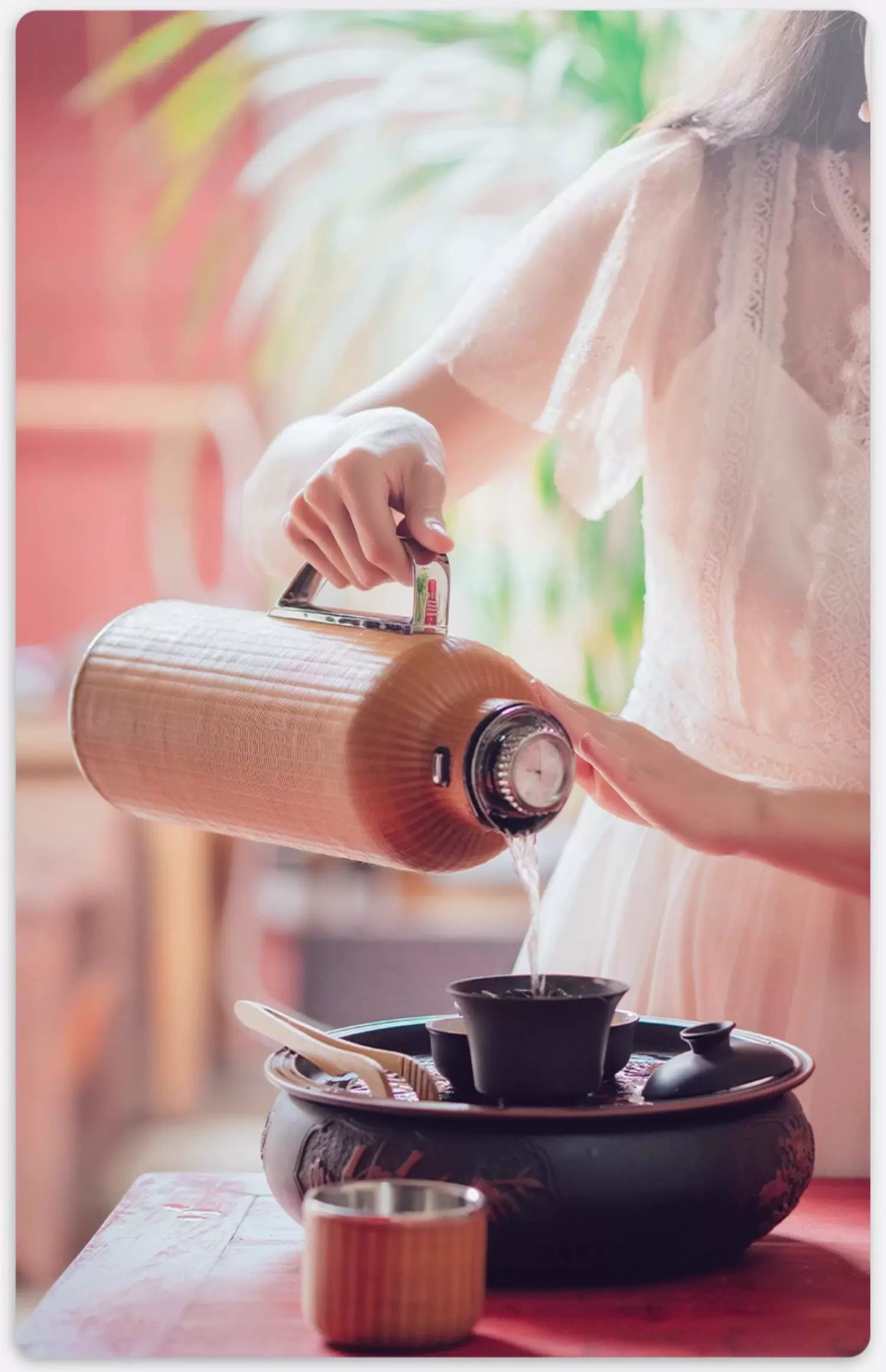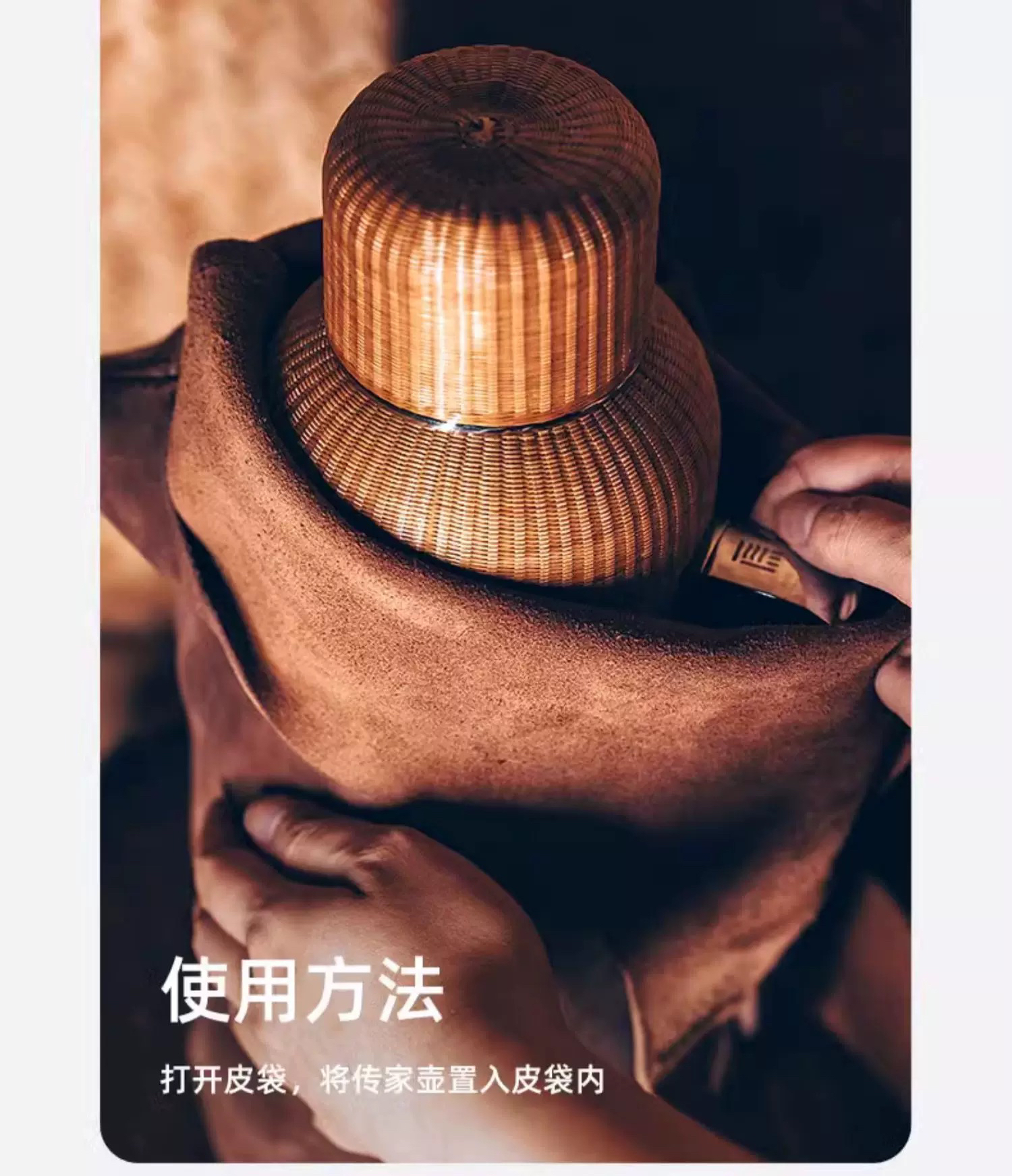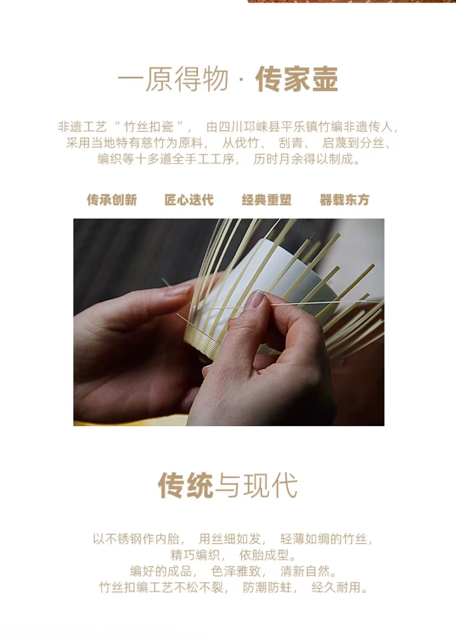 学古|一原传家壶竹雅 非遗扣丝竹编纯钛限量收藏保温壶真皮袋1.4L