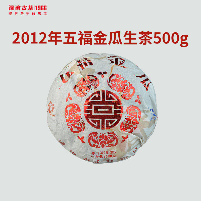 “五福金瓜” 原料选自西双版纳勐海县境内的曼弄古茶山(古时称贺开)。该茶区常年云雾缭绕,古树茶面积、茶龄与景迈古树茶相当,树冠繁茂。