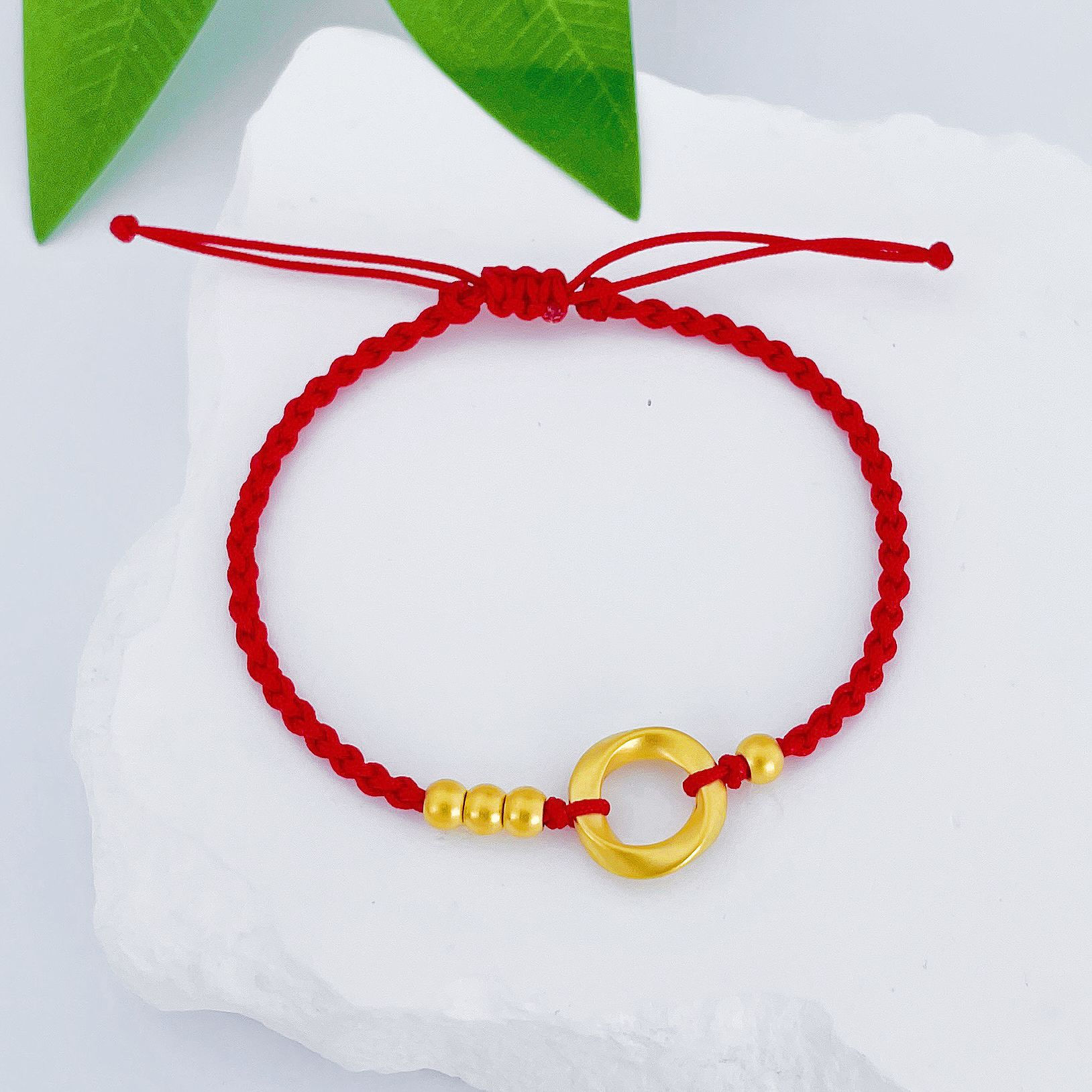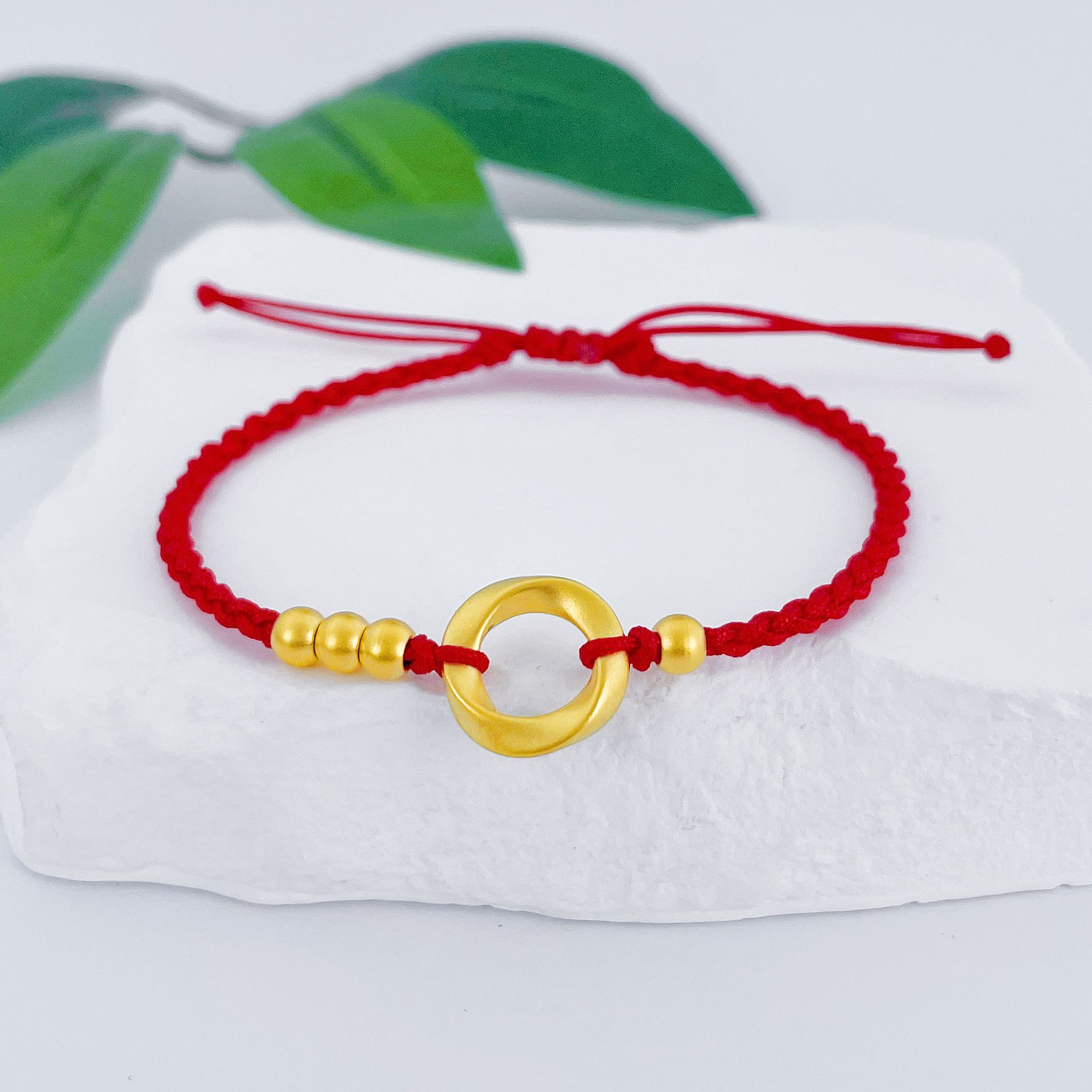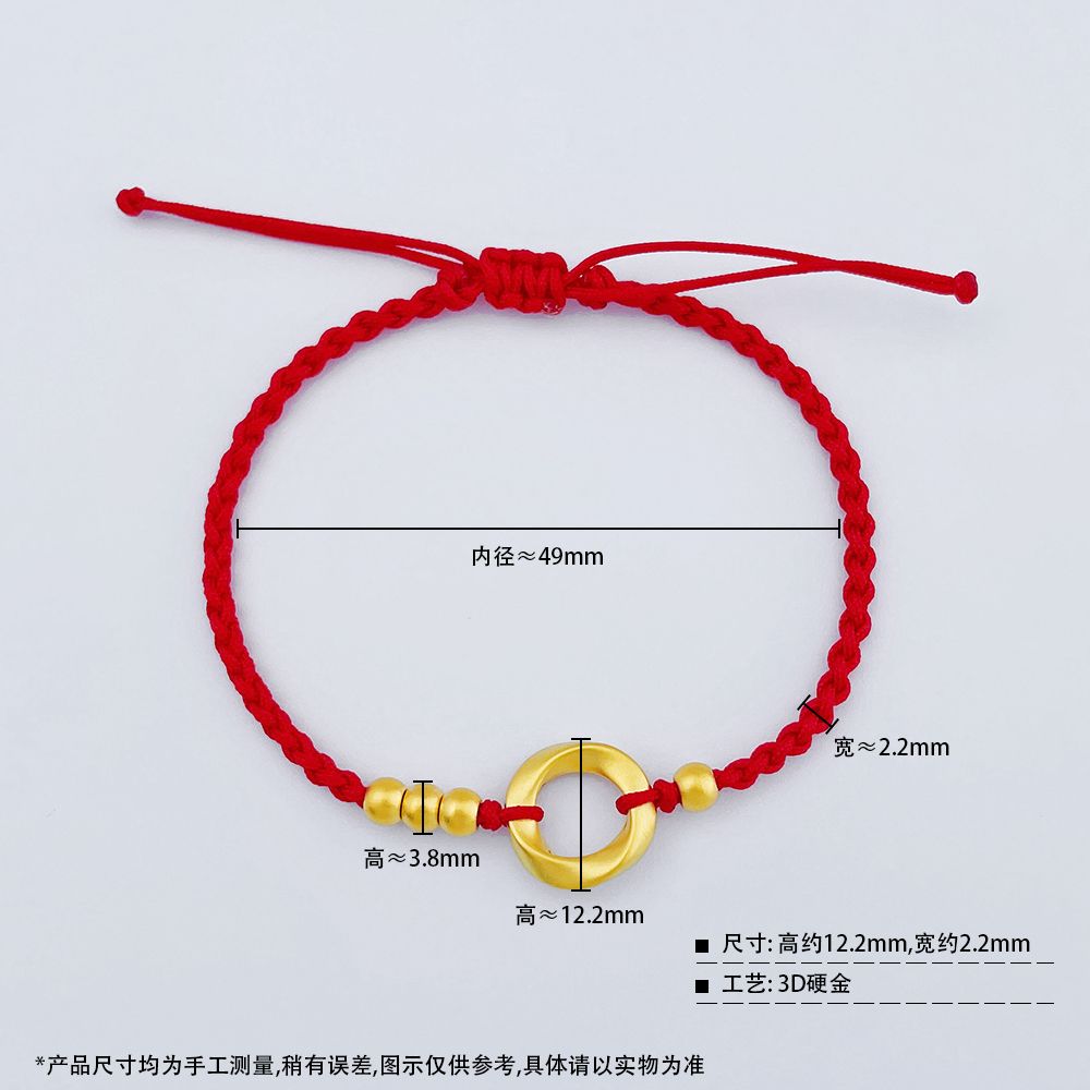 【限时7.5折】【定价黄金】足金 #莫比乌斯 #小红书 3D硬金圆珠莫比乌斯环红绳调节成品手串(AA3DSC00256-1)(预售产品下单后不退款不退货不换货不补差价)