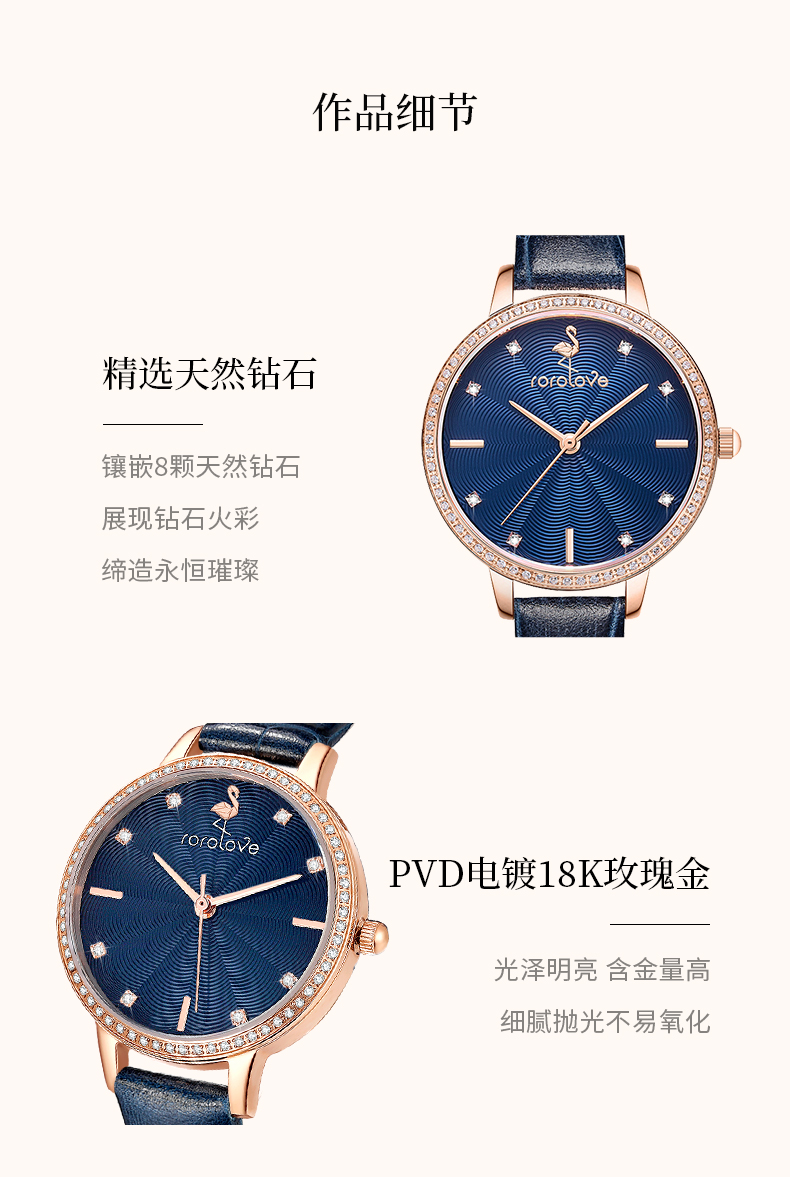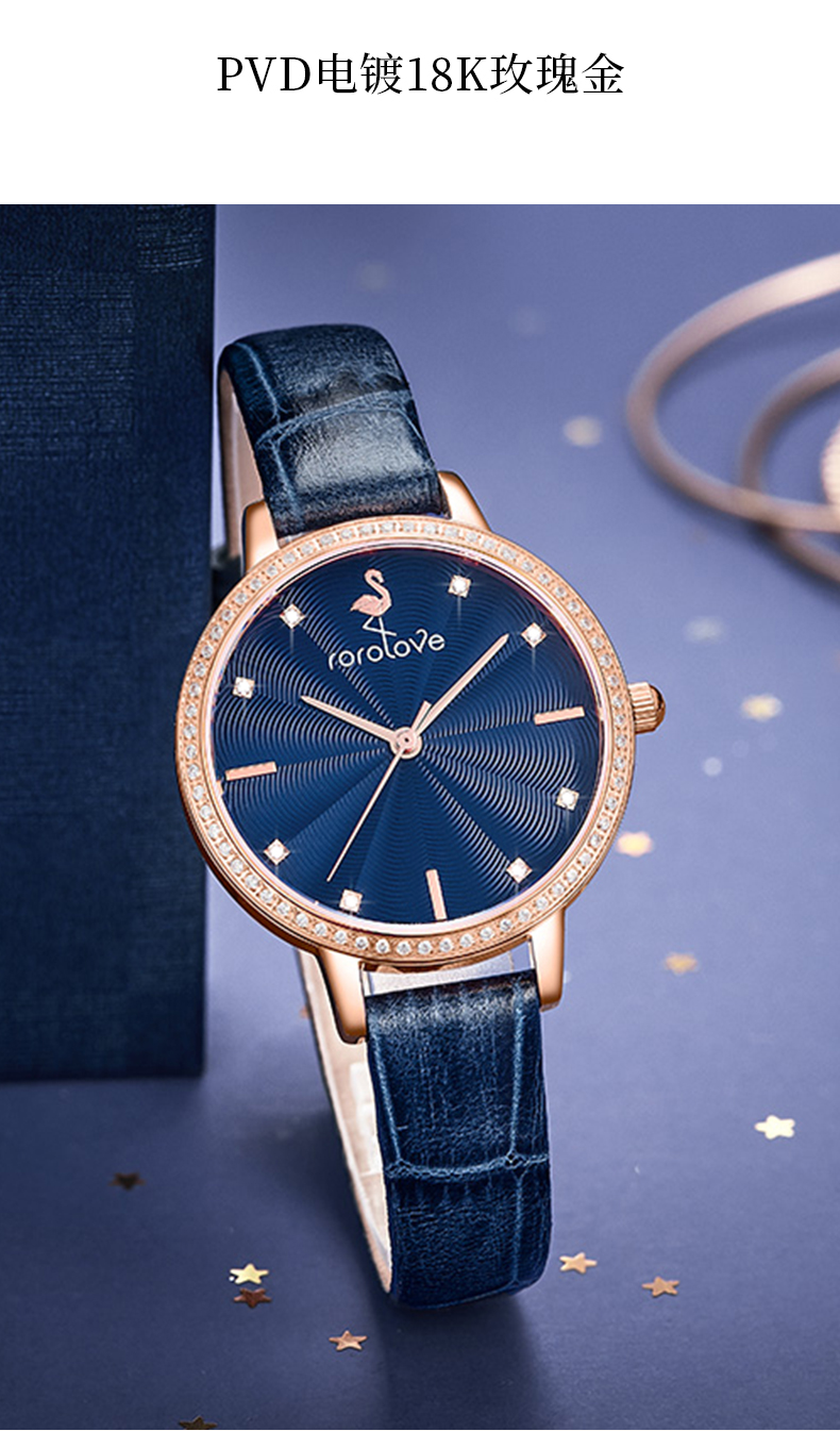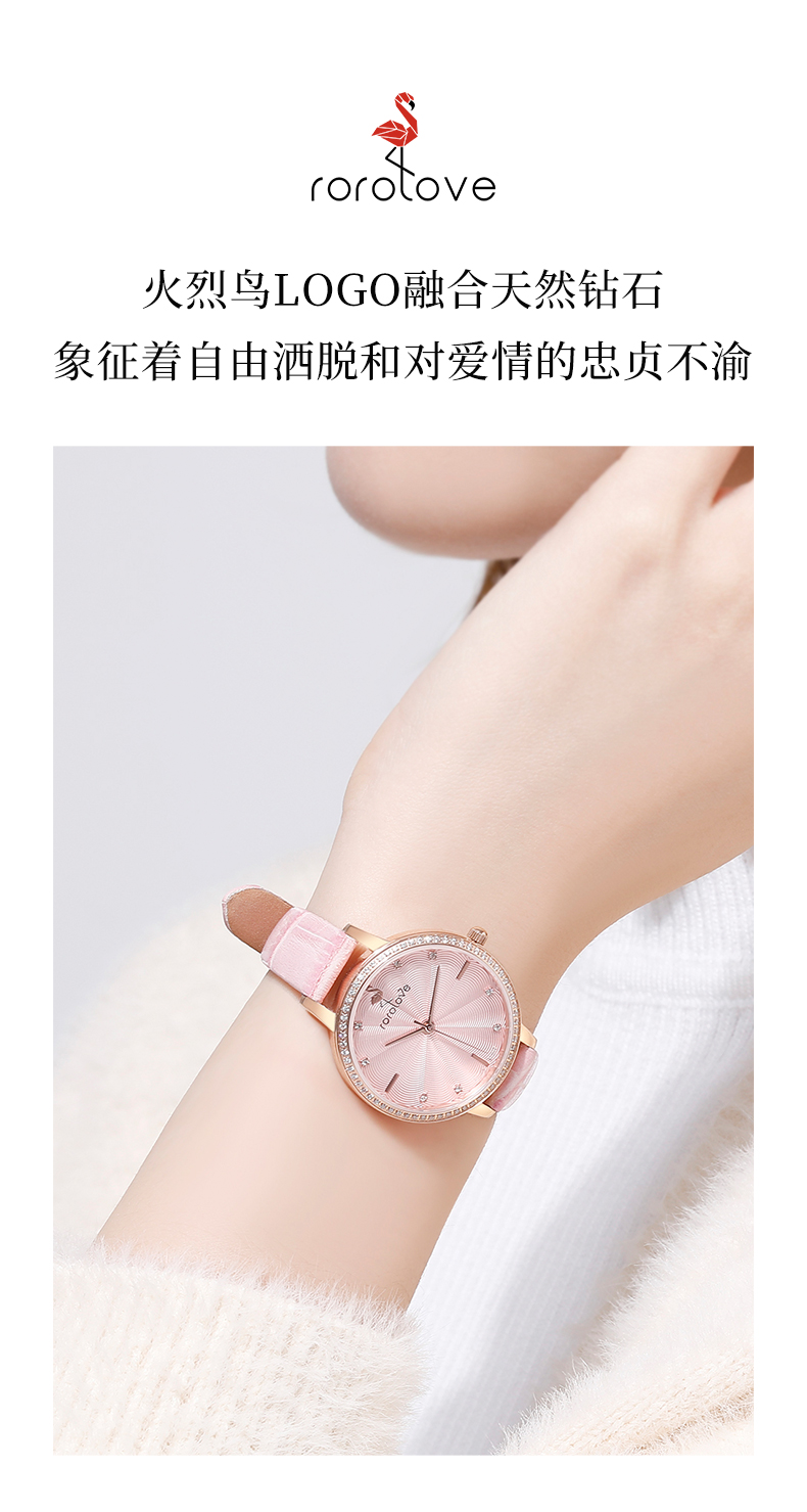 【ROROLOVE】蔷薇BabyRose系列 天然钻石腕表钻石手表女简约ins风女表腕表送礼物(8颗天然钻石、外圈为锆石)