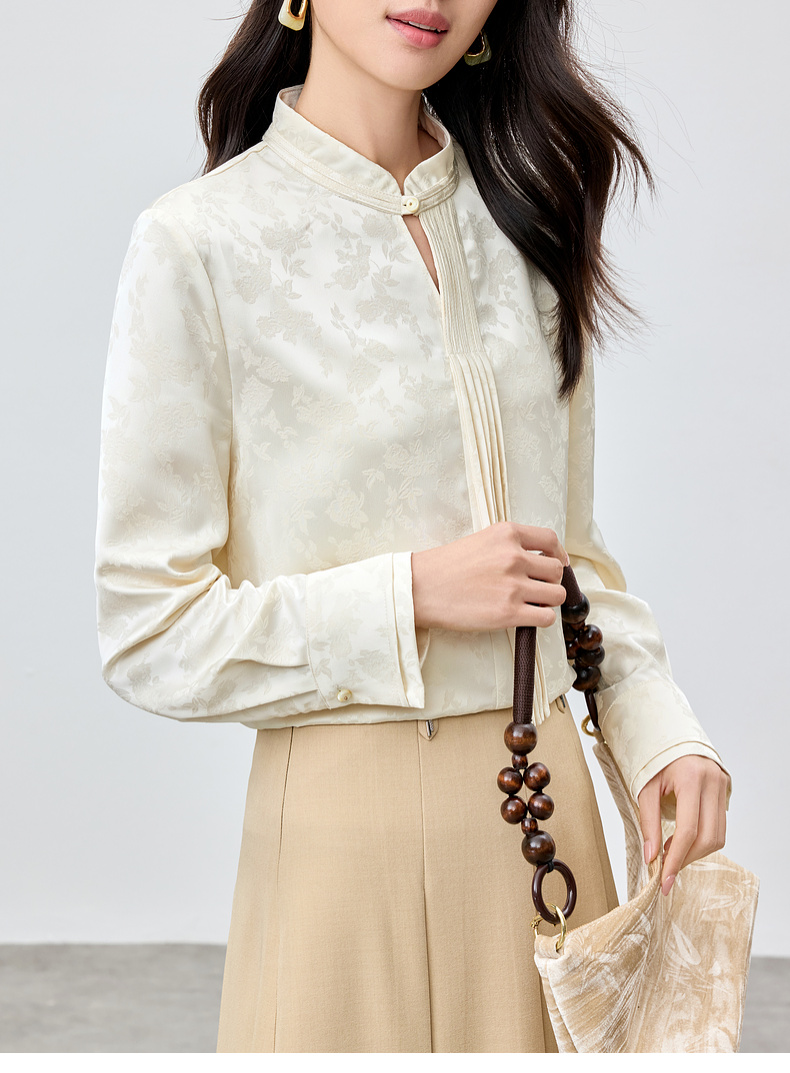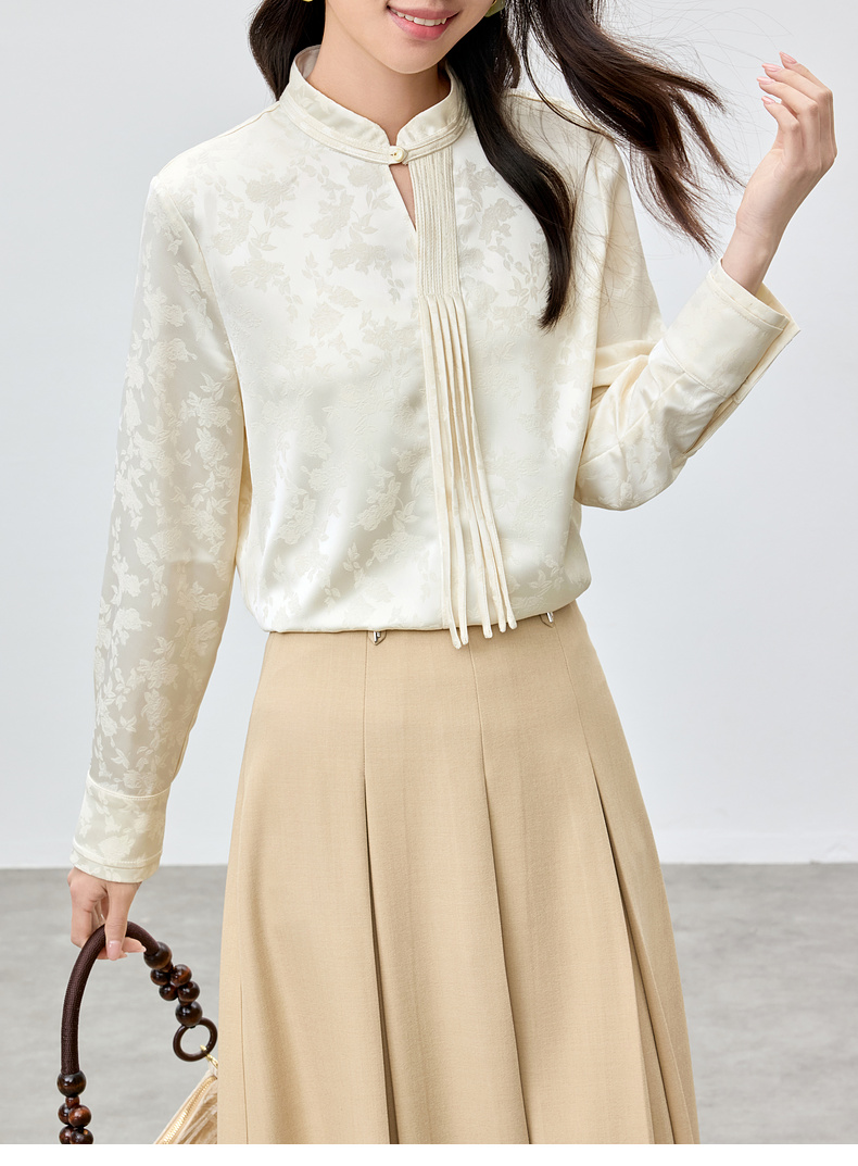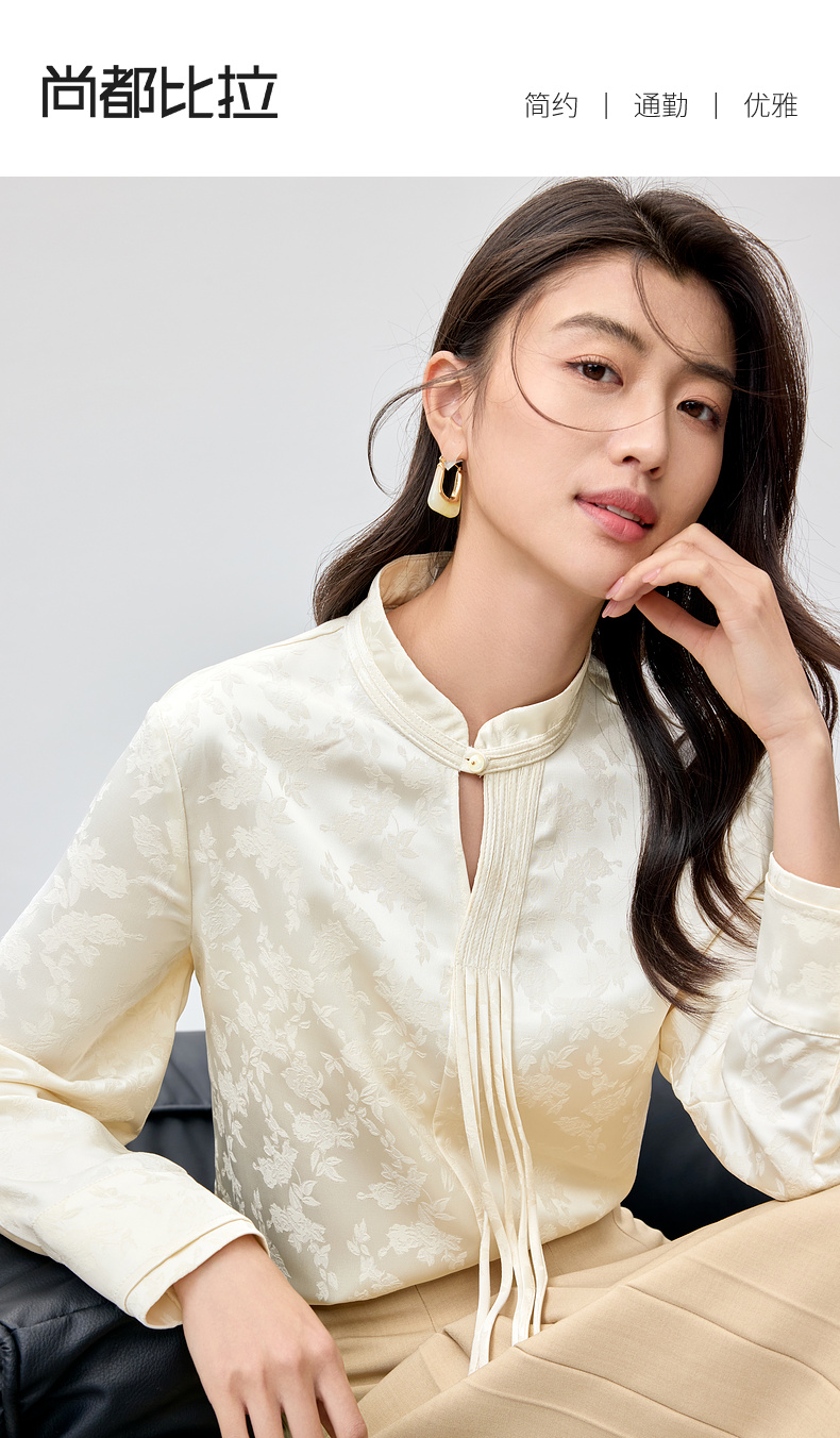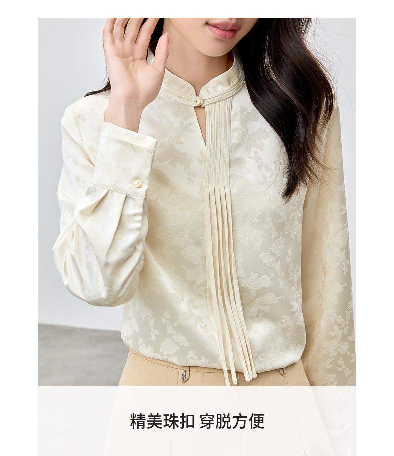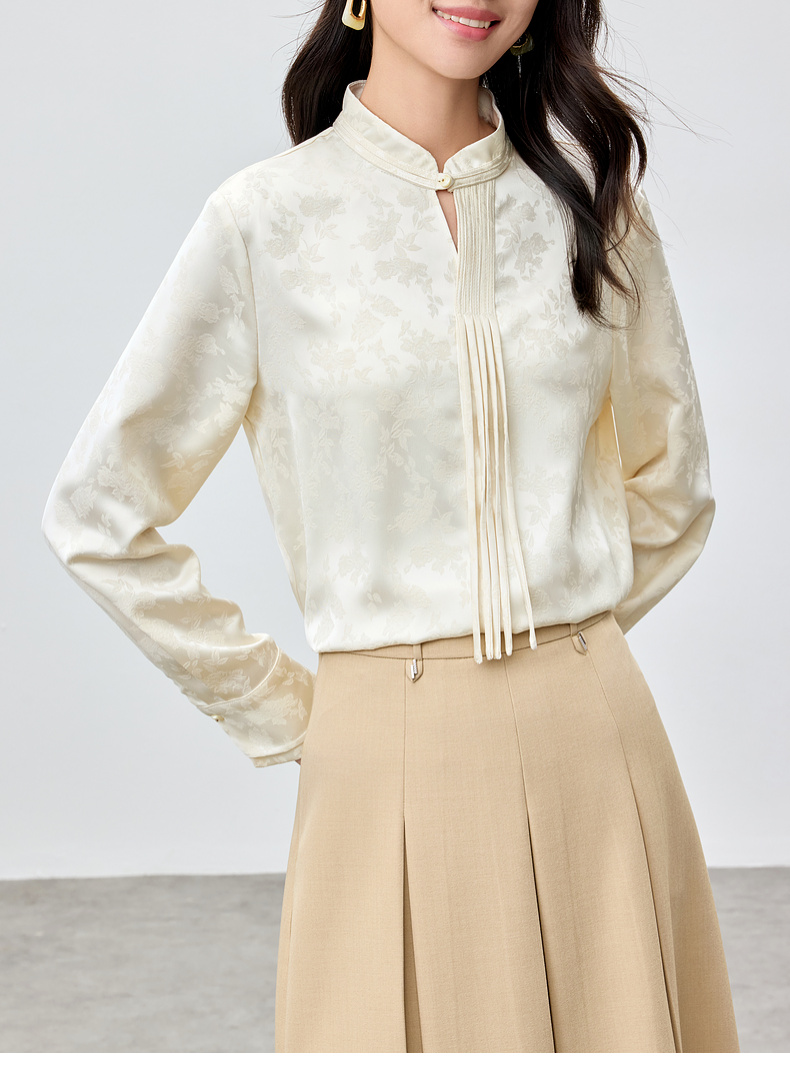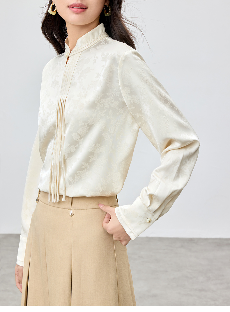 【内购】【东方韵】优雅通勤气质立领捆条流苏系珠扣长袖改良国风衬衫-151C80101X
