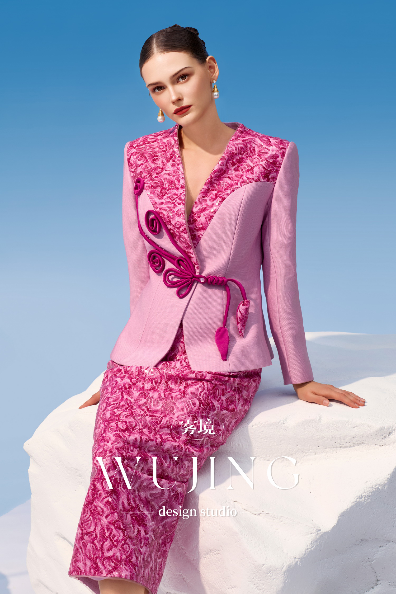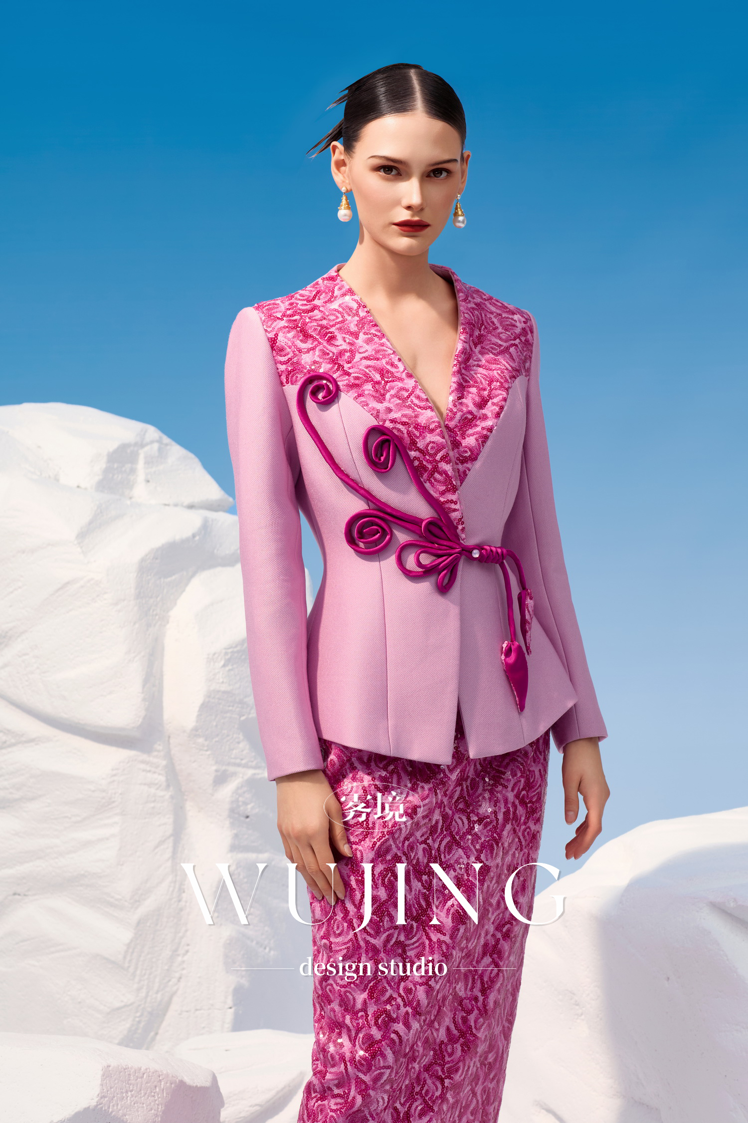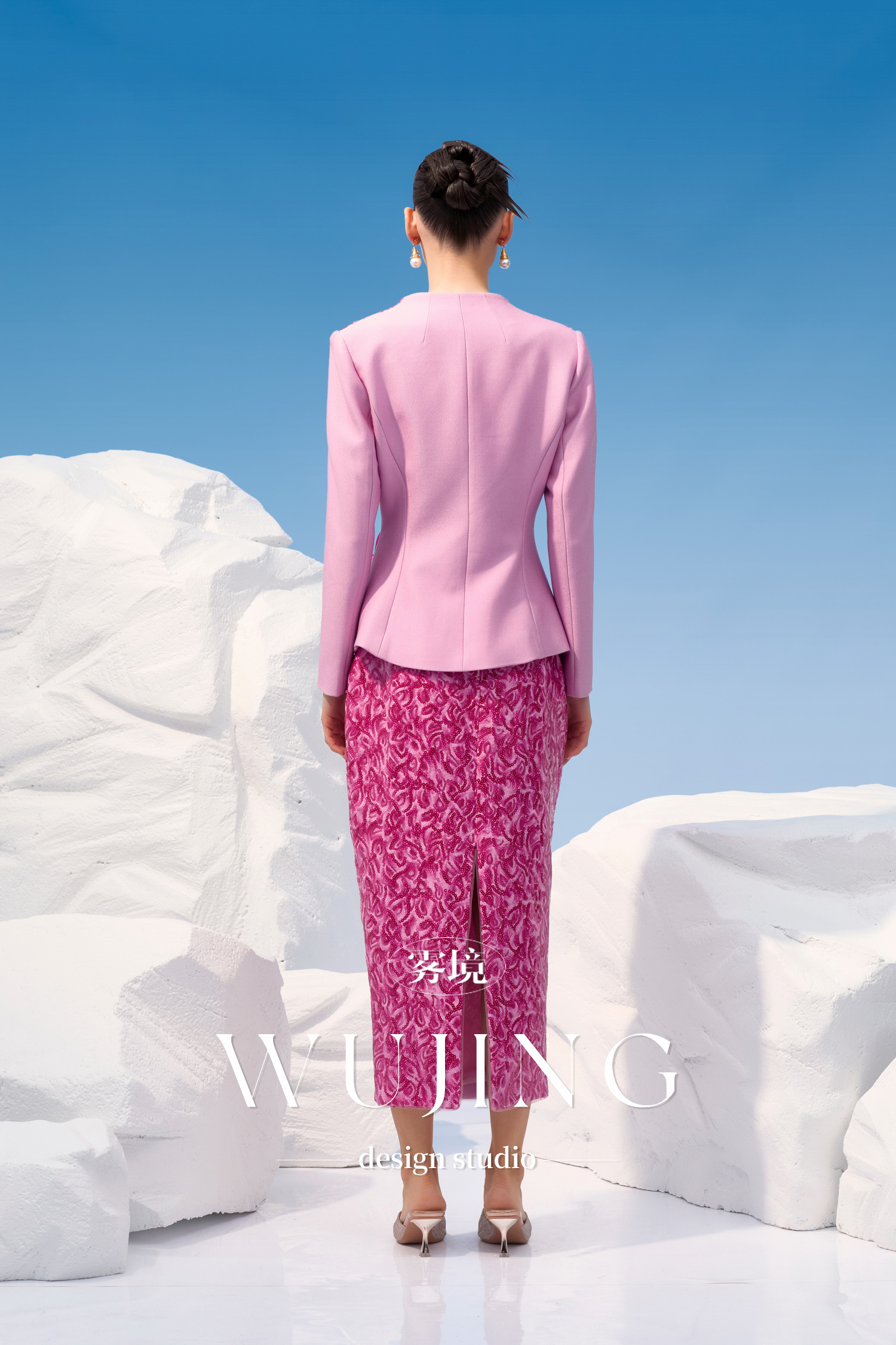 4202046 烟花粉黛 高级亮丝斜纹 进口双色亮片外套 雾境
