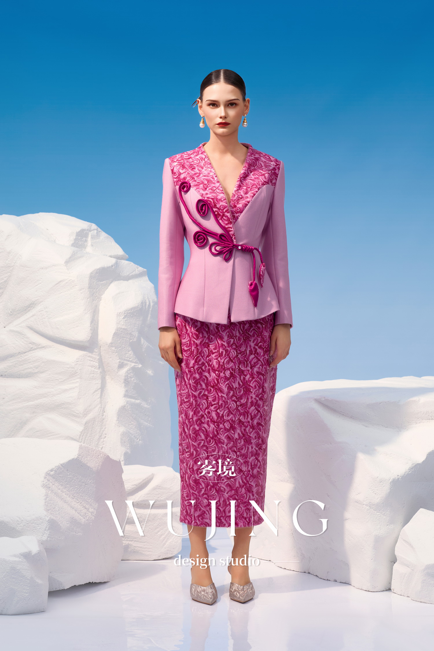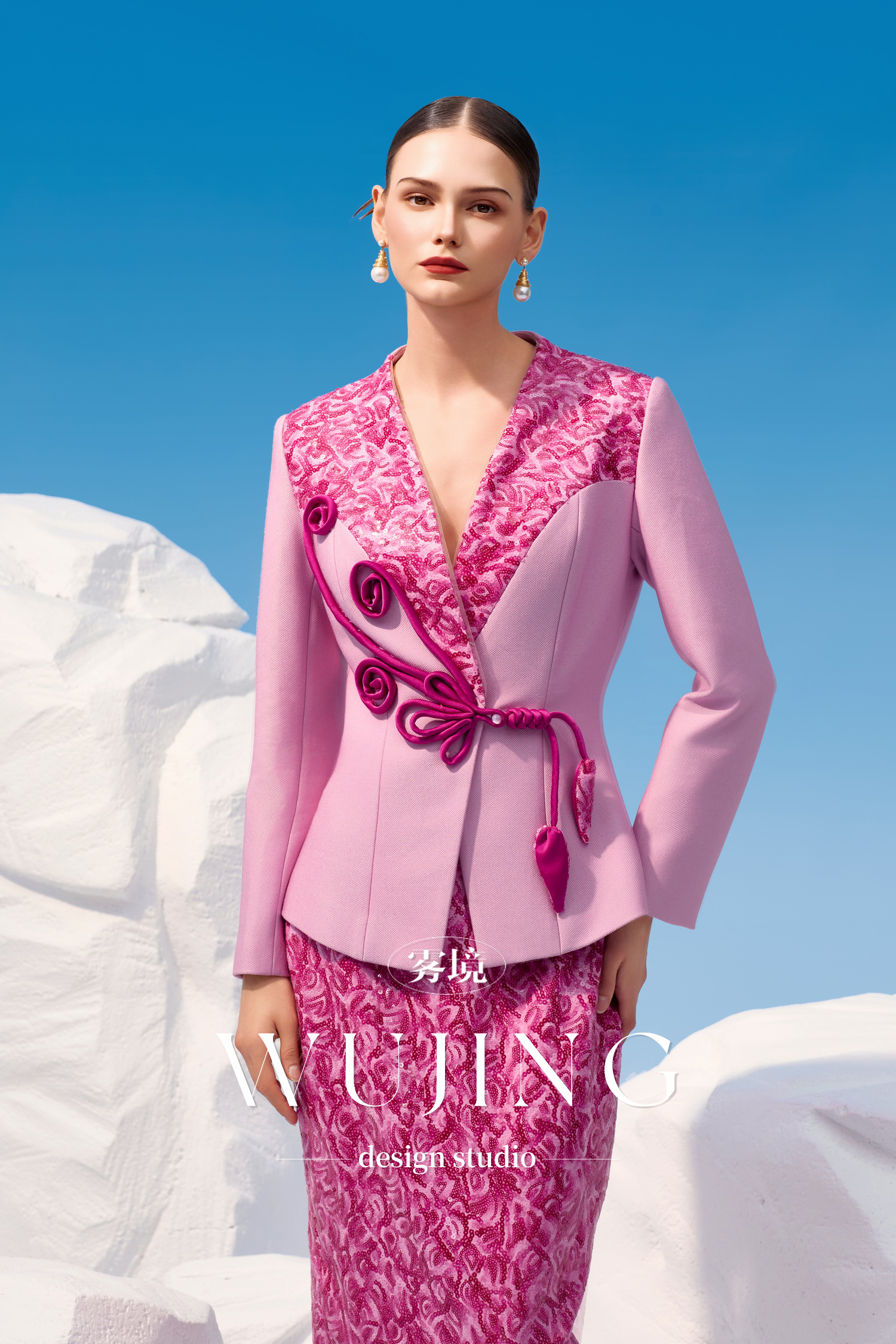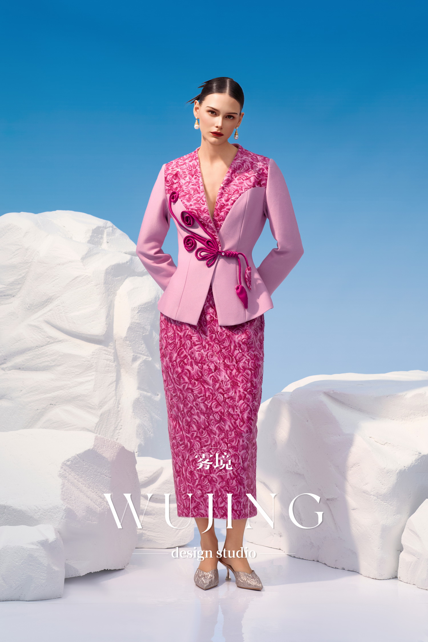 4202046 烟花粉黛 高级亮丝斜纹 进口双色亮片外套 雾境