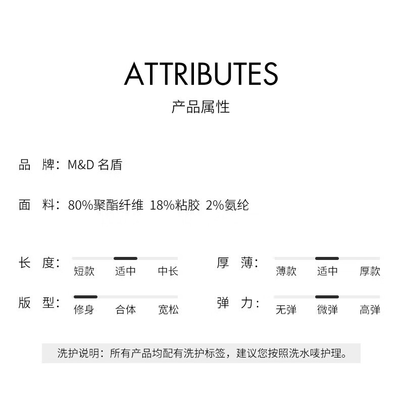 | 材质: 涤纶(聚酯纤维)80%,粘纤(粘胶纤维)18%,氨纶(聚氨酯弹性纤维)2% | 适用人群: 青年,中年 |
