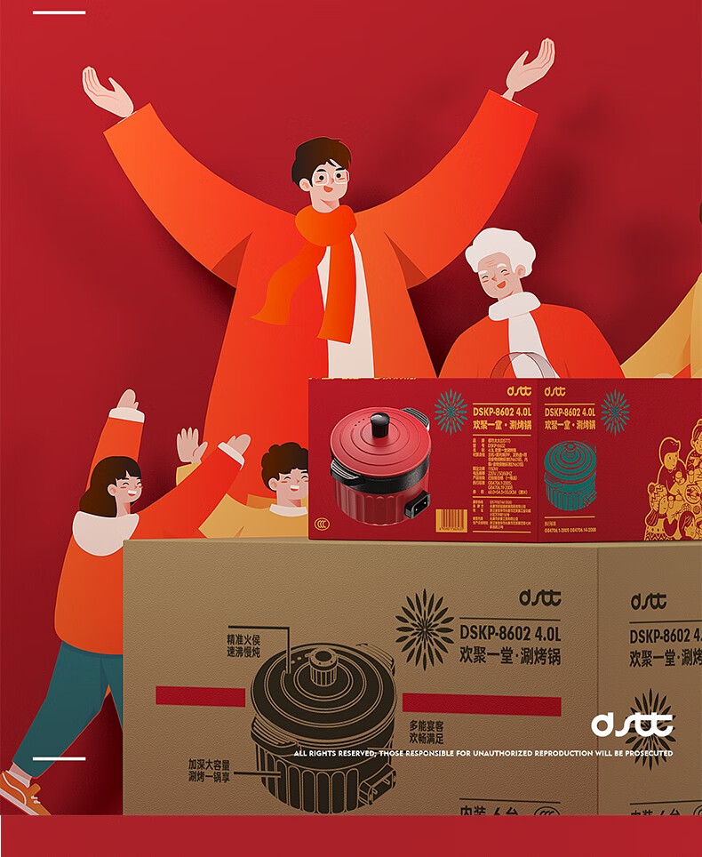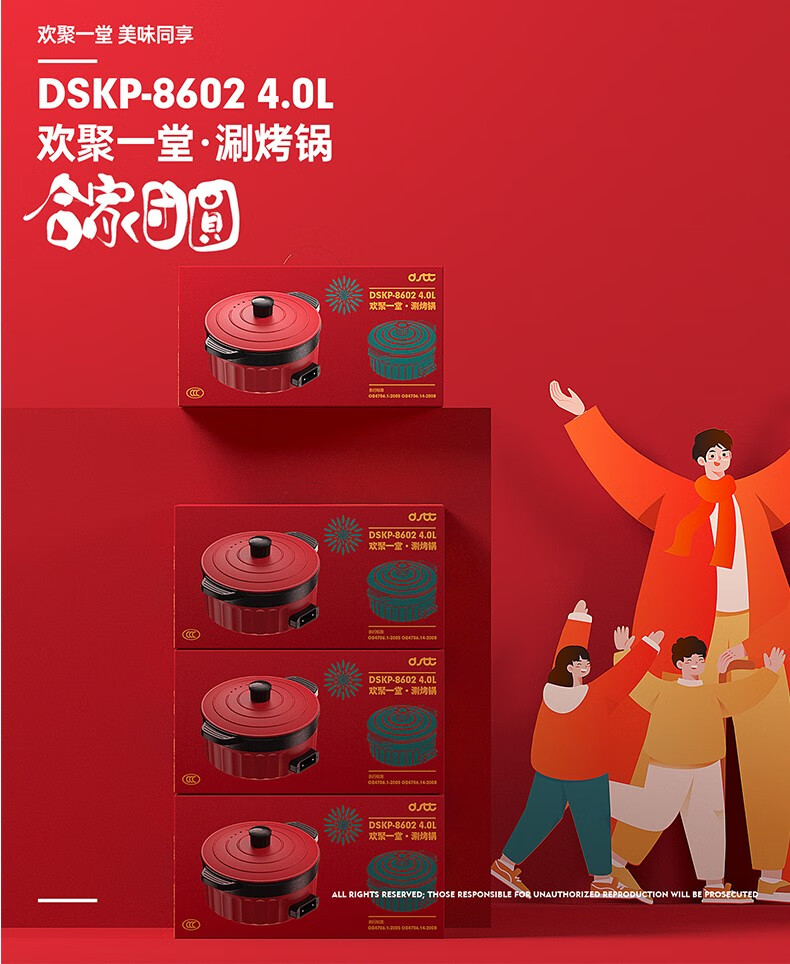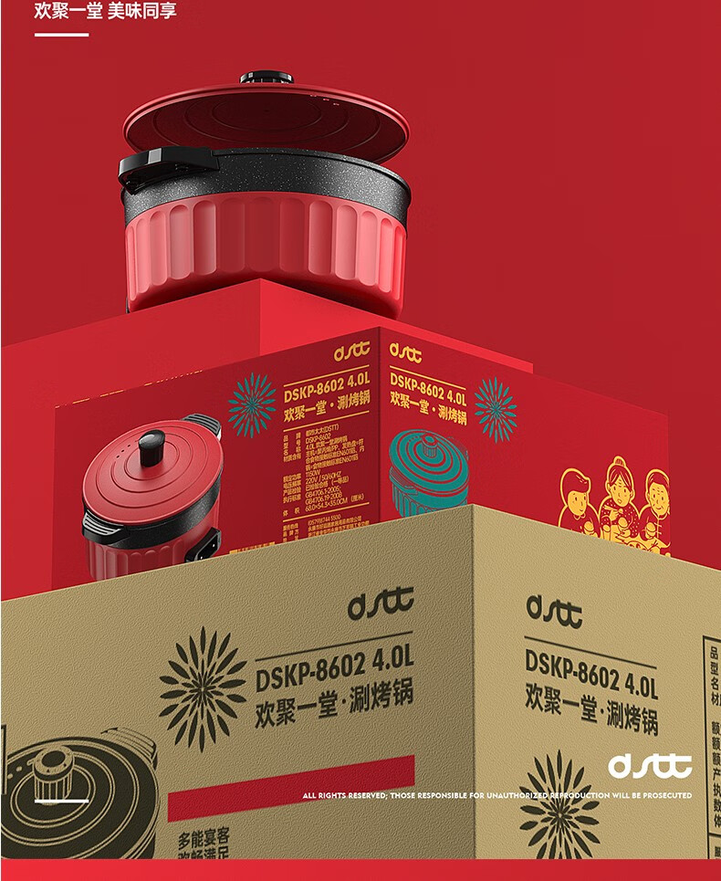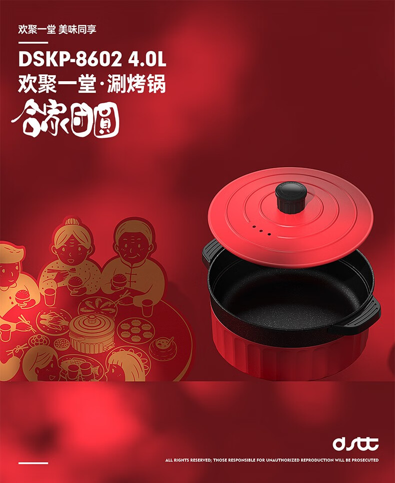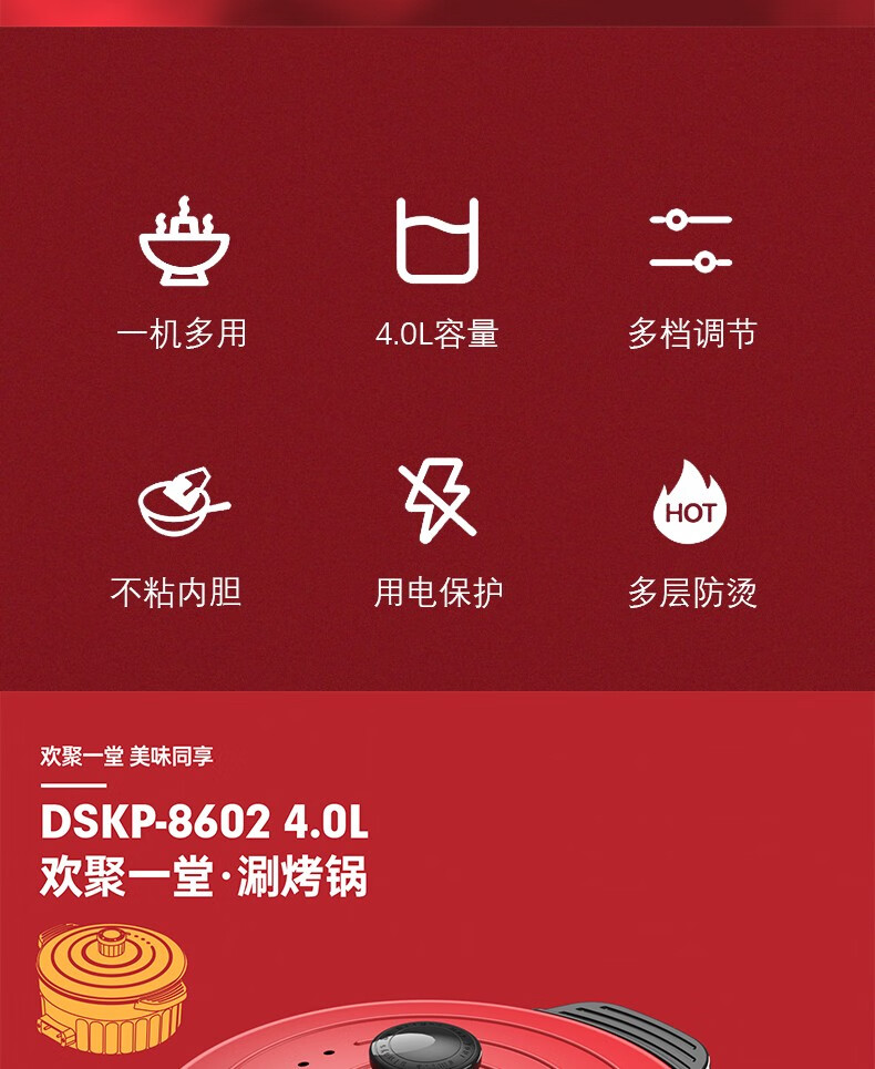 都市太太(DStt)都市太太(DStt)欢聚一堂多功能电热锅_家庭聚会烤涮_红色_深型