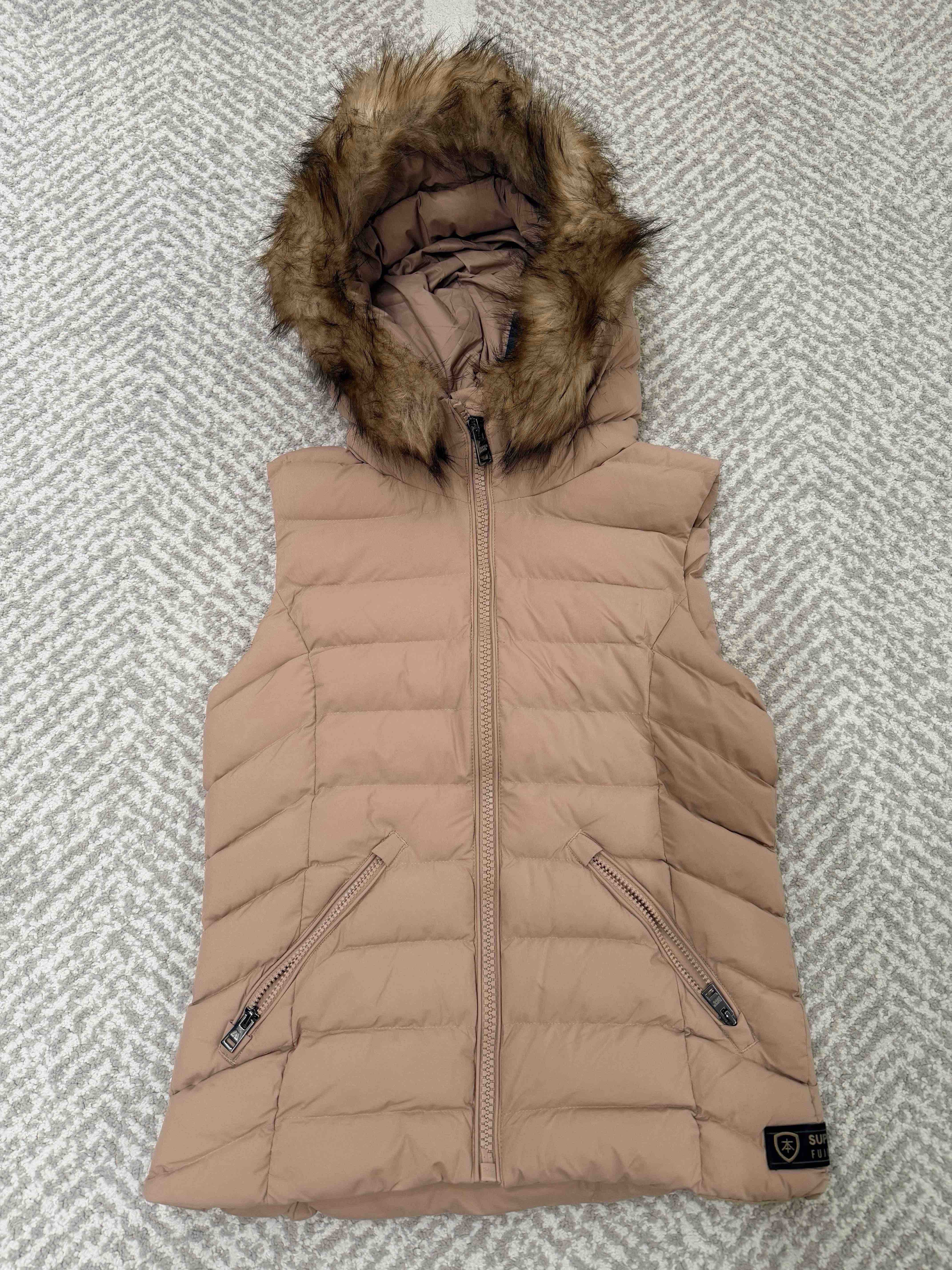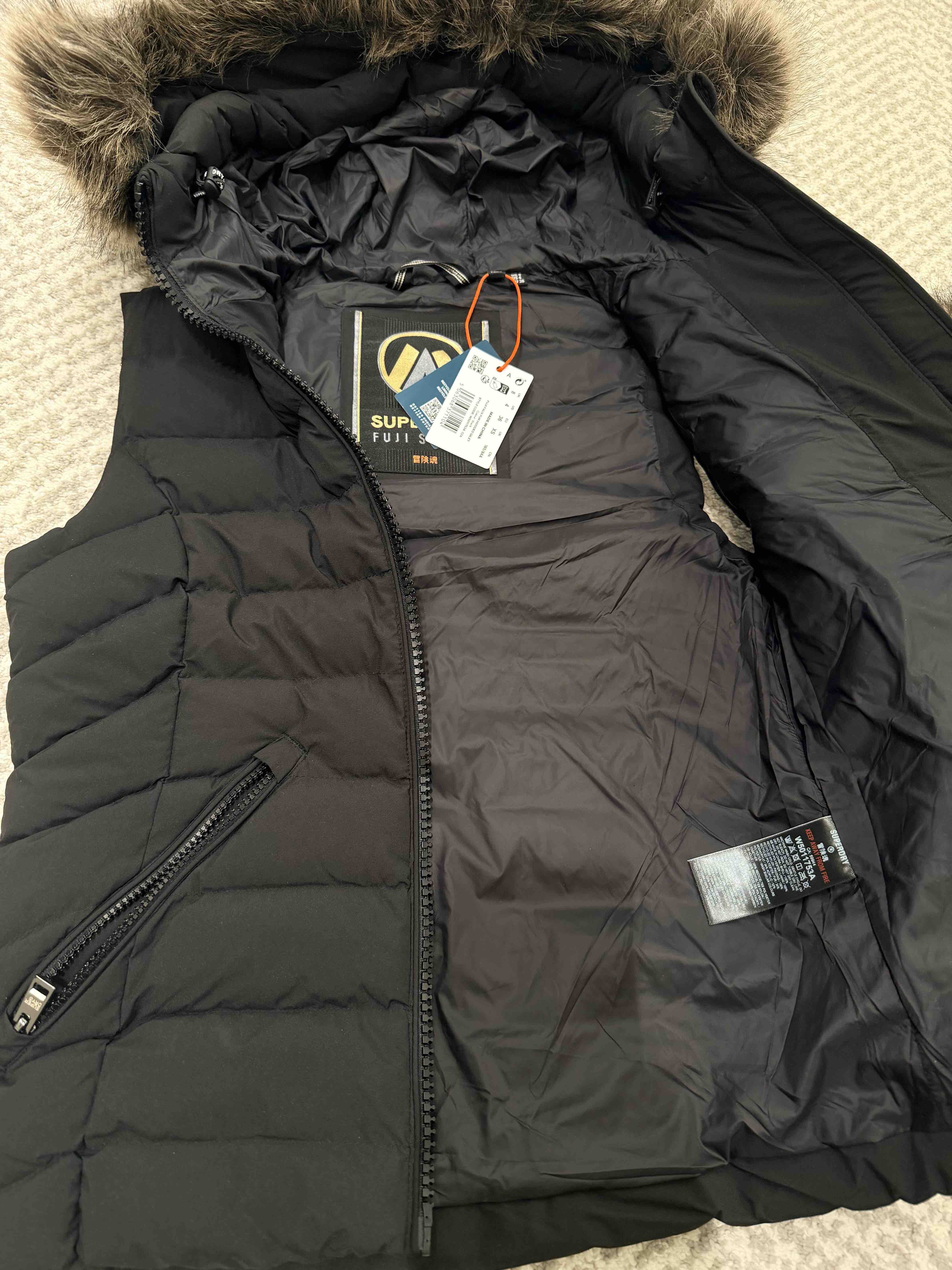 2025最新款,富士系列连帽马甲。正价119欧,国内也得1000块钱了。棉马甲带帽子的已经比较少见了,帽子还带毛领更小众,谁也不会原价买来体验下。我们这个价格那还不是随便体验!这是真的很好看,真的超显瘦,真的太香了!