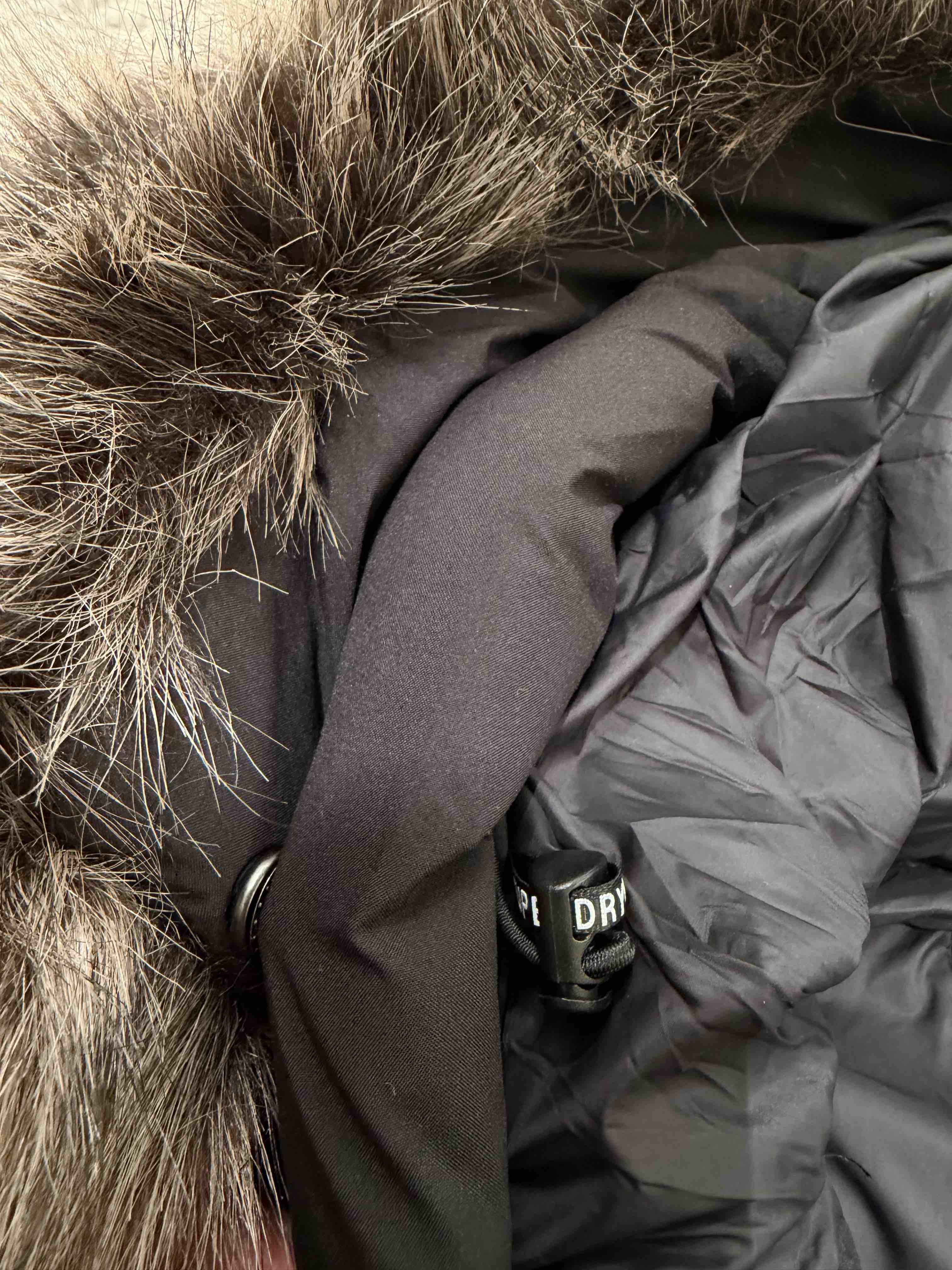 可拆卸人造毛领,领子可收紧。主洗标齐全,带吊牌,自用送家人都是极好的。