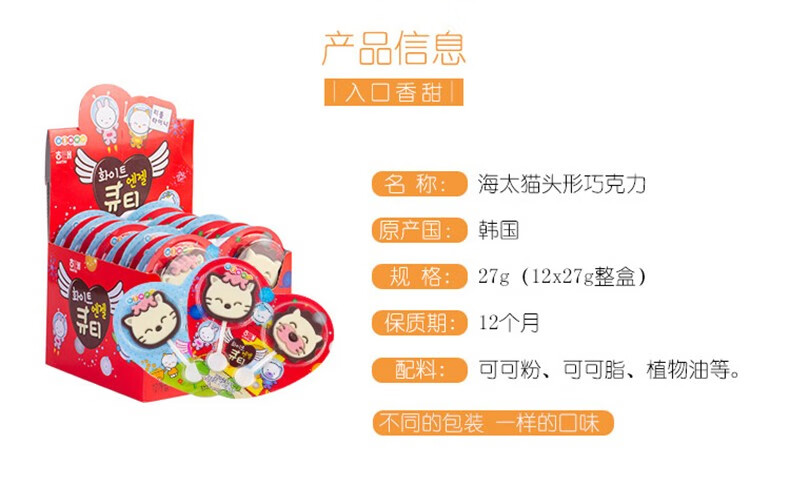 海太猫咪巧克力制品27g/040900 可爱猫咪头和狮子头造型童趣满满
