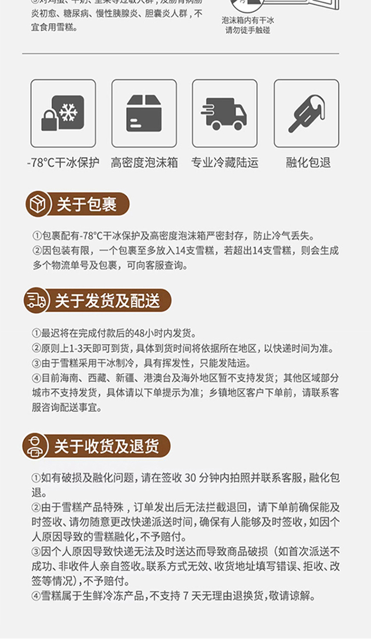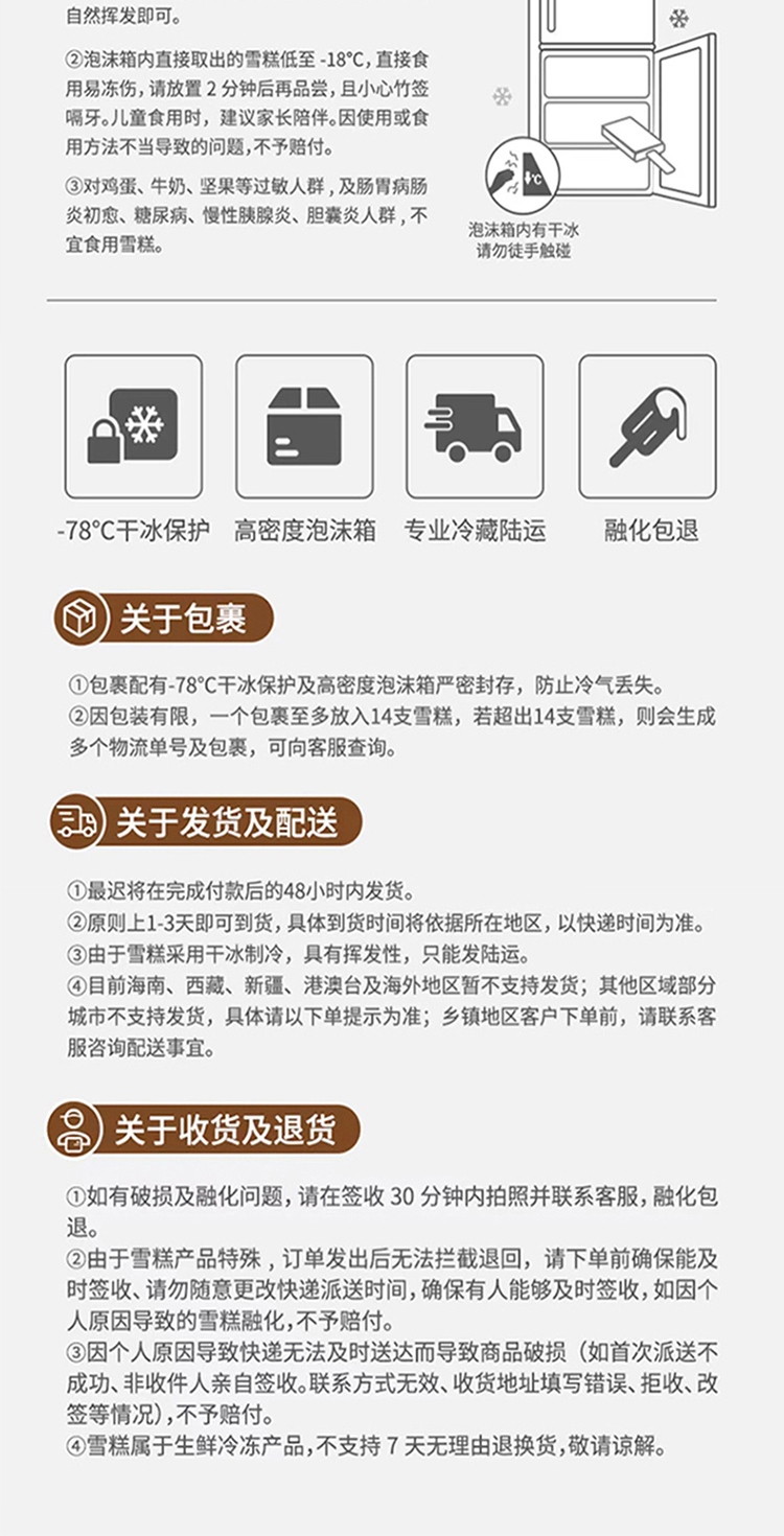 ★★此产品全程冷链运输,但由于快递、天气等原因,收到的商品如有轻微软化属于正常现象,立即放冰箱冷冻即可,不售后不赔付哦!