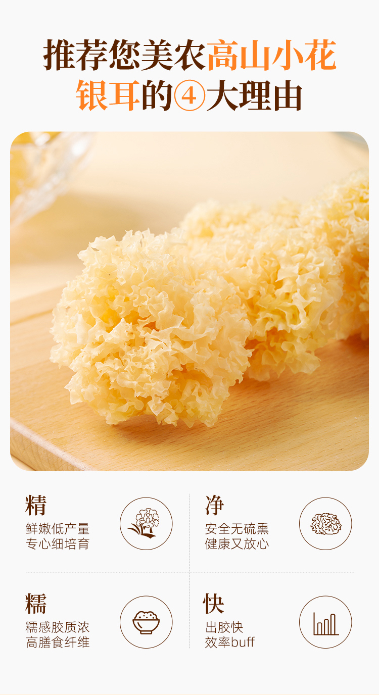 不熏硫就是不熏硫! 高山小花银耳,出胶比一般银耳羹更糯!自然的小花,会有大有小,也不算缺点。