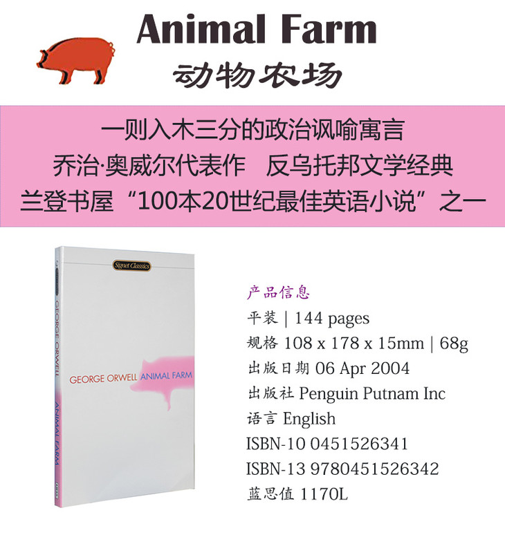 【中商原版】动物农场庄园英文原版小说 Animal Farm George Orwell 英文原版书 乔治奥威尔 1984作者 经典英文原版名著