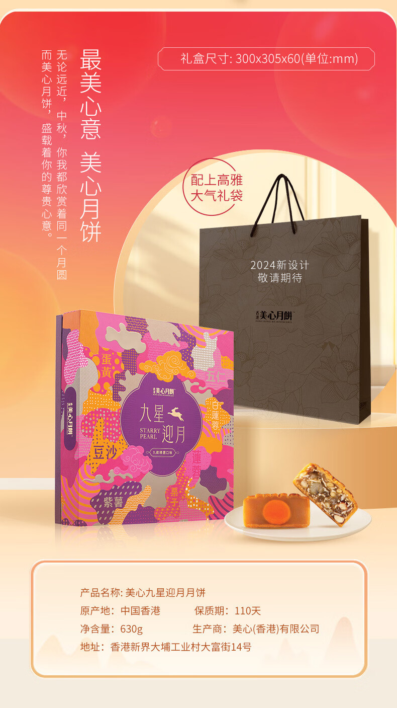 【乐享中秋】香港美心九星迎月月饼礼盒630g/070019 精选九种口味