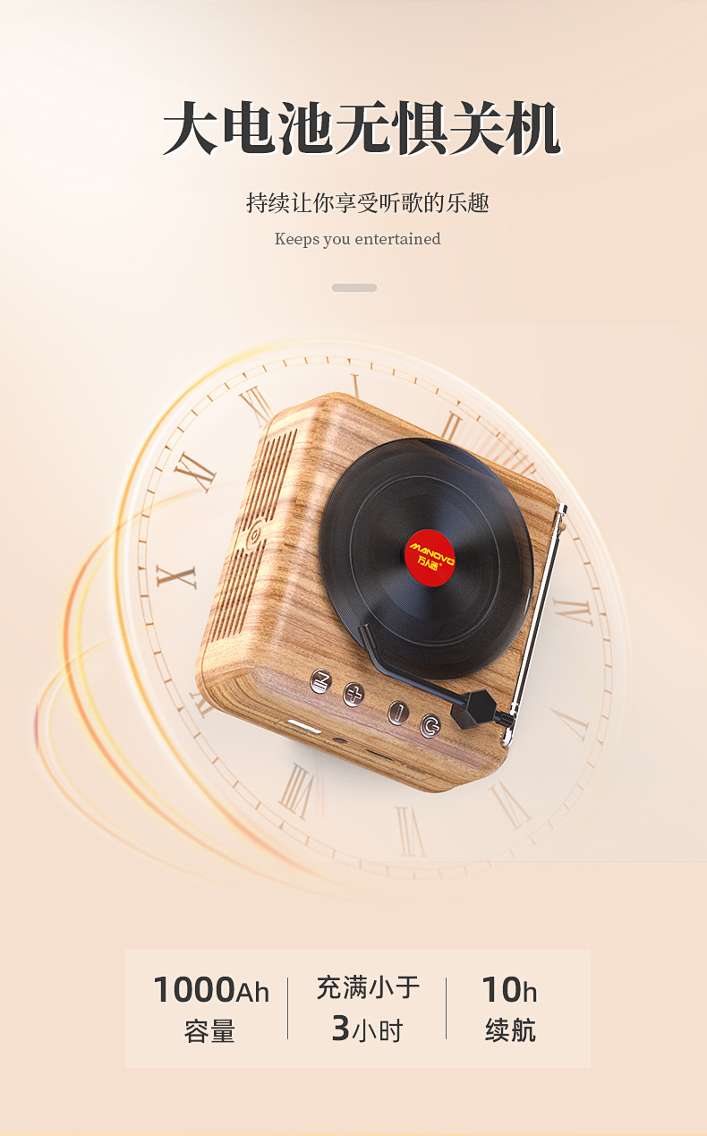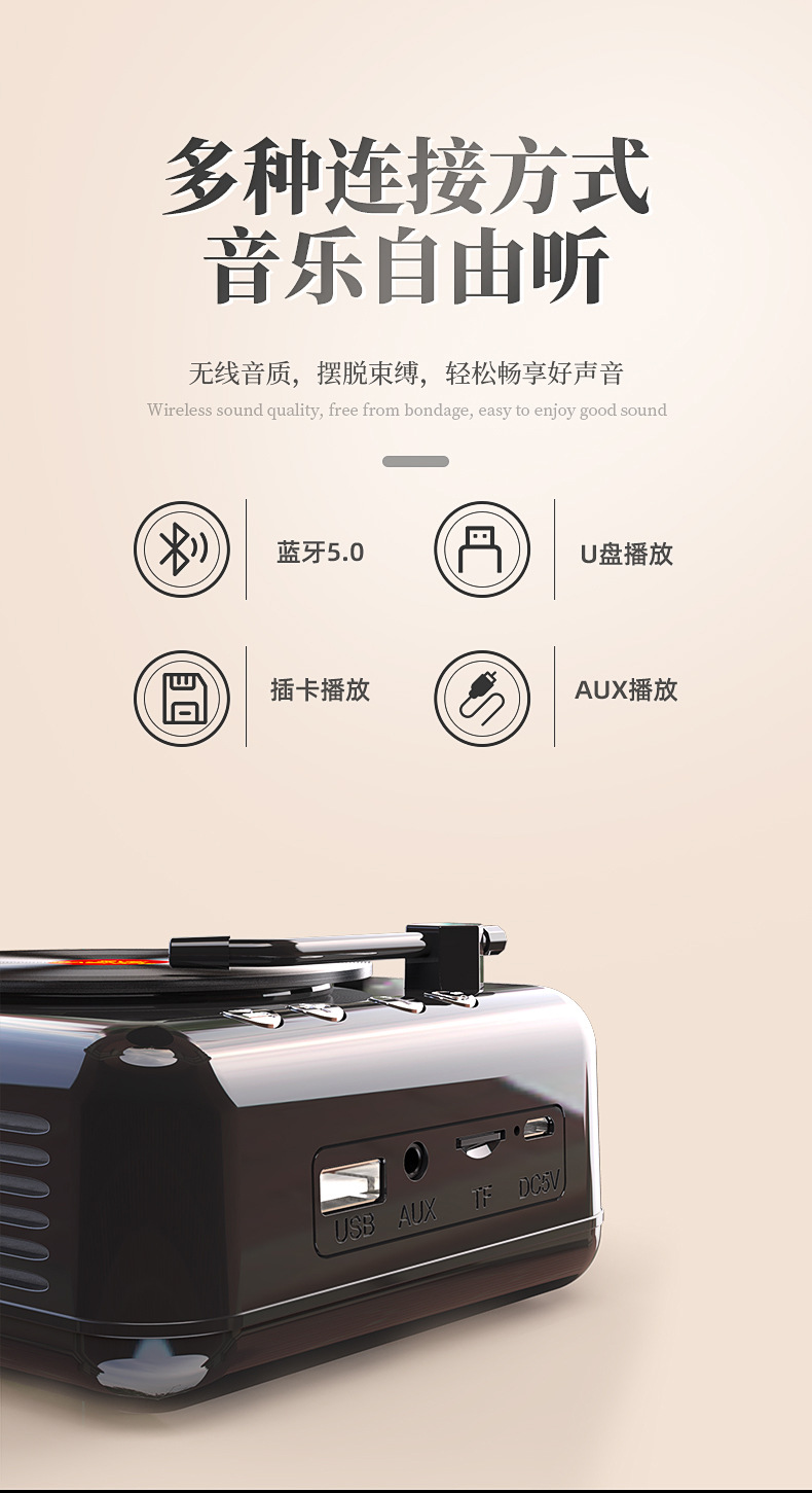情人节【新款H3 复古蓝牙小音箱】电脑迷你 创意礼品 唱片机 收音插卡小音响 送对象 朋友闺蜜礼品盒