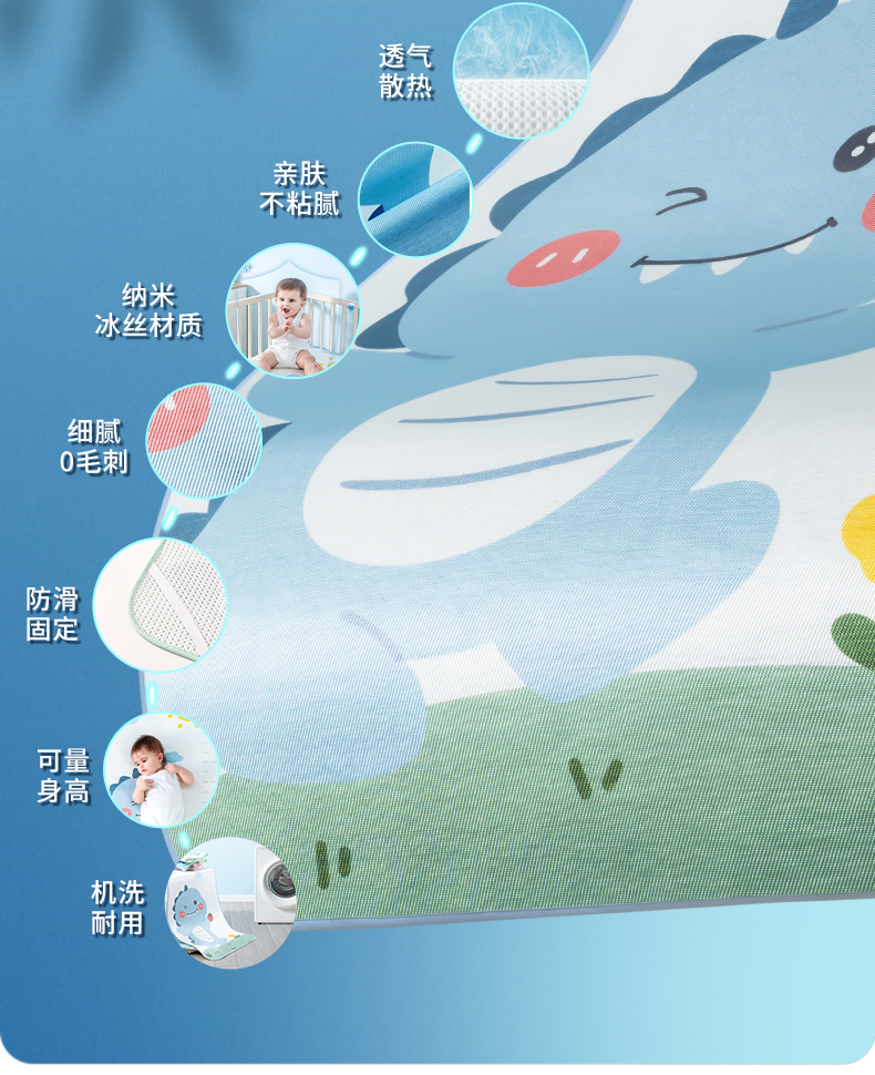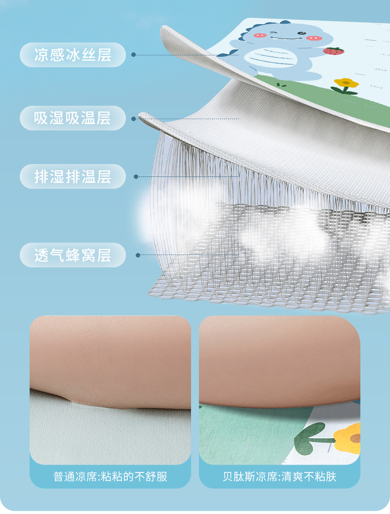 贝肽斯婴儿床凉席夏季冰丝透气吸汗新生儿宝宝儿童幼儿园夏天午睡